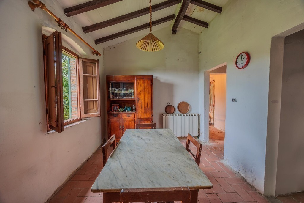 Another undeniable advantage of the house is its privileged location next to the impressive Castello di Albola, which gives the property an added charm and a palpable aura of history and culture. There are a total of 48 olive trees on the approximately 1-hectare plot, which underline the Mediterranean ambience and offer the potential for a small olive oil production. The garden also offers plenty of space for your individual design options. Inside the house, you will find a living space comprising two bedrooms, a bathroom, a cozy kitchen and a living and dining room. Here you can make your dream home a reality and design your new home according to your own ideas. The house also has two cellars on the lower first floor, which offer you additional space for storage purposes or the expansion of further living areas. The house is connected to the public water supply, which guarantees you a high level of living comfort. However, you must be aware that the house needs to be completely renovated. The structure of the building also needs an overhaul - a challenge that is worthwhile considering the potential of this property. The house is located on the border of the beautiful Chianti region. The famous wine-growing region not only offers breathtaking landscapes and culinary highlights, but is also a popular destination for wine lovers and connoisseurs.