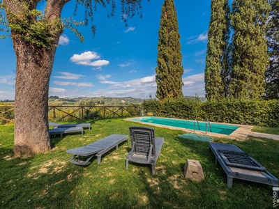 This charming property is part of a beautiful rustico and captivates with its authentic atmosphere and incomparable view over the rolling hills of Tuscany. A private gate leads to the property, which guarantees absolute privacy and has no communal areas – a place where you can enjoy the tranquility of nature undisturbed.