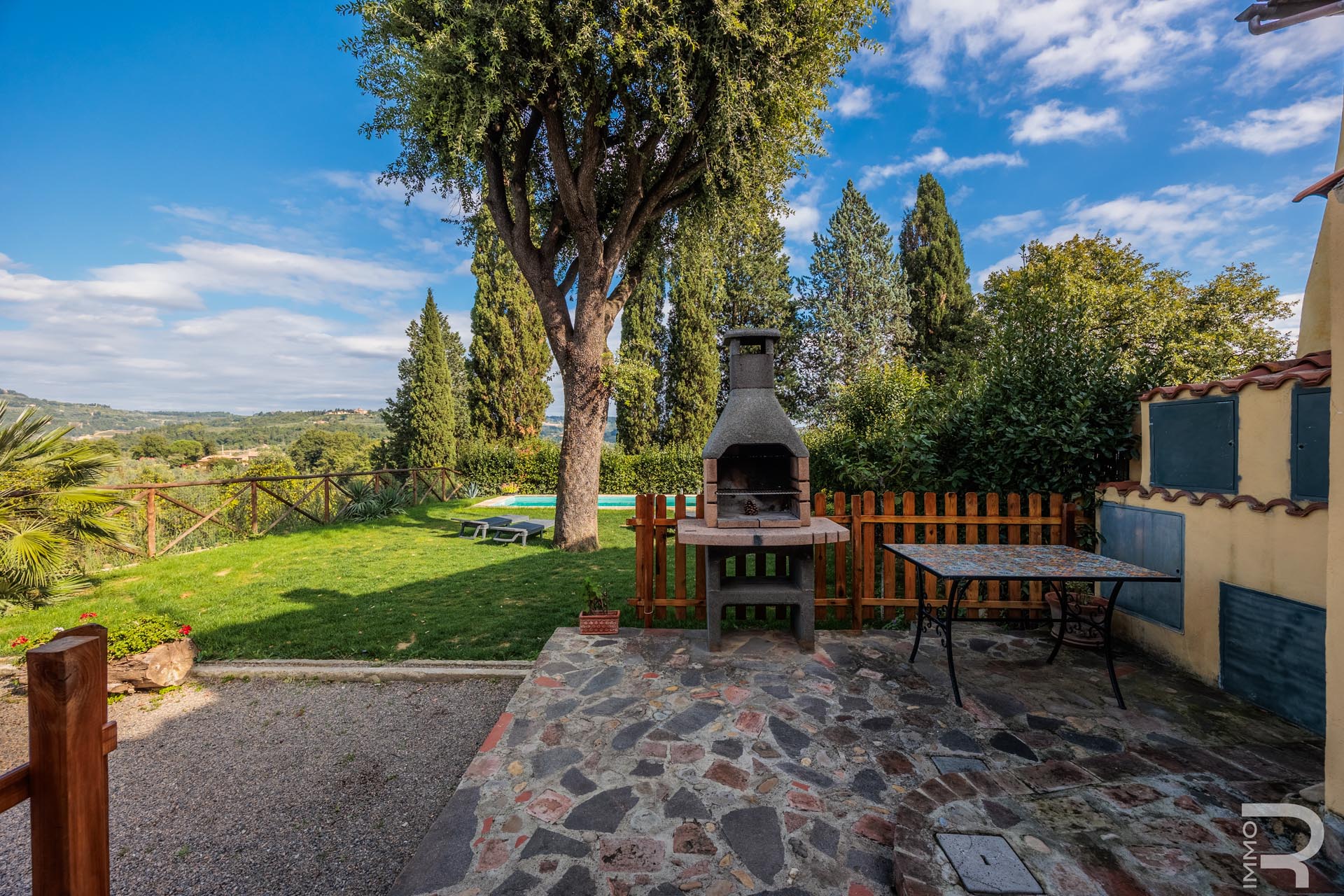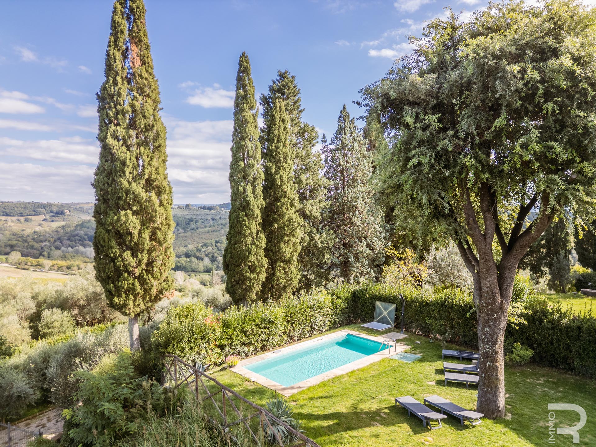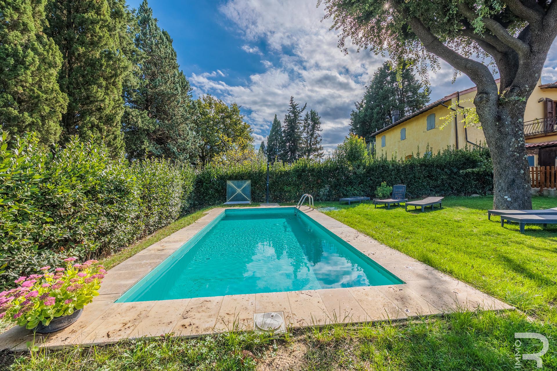 The beautifully landscaped garden of around 500 m² with its large terrace and covered veranda invites you to enjoy the Tuscan sun or spend balmy summer evenings outdoors. The highlight is undoubtedly the private travertine stone pool (9 x 3 m, 1.3 m deep), which blends harmoniously into the landscape and offers breathtaking views.