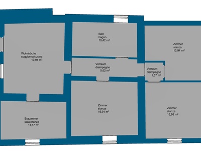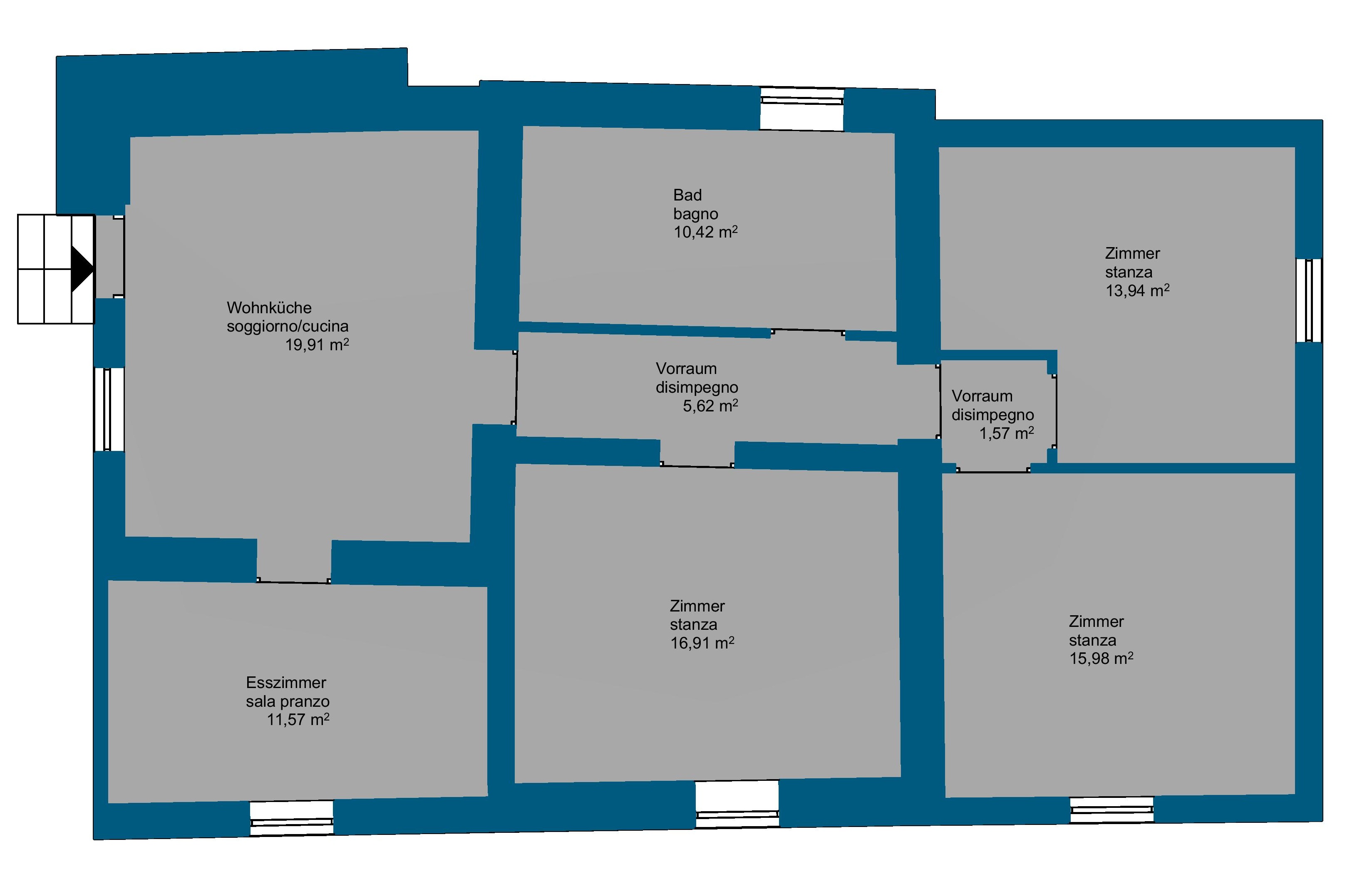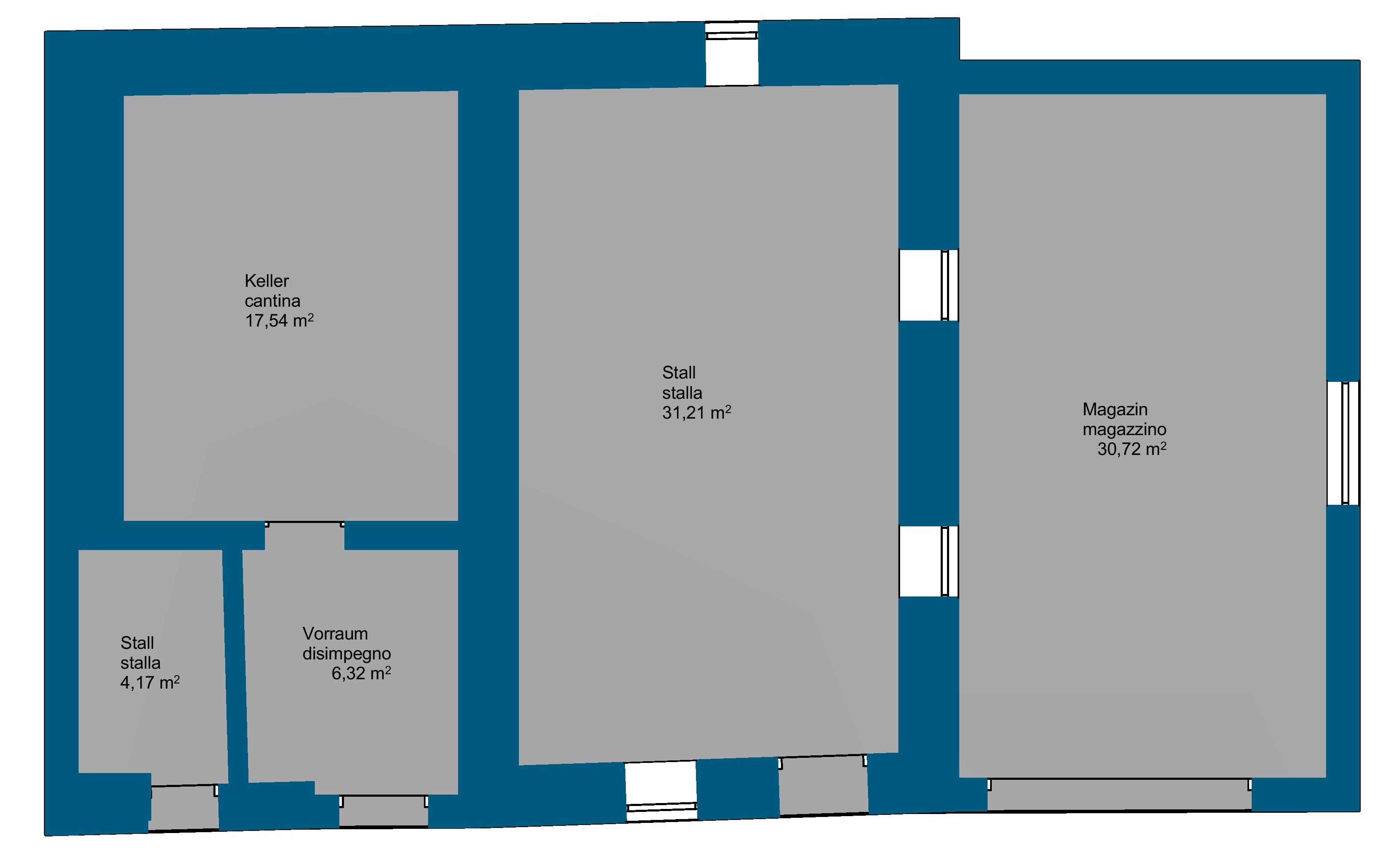 The property consists of two separate residential units. The apartment on the first floor was renovated in 1970 and offers immediately usable living space with a rustic flair. The apartment on the upper floor is still unfinished - an exciting project for anyone who wants to realize their own personal living concept in a historic setting. A total of five bedrooms and one bathroom are currently available. The exterior of the building itself is in very good condition. The façade is well maintained and the roof was completely renewed in 1980. Some of the interior is in need of renovation, but this is precisely where the special opportunity lies to carefully and individually develop a house with history and character. Another highlight are the numerous outbuildings, which offer plenty of additional space - for example for guest rooms, a studio, workshop or as an extension to the living space.