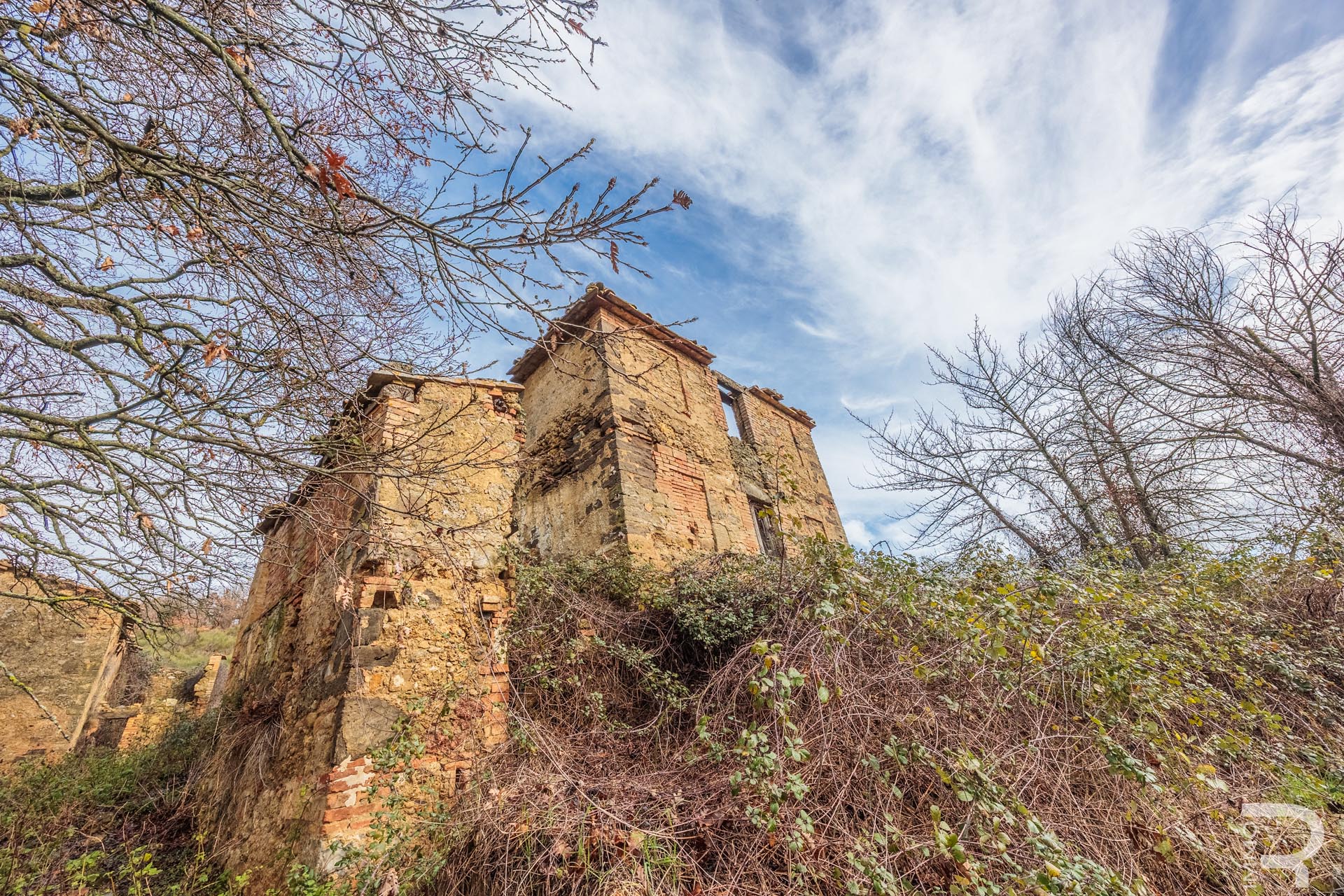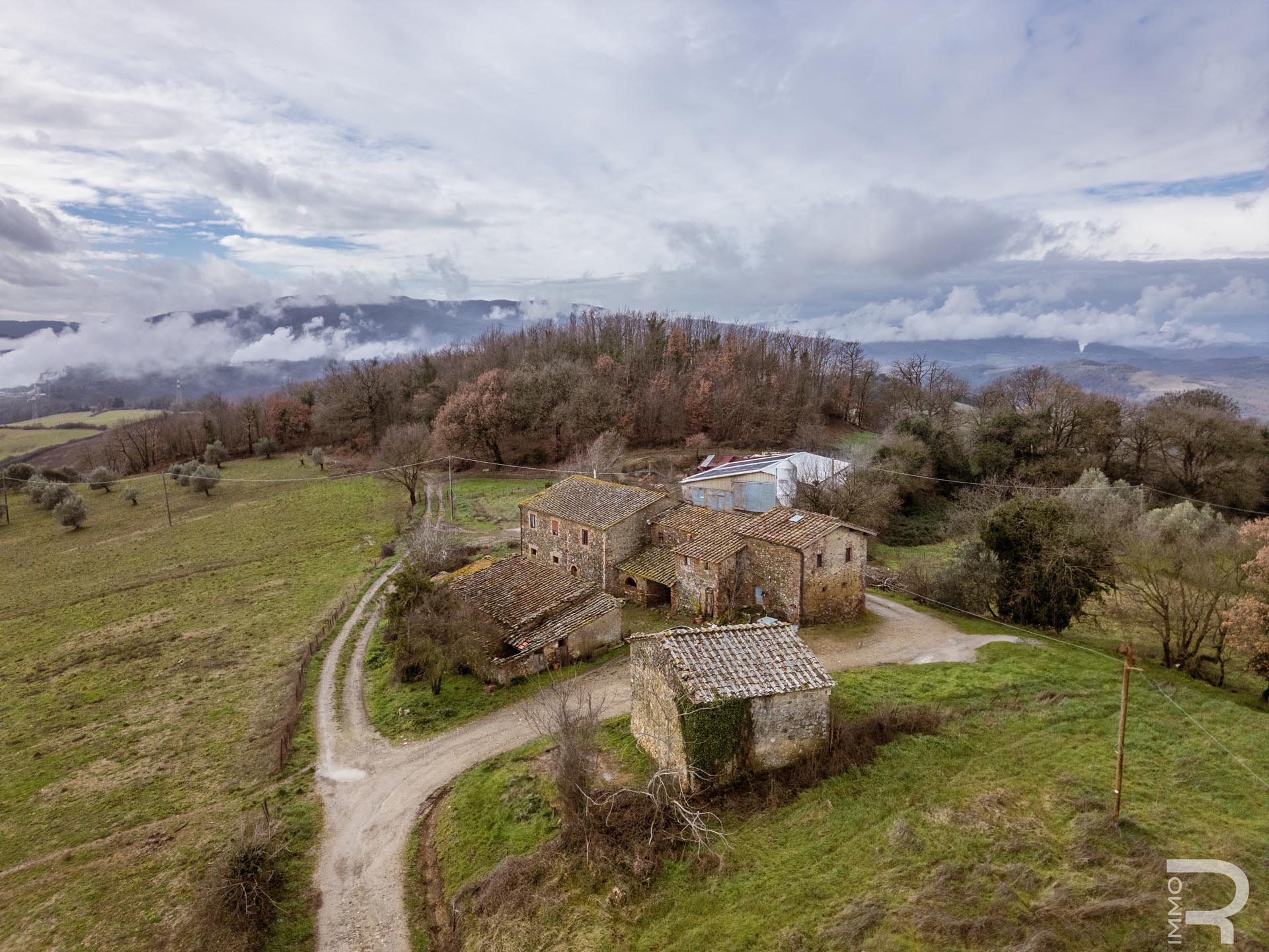 R07013RARU - An exceptionally large rustico property is for sale, consisting of two former farmhouses and several agricultural outbuildings with a total area of around 1,500 m². The property covers approximately 70 hectares of contiguous land and offers a wide range of possibilities for agricultural use, tourism projects, or a large private residence.