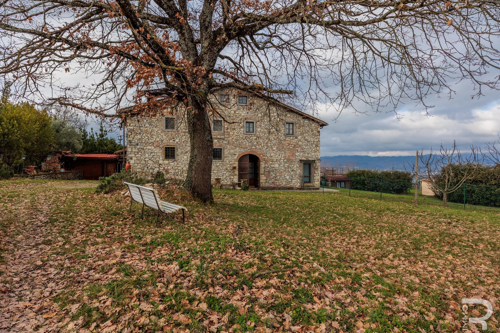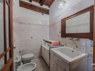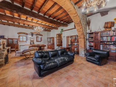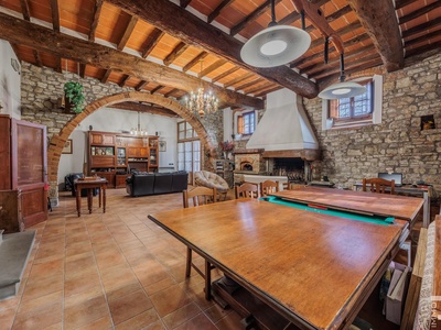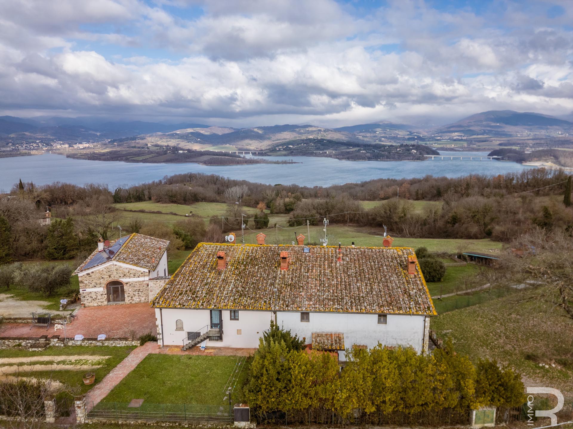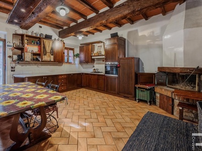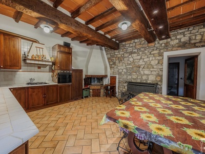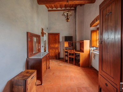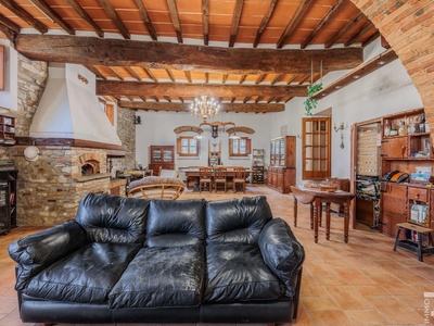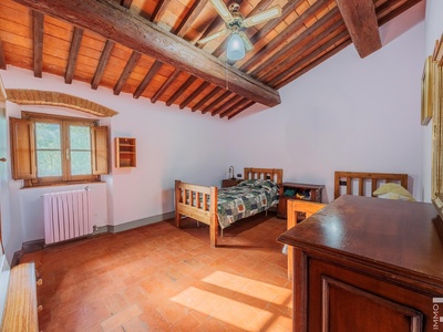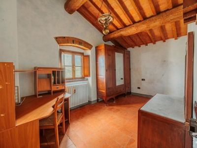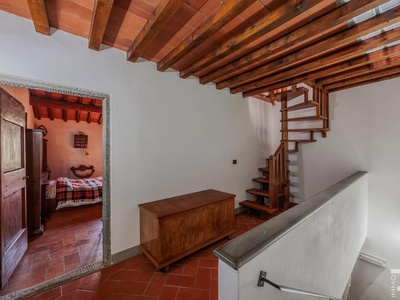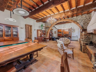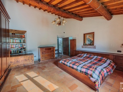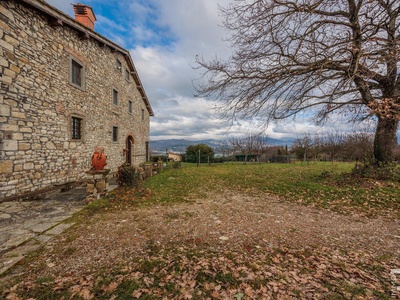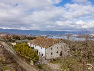 R06996SCDH - This special property is part of a historic farmhouse dating back to 1600 and is located in a unique panoramic position with spectacular views of Lake Bilancino. The building is detached on two sides and surrounded by a spacious private garden of approximately 2,500 m². The property is complemented by a total of around 2 hectares of farmland, which belongs to the property and offers a wide range of possible uses.