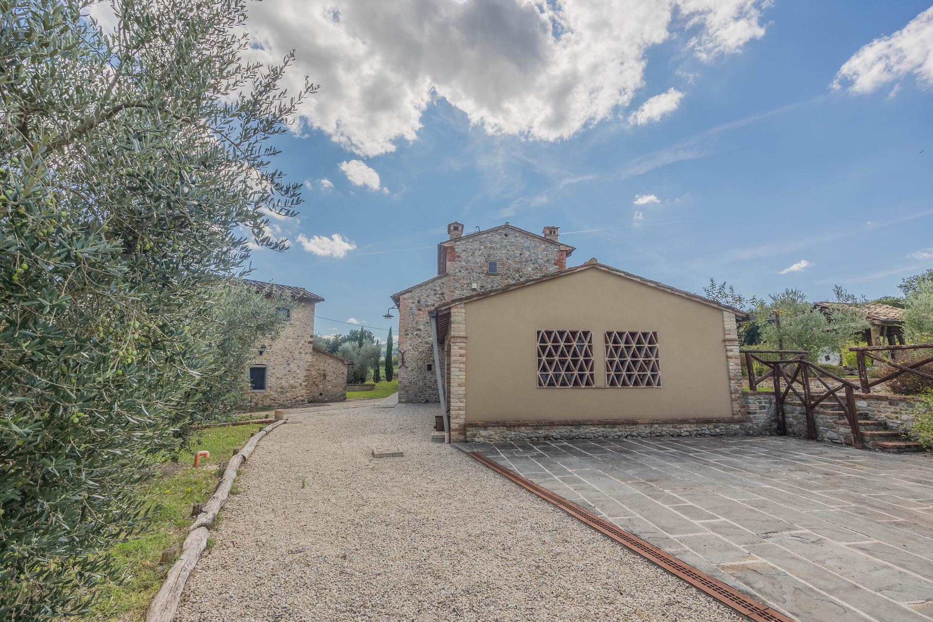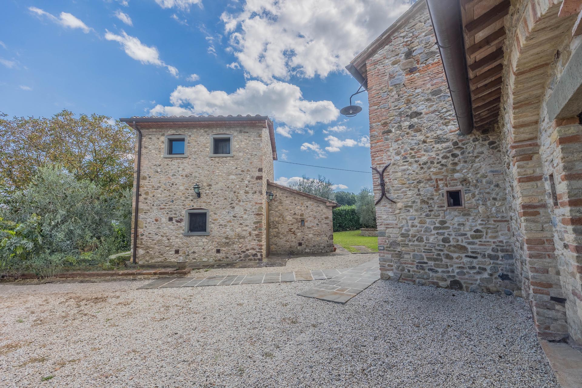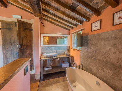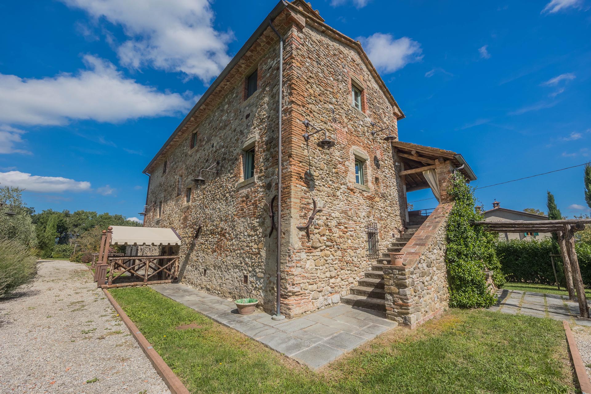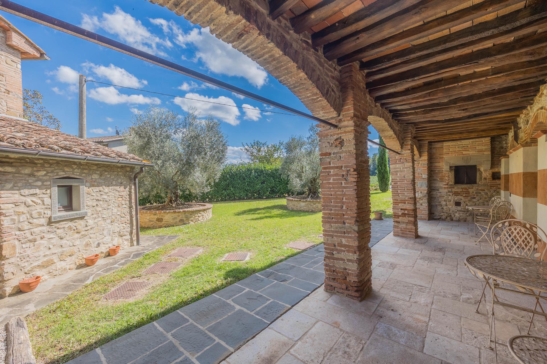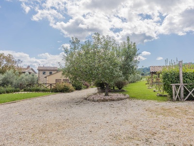 This exceptionally renovated casale is located in one of the most sought-after locations around Anghiari: just a few minutes from the historic town center, yet completely quiet and secluded. As soon as you drive up, you can feel the special atmosphere of the property, which is surrounded by flat land, olive trees, and grapevines, immediately conveying a sense of arrival and relaxation.