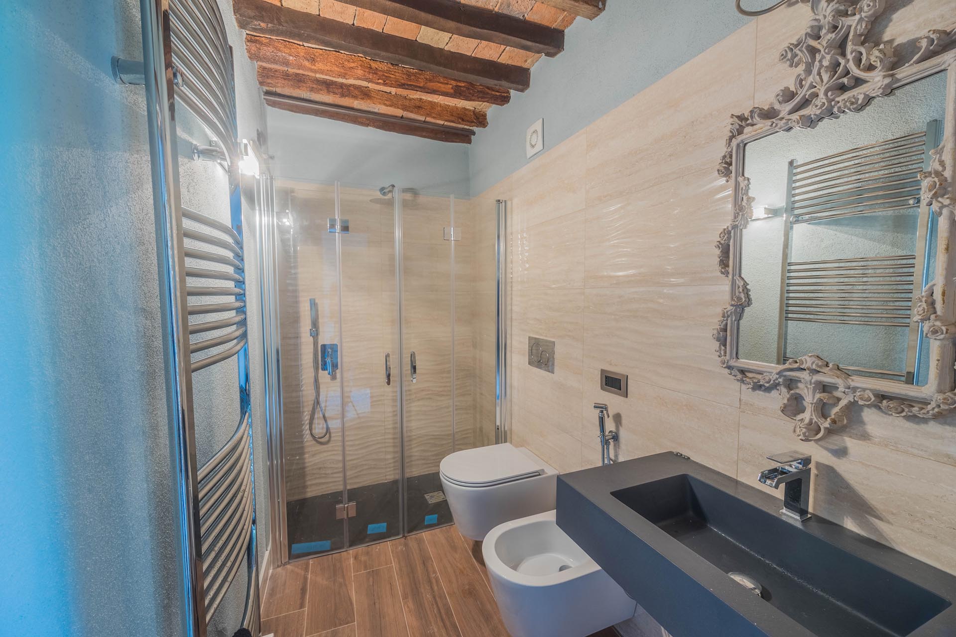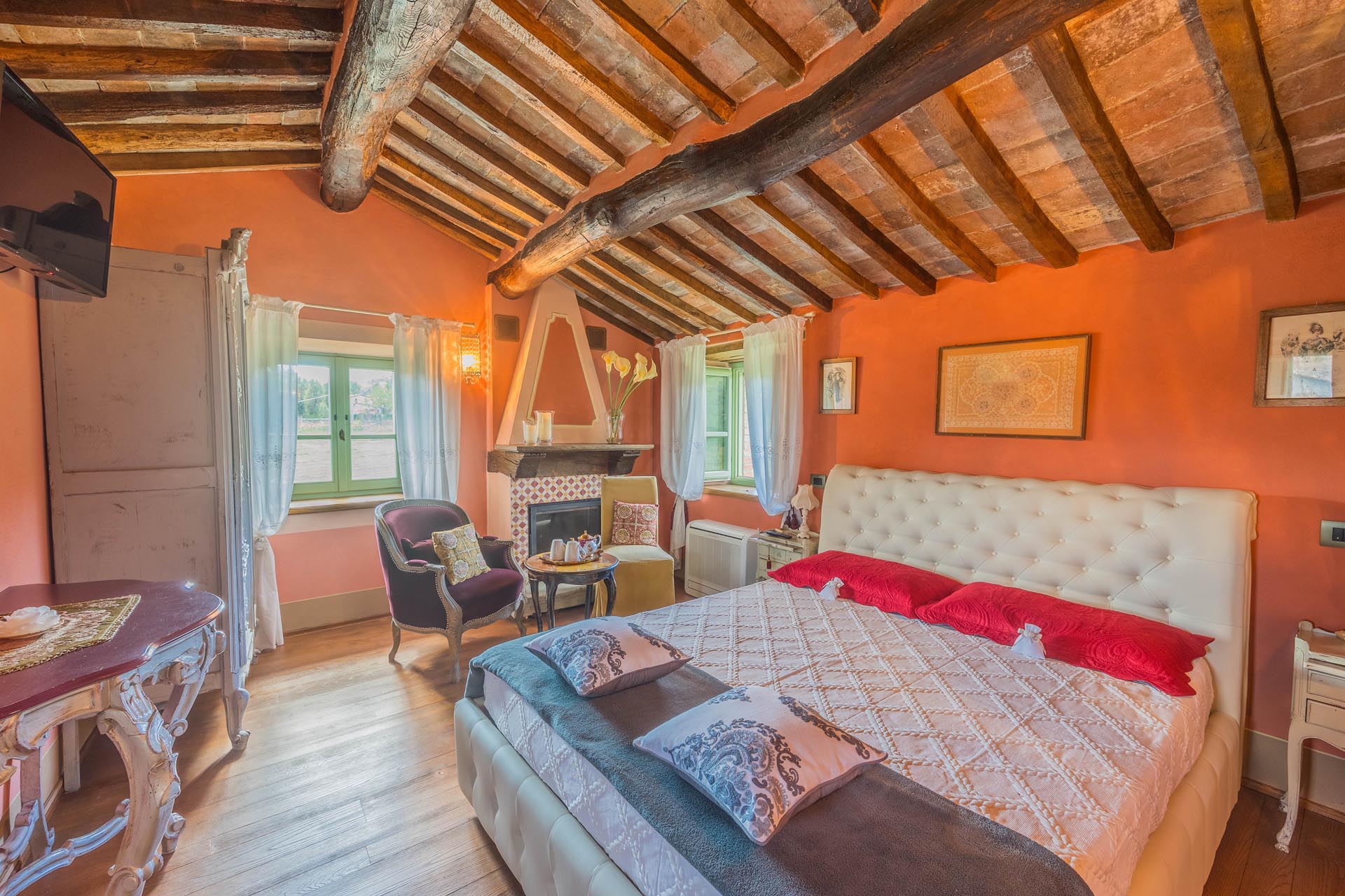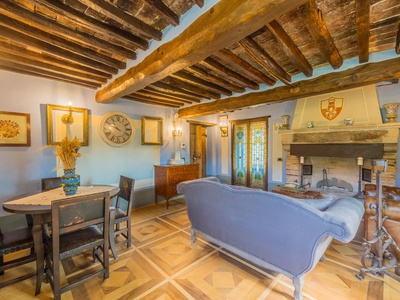 Several parking spaces and covered parking facilities provide additional convenience. Thanks to its structure, the property is ideal both as a spacious private residence with an annex and for tourist use with rental to guests. The combination of location, style, amenities, and potential makes this property a rare opportunity in Tuscany.