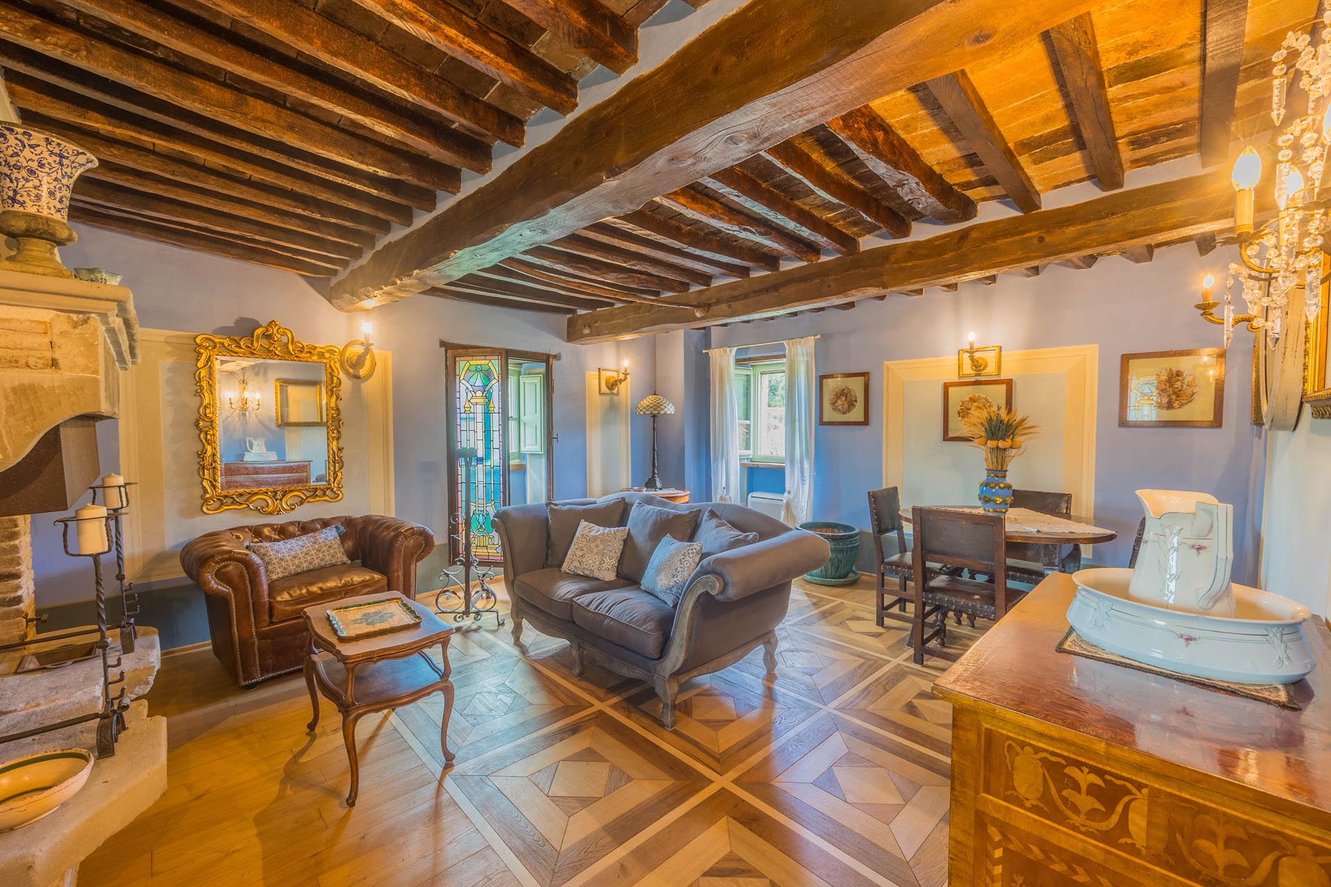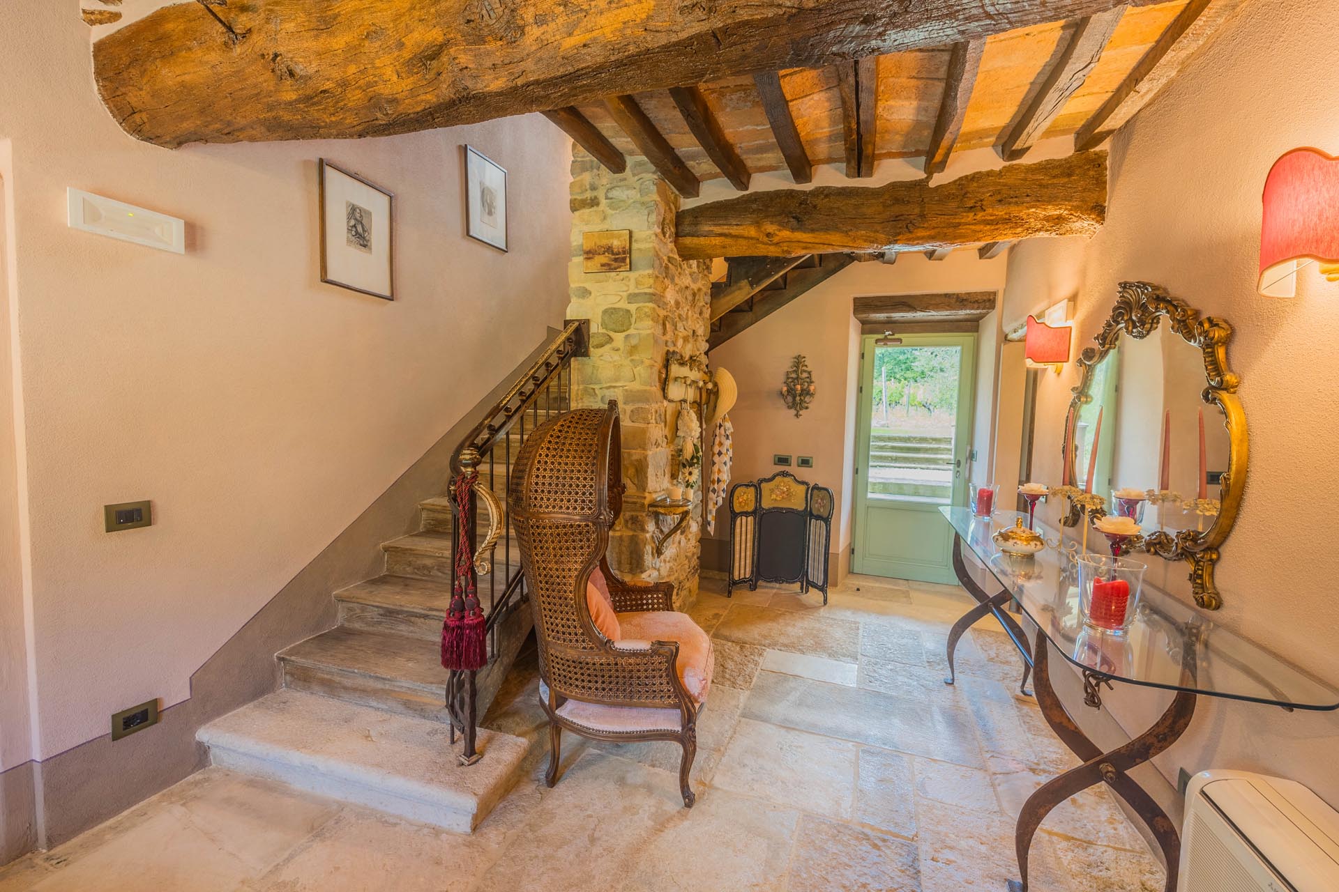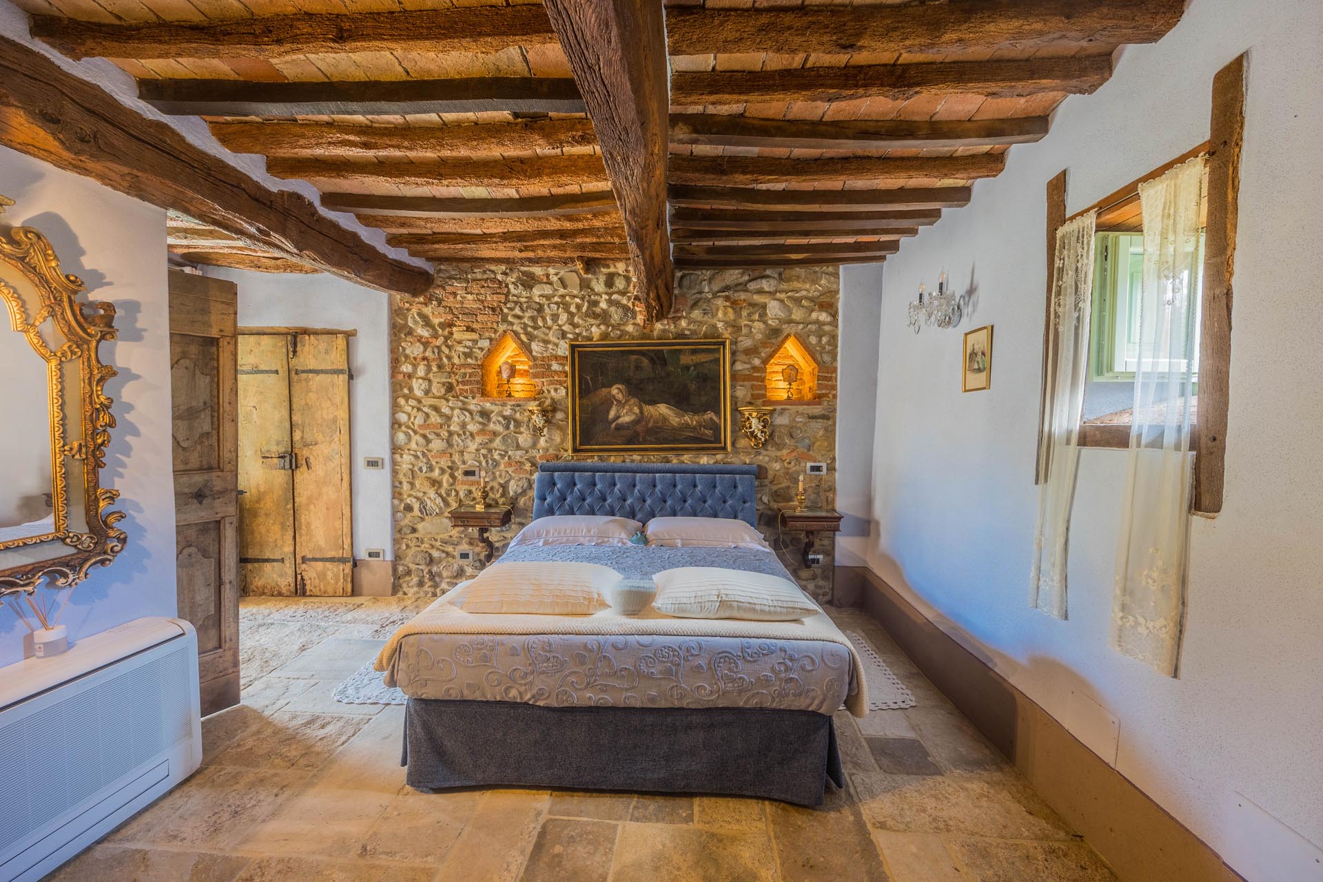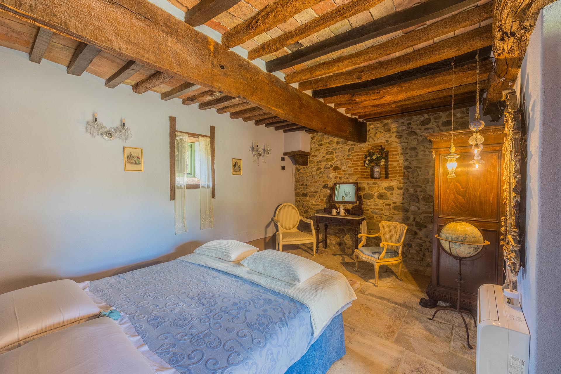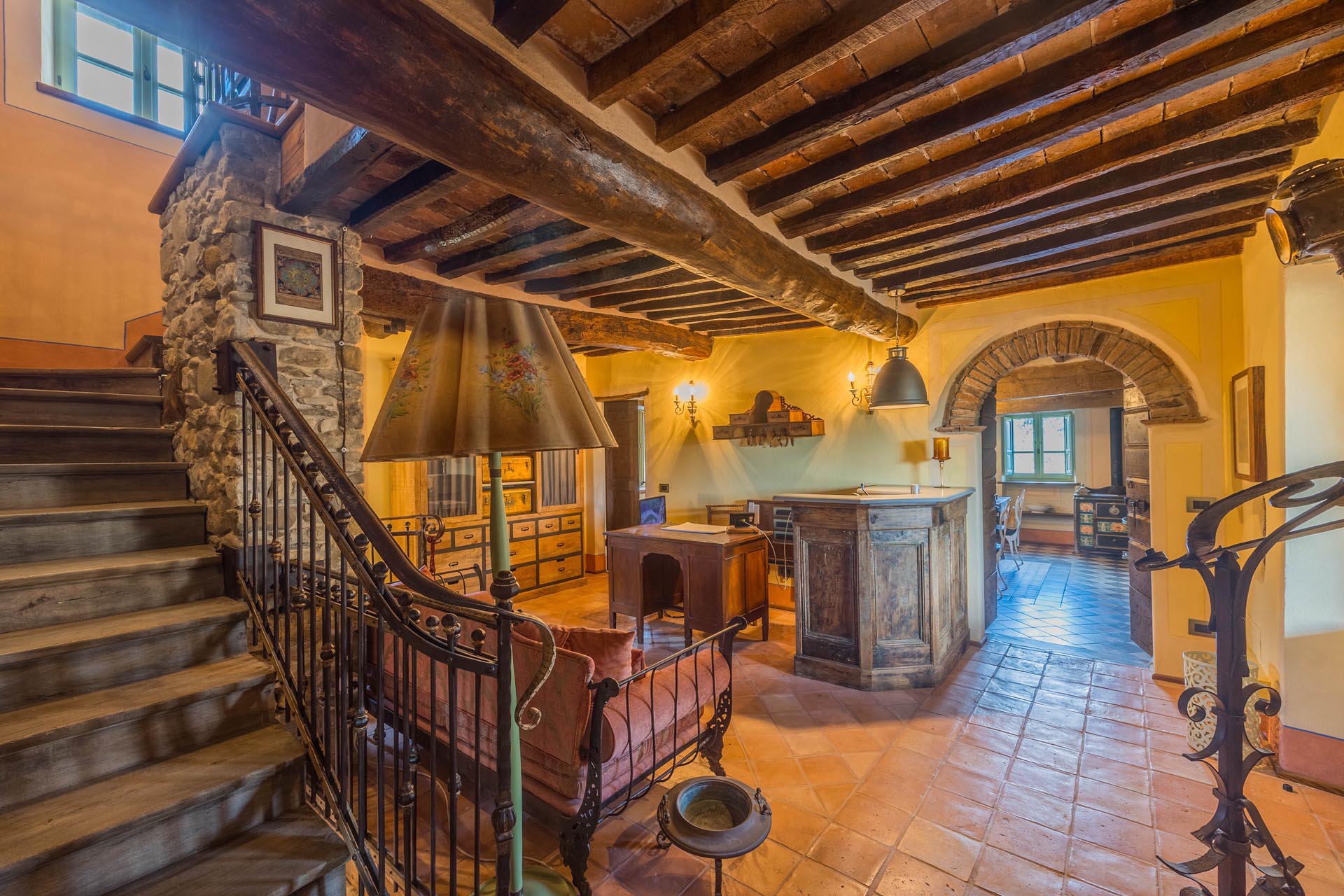 The entire property has been renovated to a high standard with the utmost care and attention to detail. Only first-class materials were used in the restoration, and every architectural element has been renewed with respect for the original character. The result is a perfect combination of rustic style and modern living quality. The furnishings—which are included in the sale—consist of high-quality furniture solutions and many valuable antique pieces that lend the property elegance and authenticity.