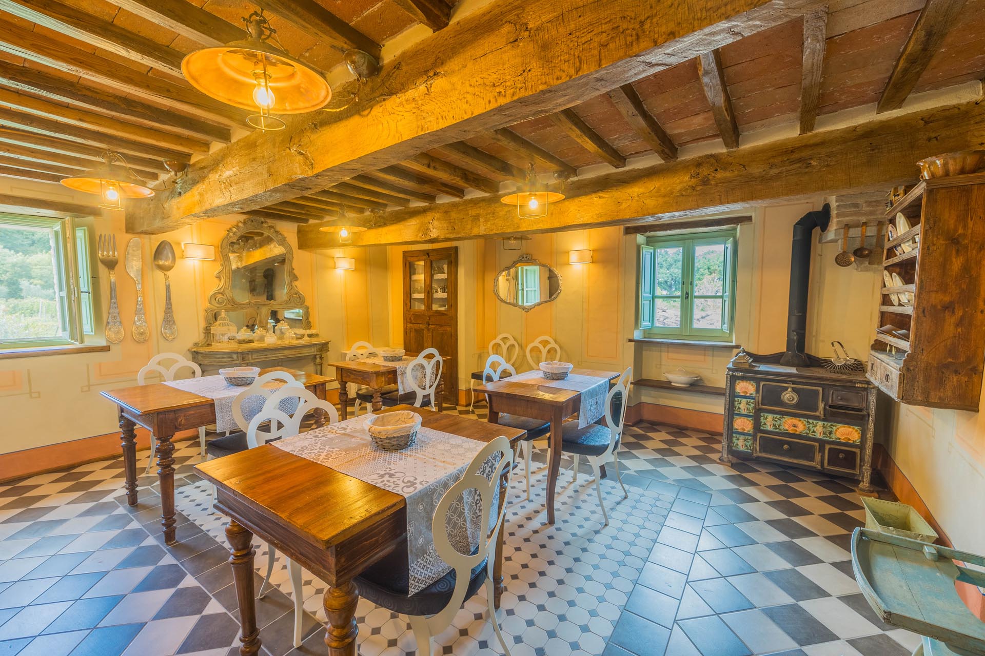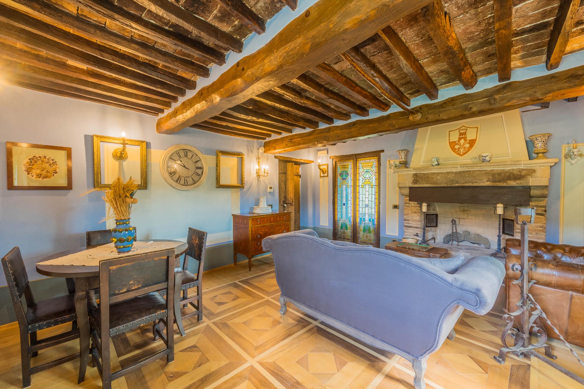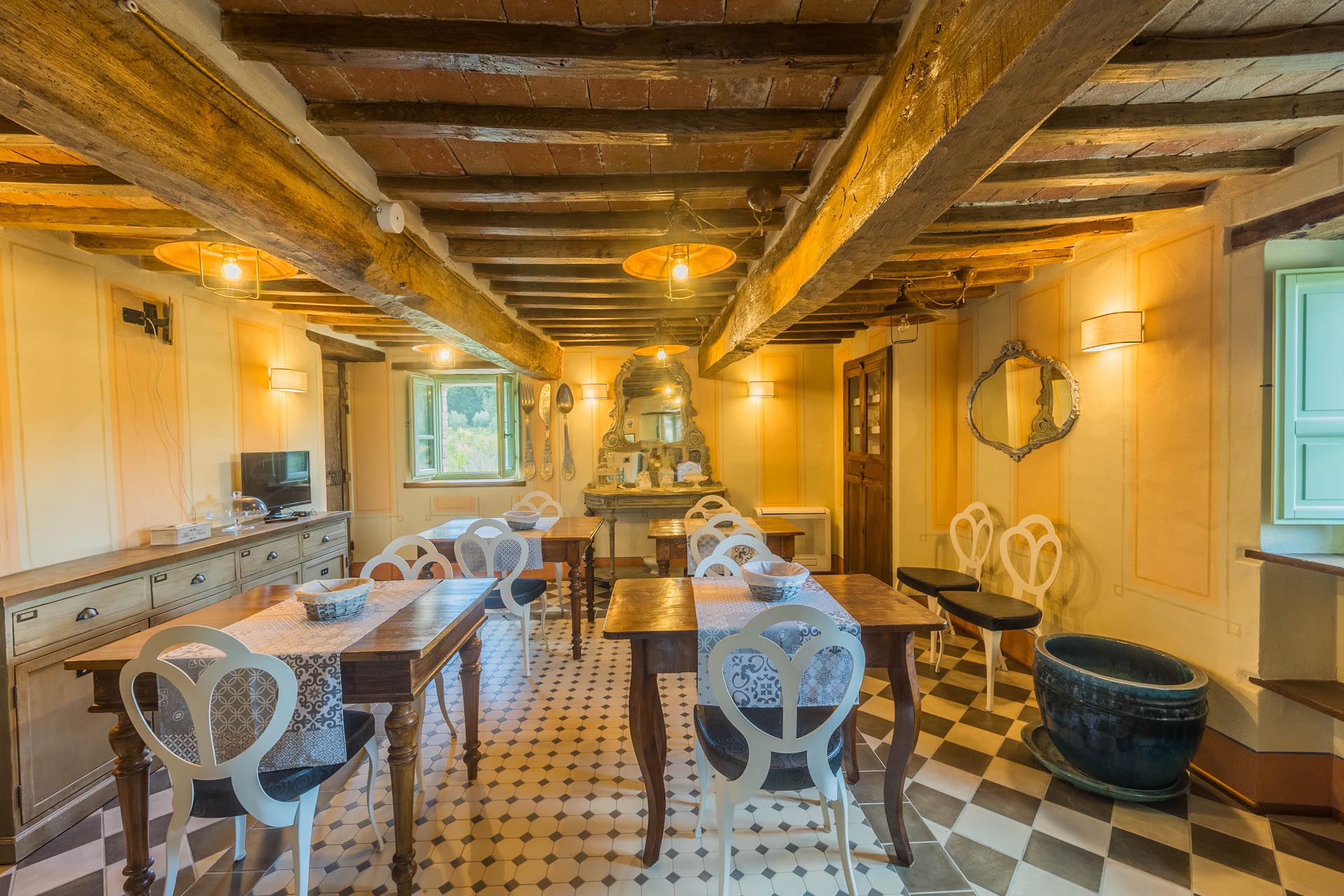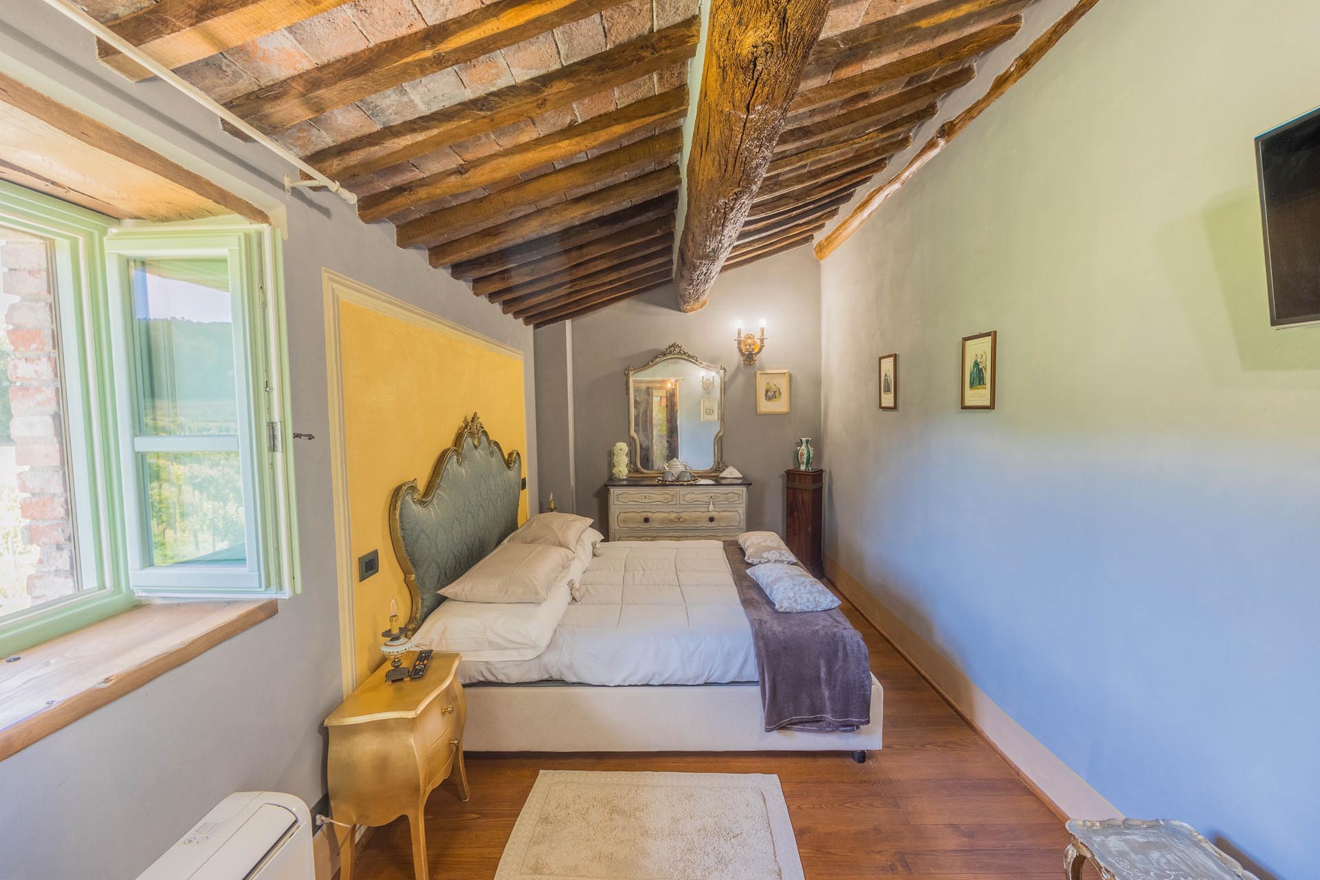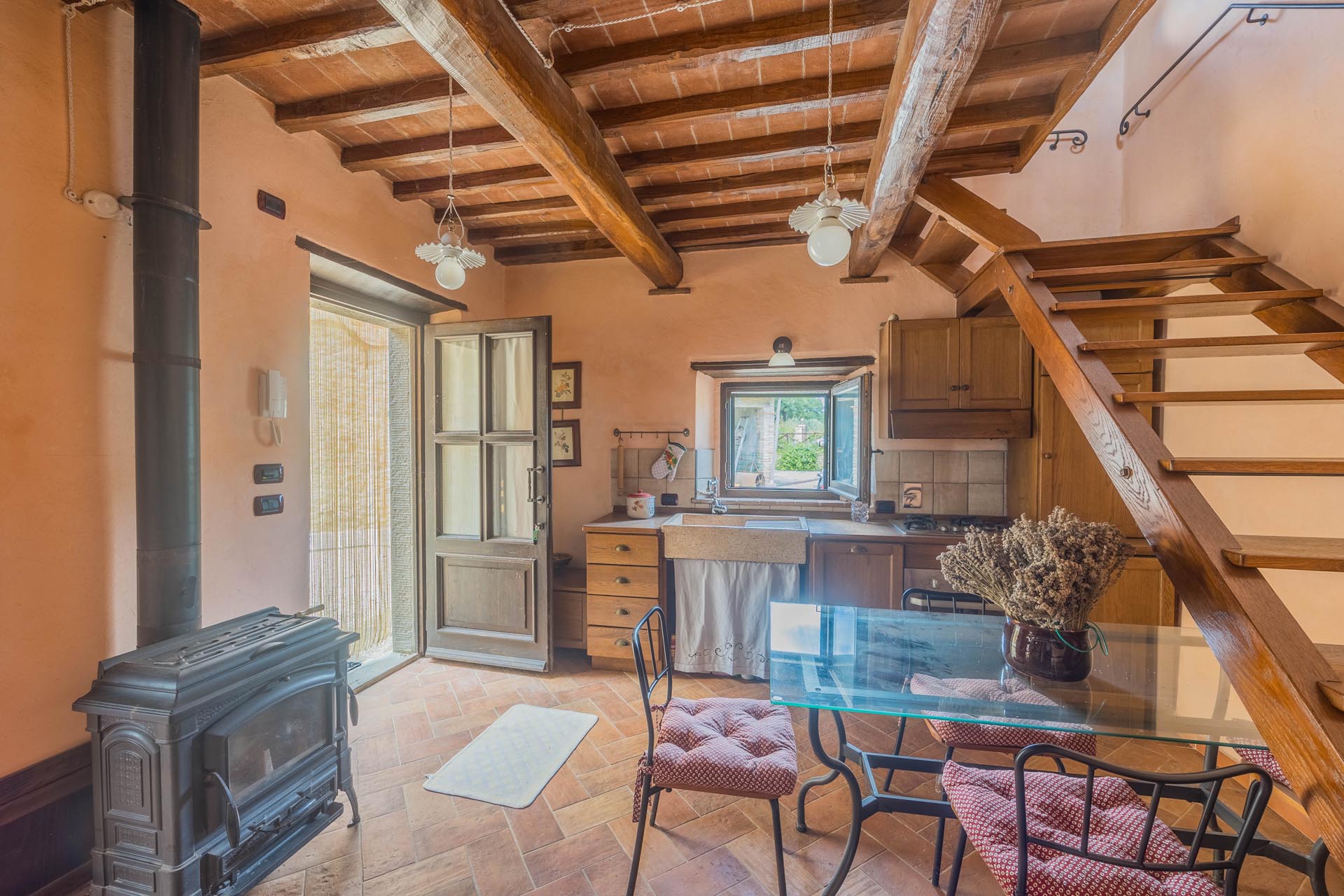 The entire property has been renovated to a high standard with the utmost care and attention to detail. Only first-class materials were used in the restoration, and every architectural element has been renewed with respect for the original character. The result is a perfect combination of rustic style and modern living quality. The furnishings—which are included in the sale—consist of high-quality furniture solutions and many valuable antique pieces that lend the property elegance and authenticity.