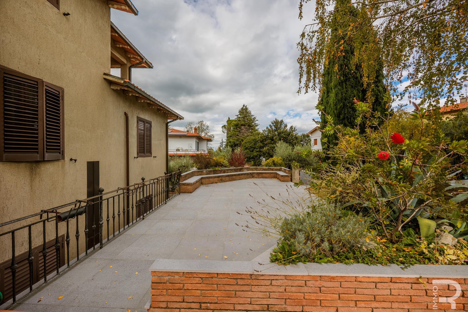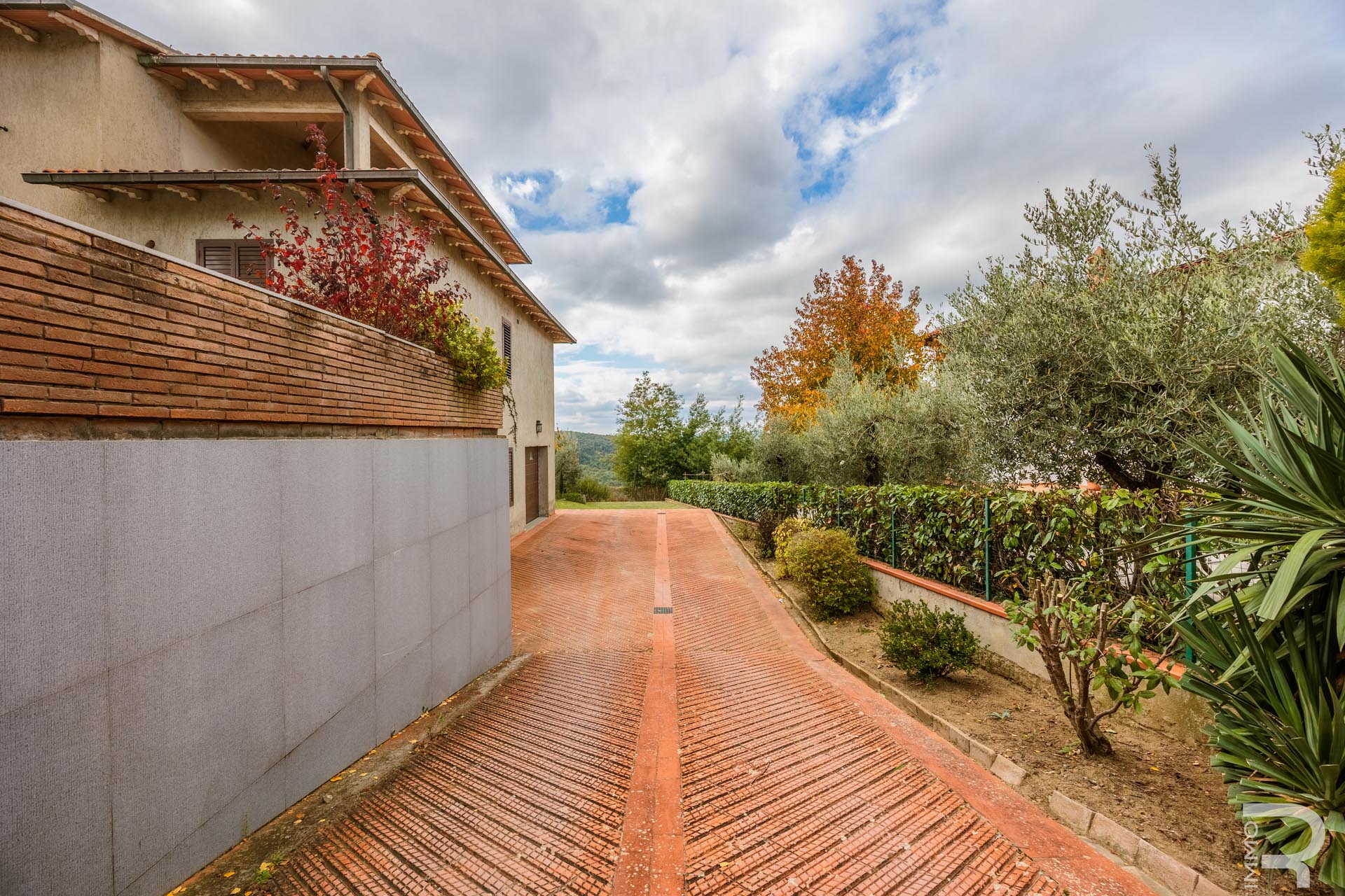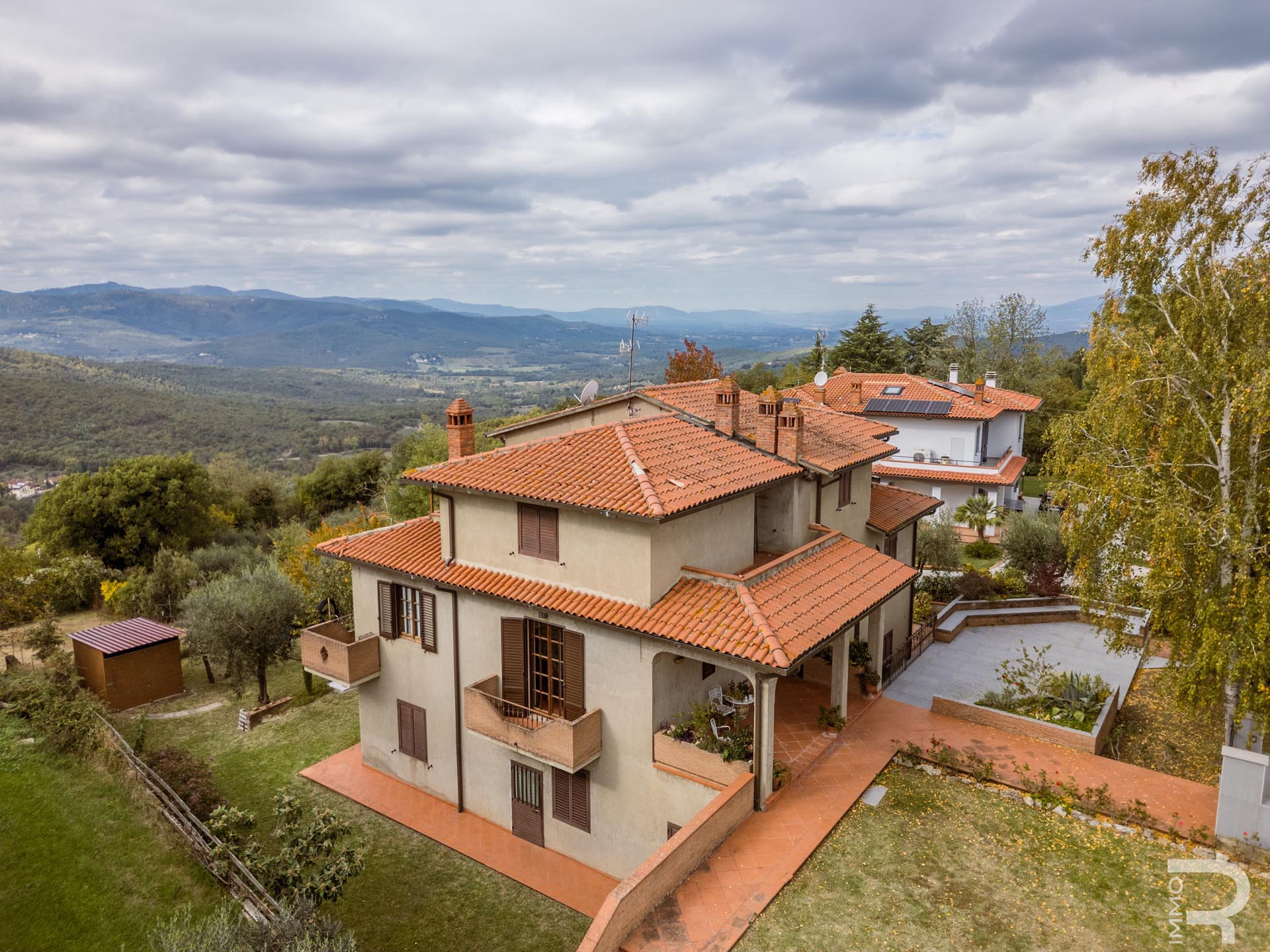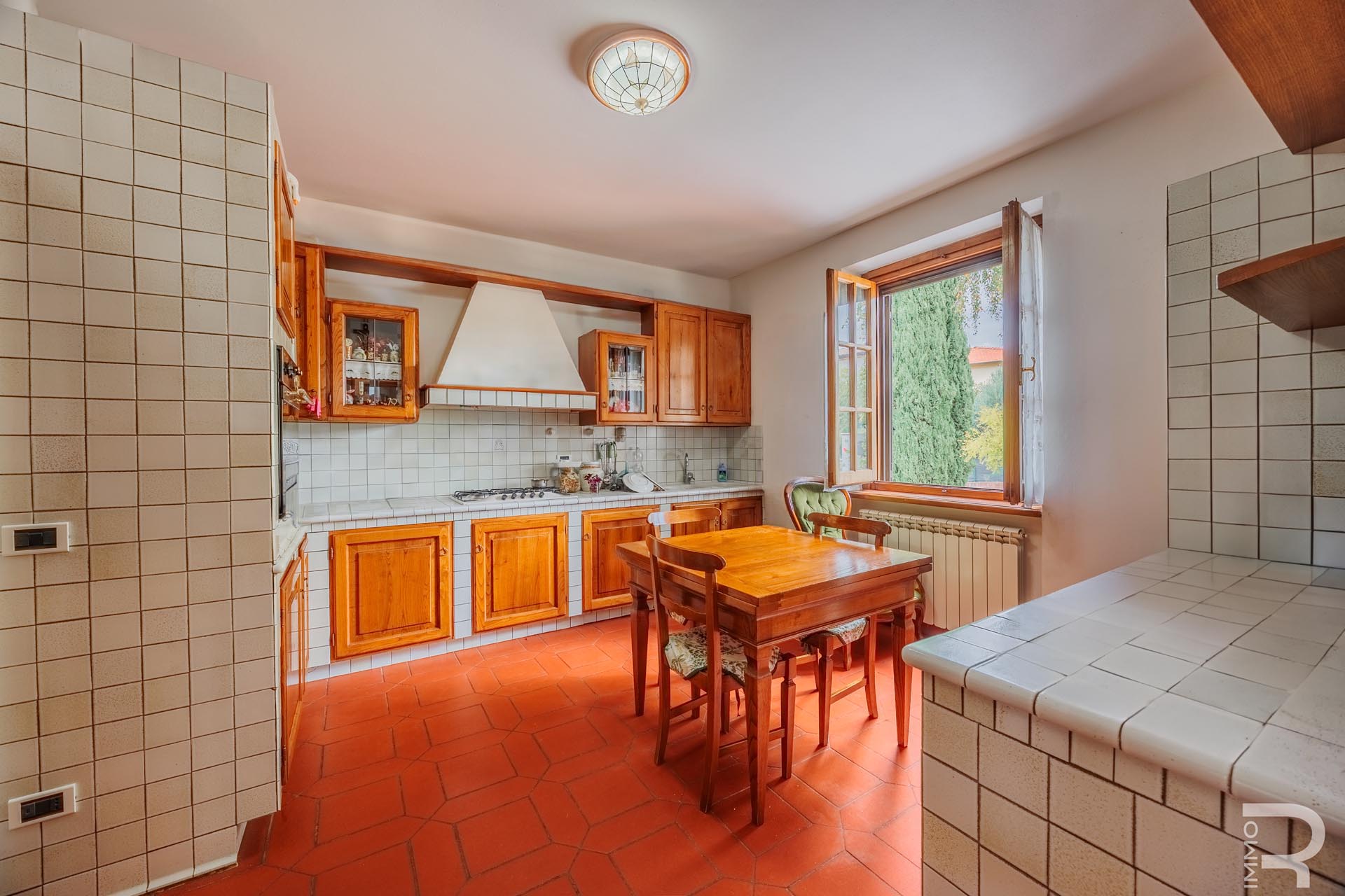 This charming villa is located in a quiet and well-kept residential area with stunning views of the surrounding hills. The house was built in the 1990s and features high-quality, timeless materials such as terracotta, parquet flooring, and sandstone, which lend the property character and warmth.