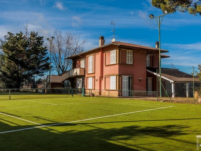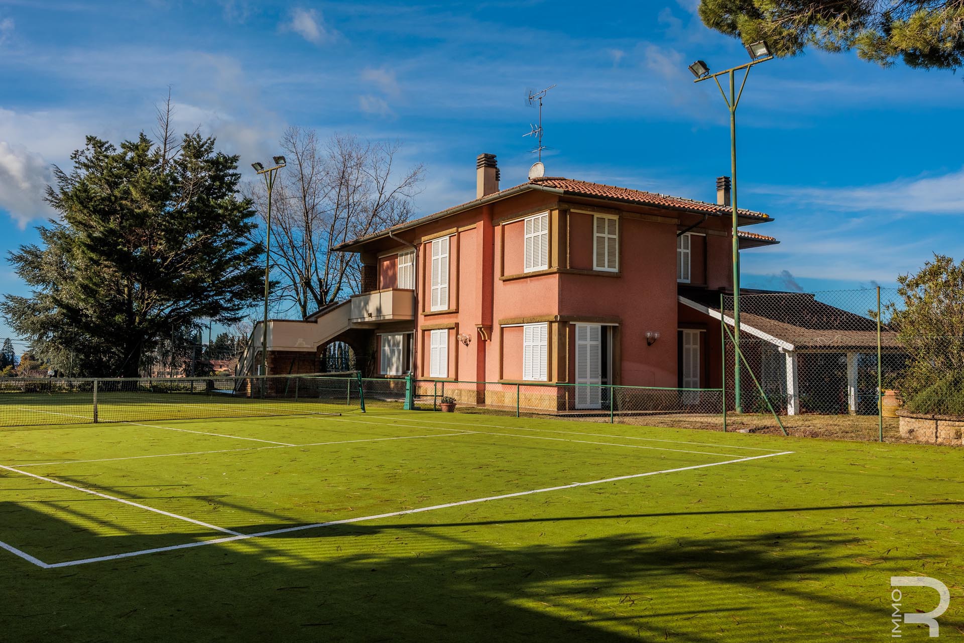 Nestled on approximately 4,000 m² of land, the villa offers extensive outdoor areas that invite both relaxation and active leisure activities. A spacious swimming pool provides refreshment on warm days, while the private tennis court offers sporting variety in an exclusive setting. The well-tended garden creates a green oasis with plenty of privacy and impressive views of the surrounding countryside.