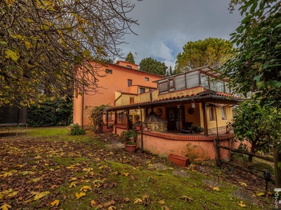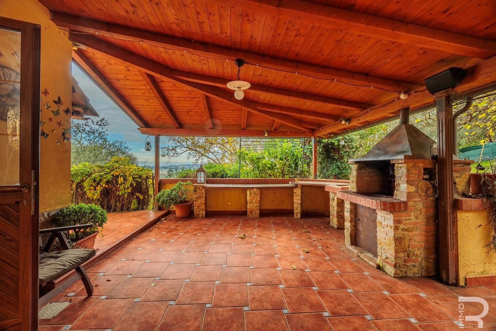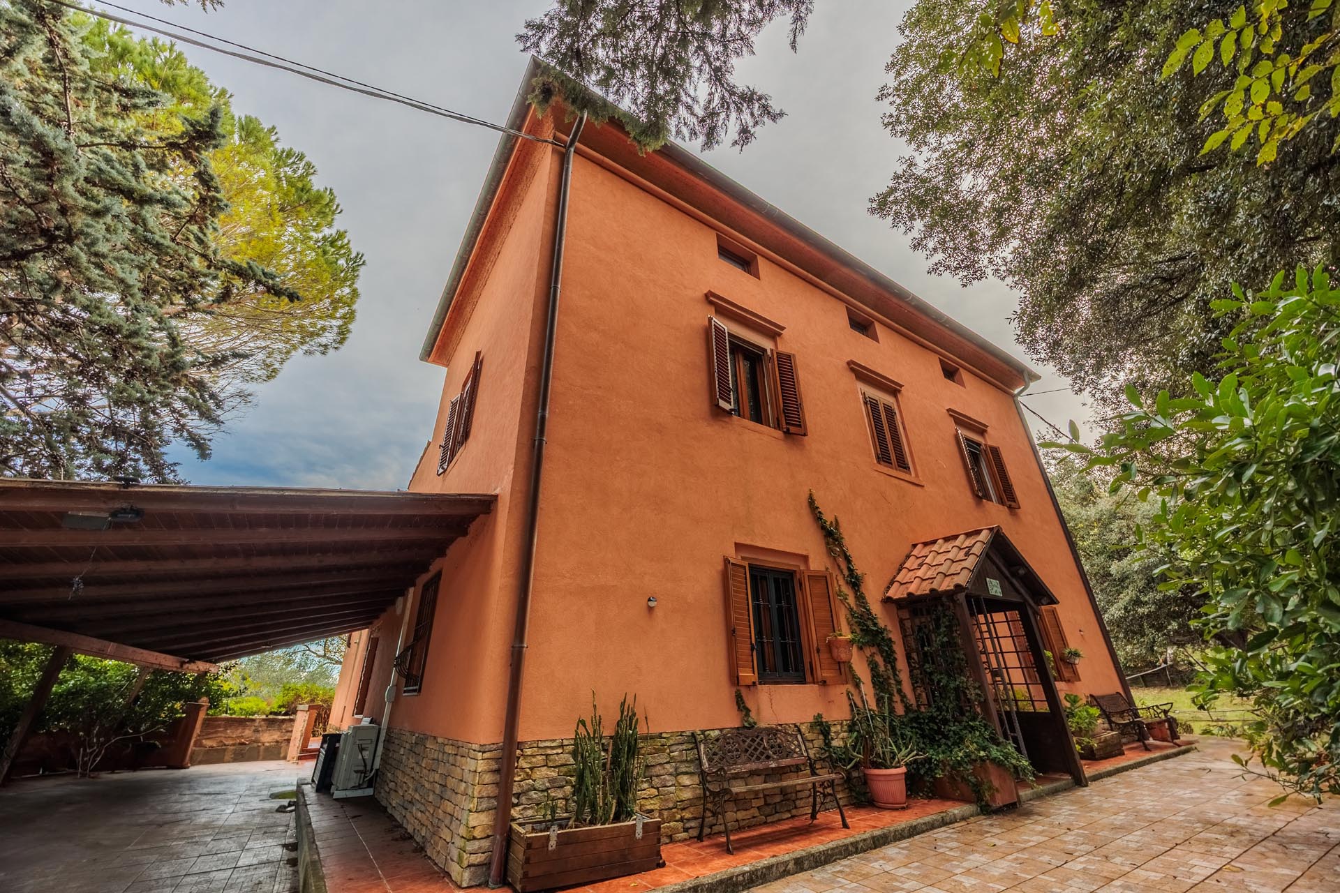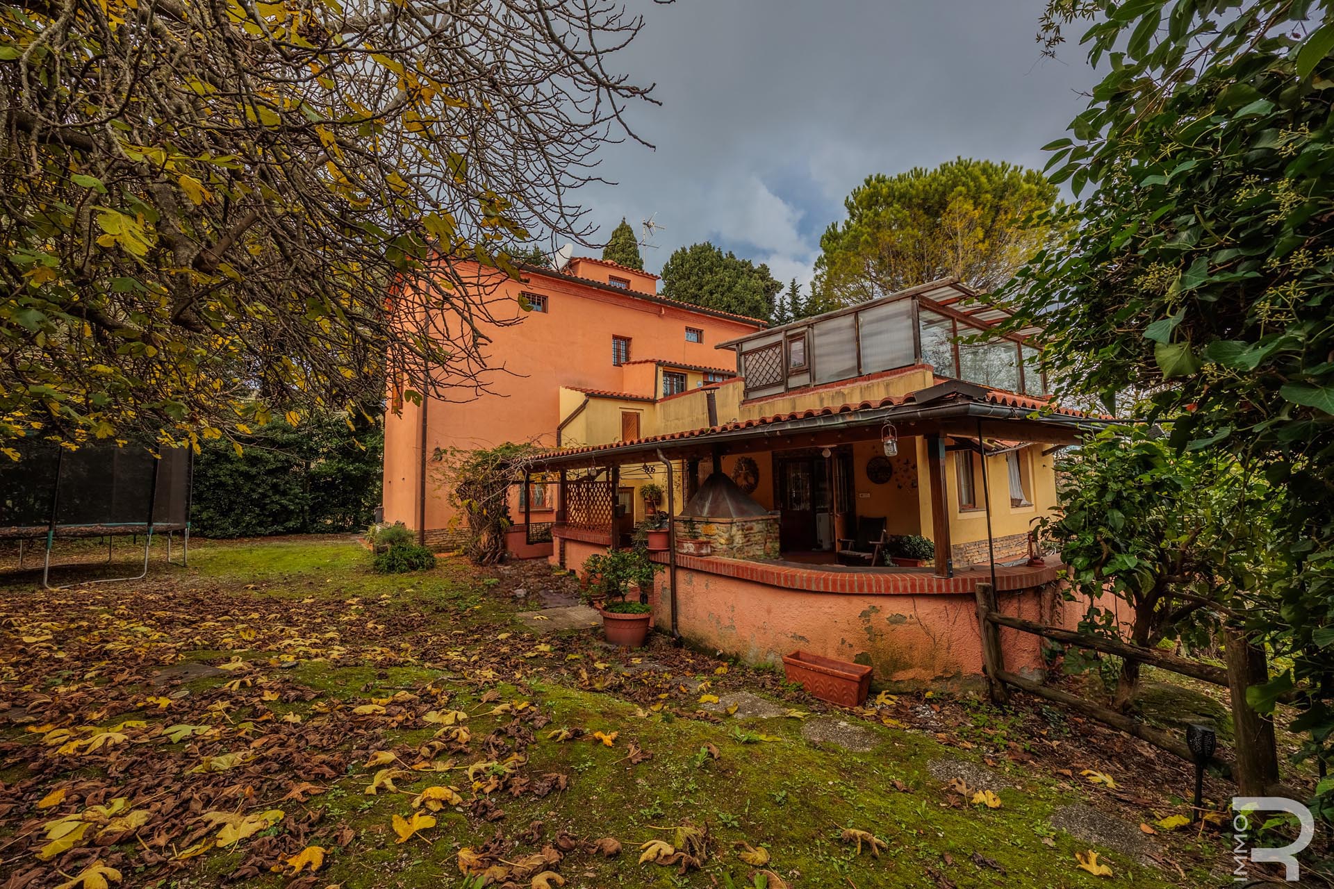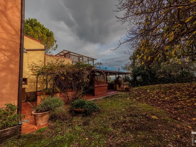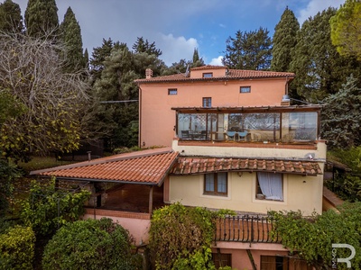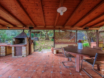 Various terraces and covered verandas surround the house, offering the perfect outdoor space at any time of day. A brick barbecue invites you to enjoy relaxed meals outdoors, while the landscaped garden with its mature plants and Mediterranean scents creates a unique atmosphere. The view stretches far across the picturesque hills of Livorno, giving the property a panorama that inspires every day anew.