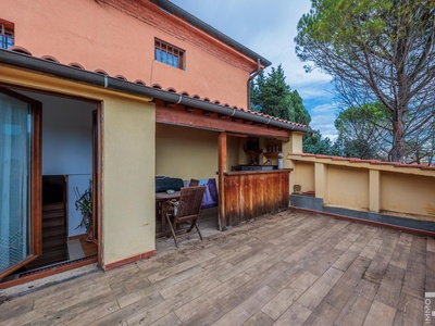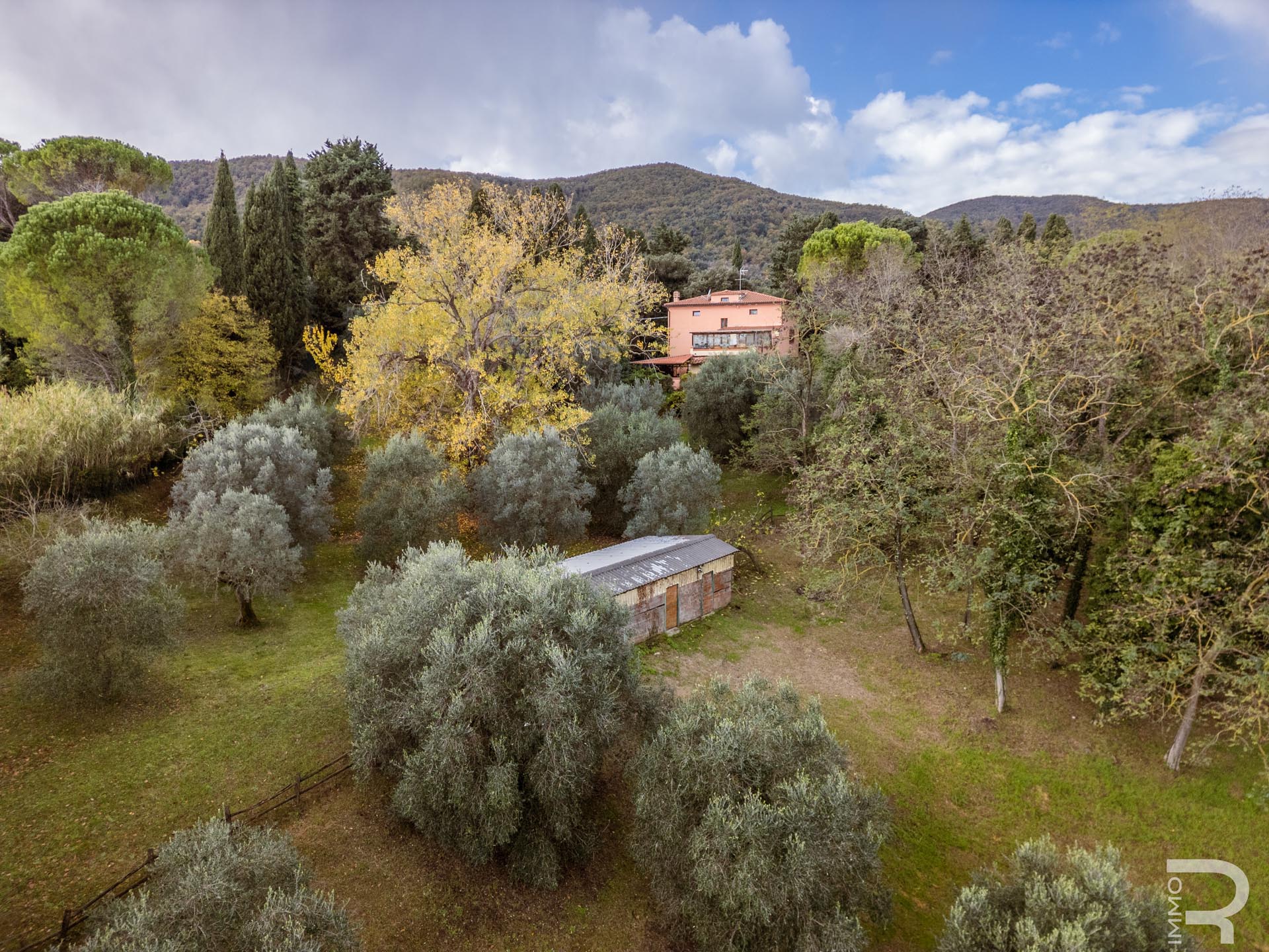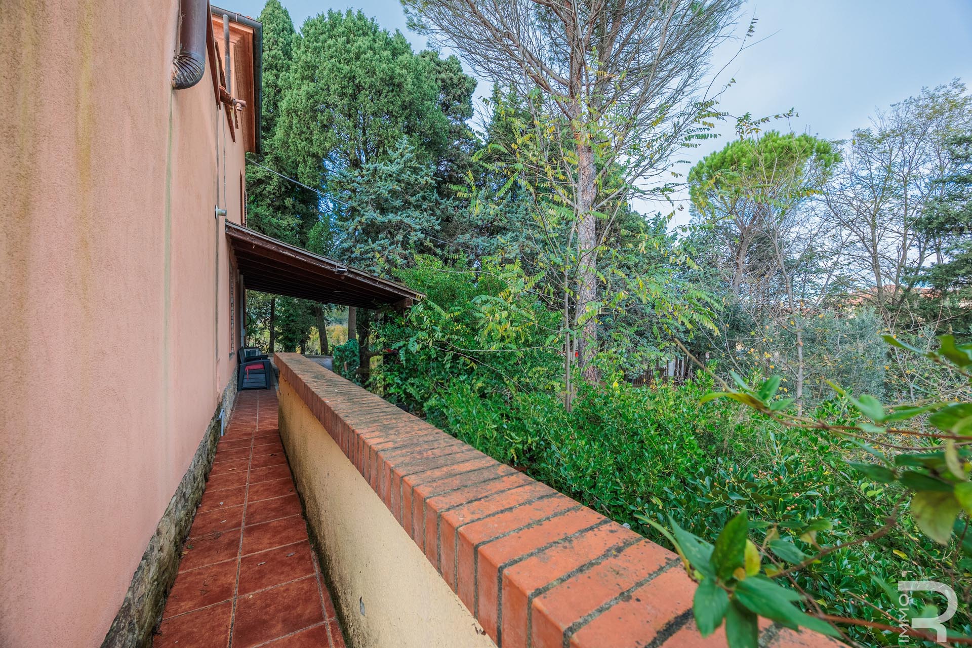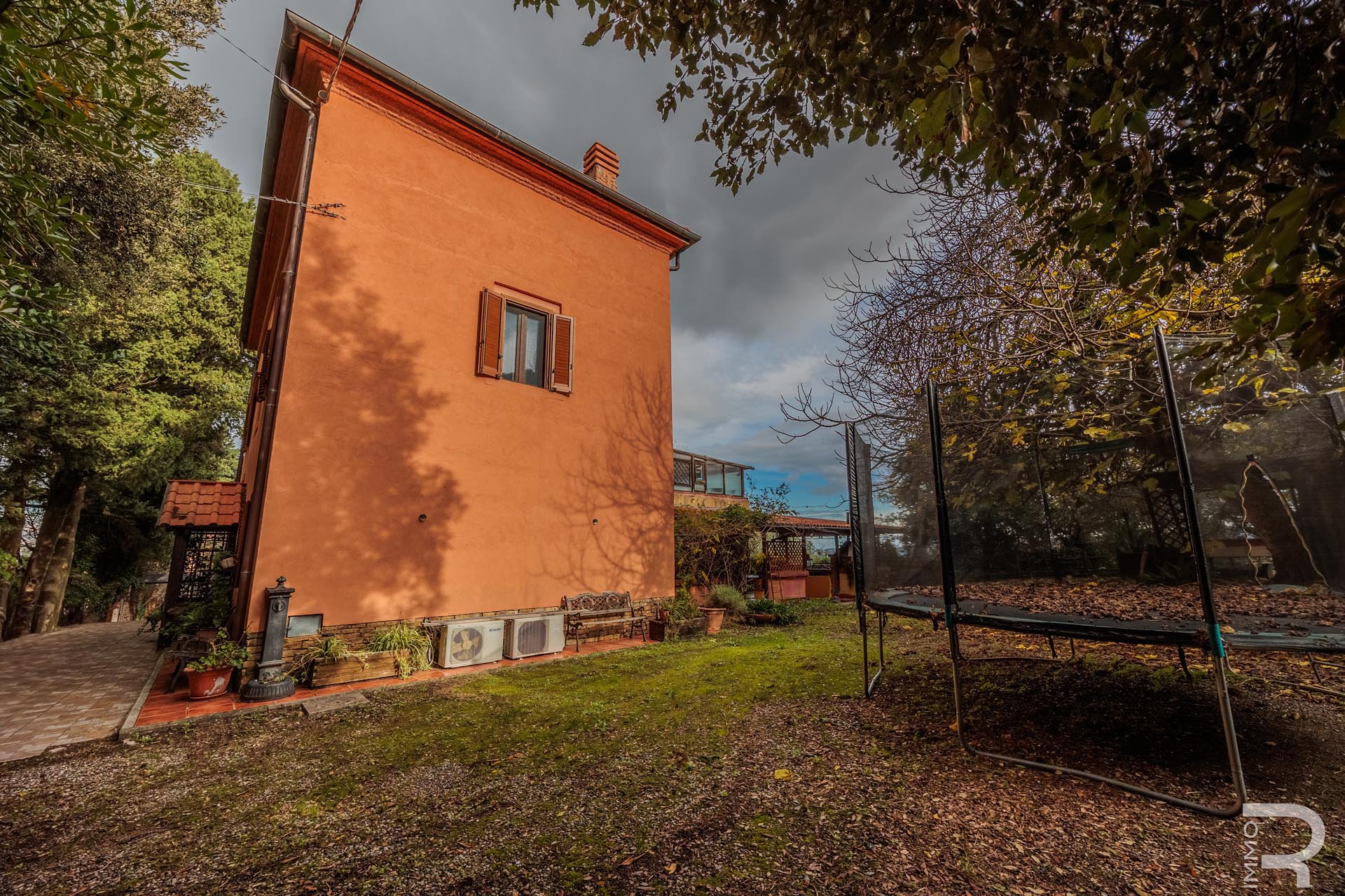 Various terraces and covered verandas surround the house, offering the perfect outdoor space at any time of day. A brick barbecue invites you to enjoy relaxed meals outdoors, while the landscaped garden with its mature plants and Mediterranean scents creates a unique atmosphere. The view stretches far across the picturesque hills of Livorno, giving the property a panorama that inspires every day anew.
