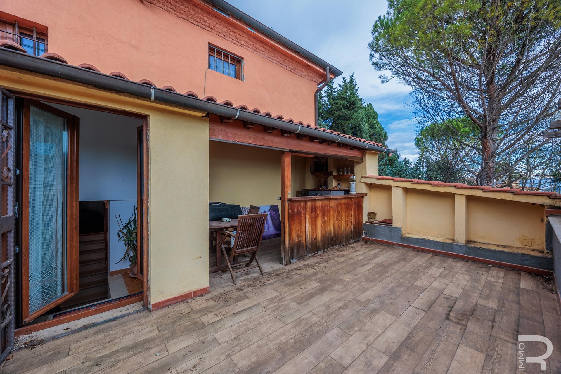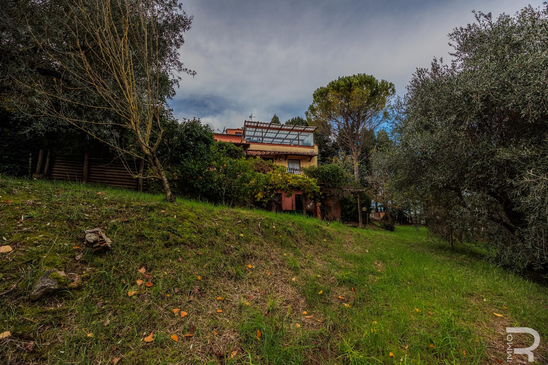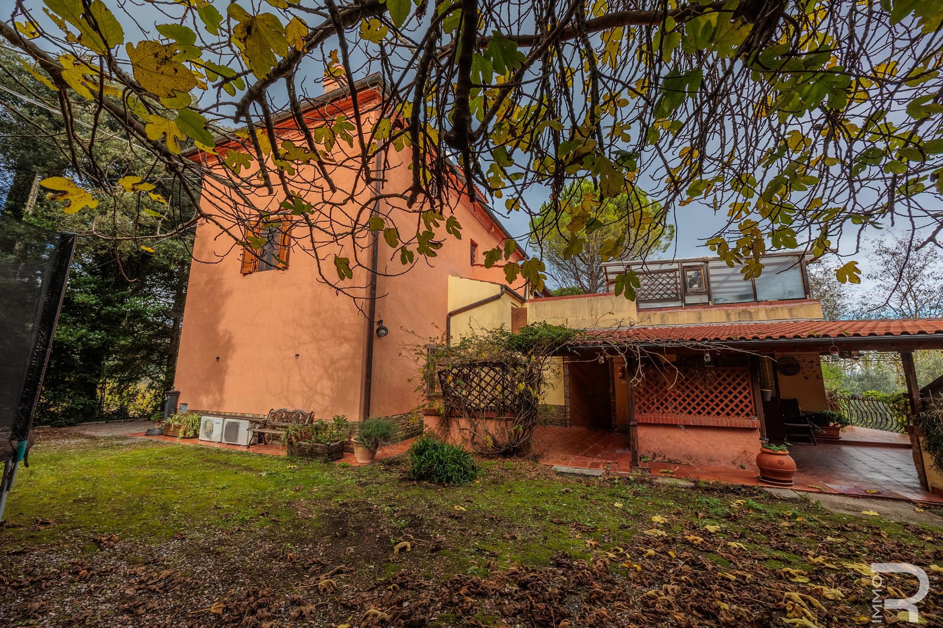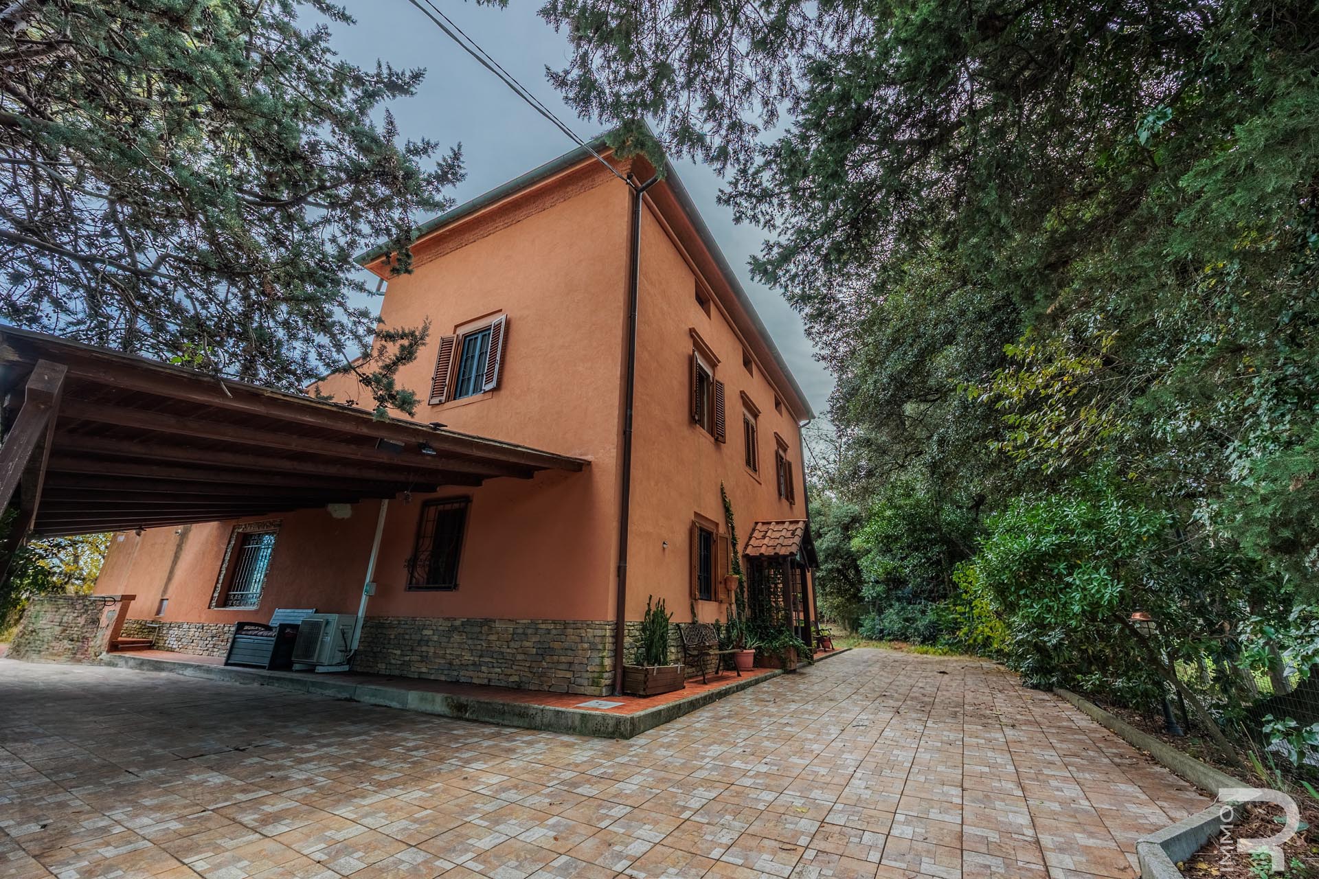 Various terraces and covered verandas surround the house, offering the perfect outdoor space at any time of day. A brick barbecue invites you to enjoy relaxed meals outdoors, while the landscaped garden with its mature plants and Mediterranean scents creates a unique atmosphere. The view stretches far across the picturesque hills of Livorno, giving the property a panorama that inspires every day anew.