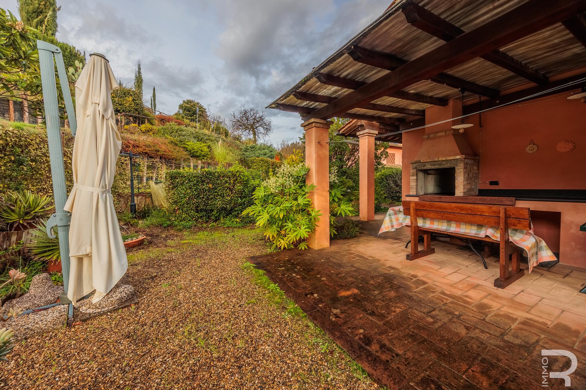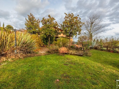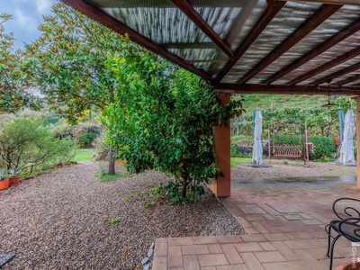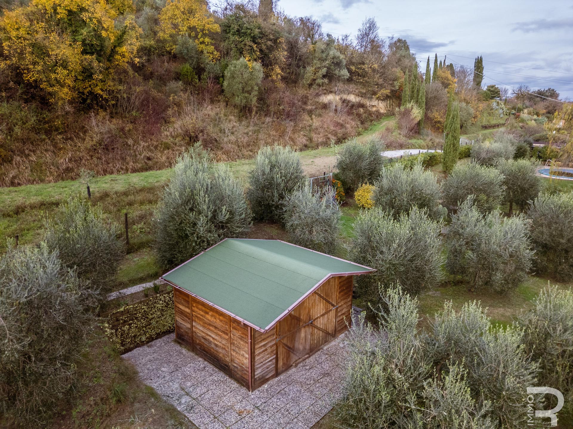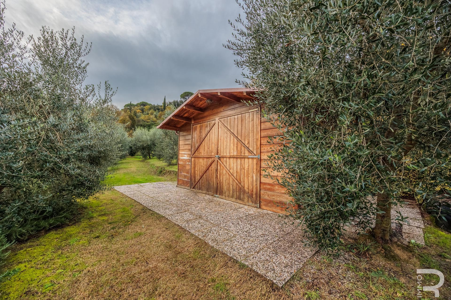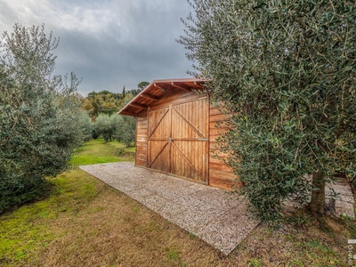 The garden is rich in vegetation and enchants with around 50 olive trees, numerous fruit trees, and rare plants. Roses and a variety of other flowers provide color, fragrance, and a special atmosphere throughout the year. Two regular wooden sheds offer practical additional space – ideal as storage, a hobby room, or a small workshop. Three separate driveways facilitate access to the property and offer additional flexibility in its use.