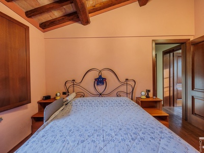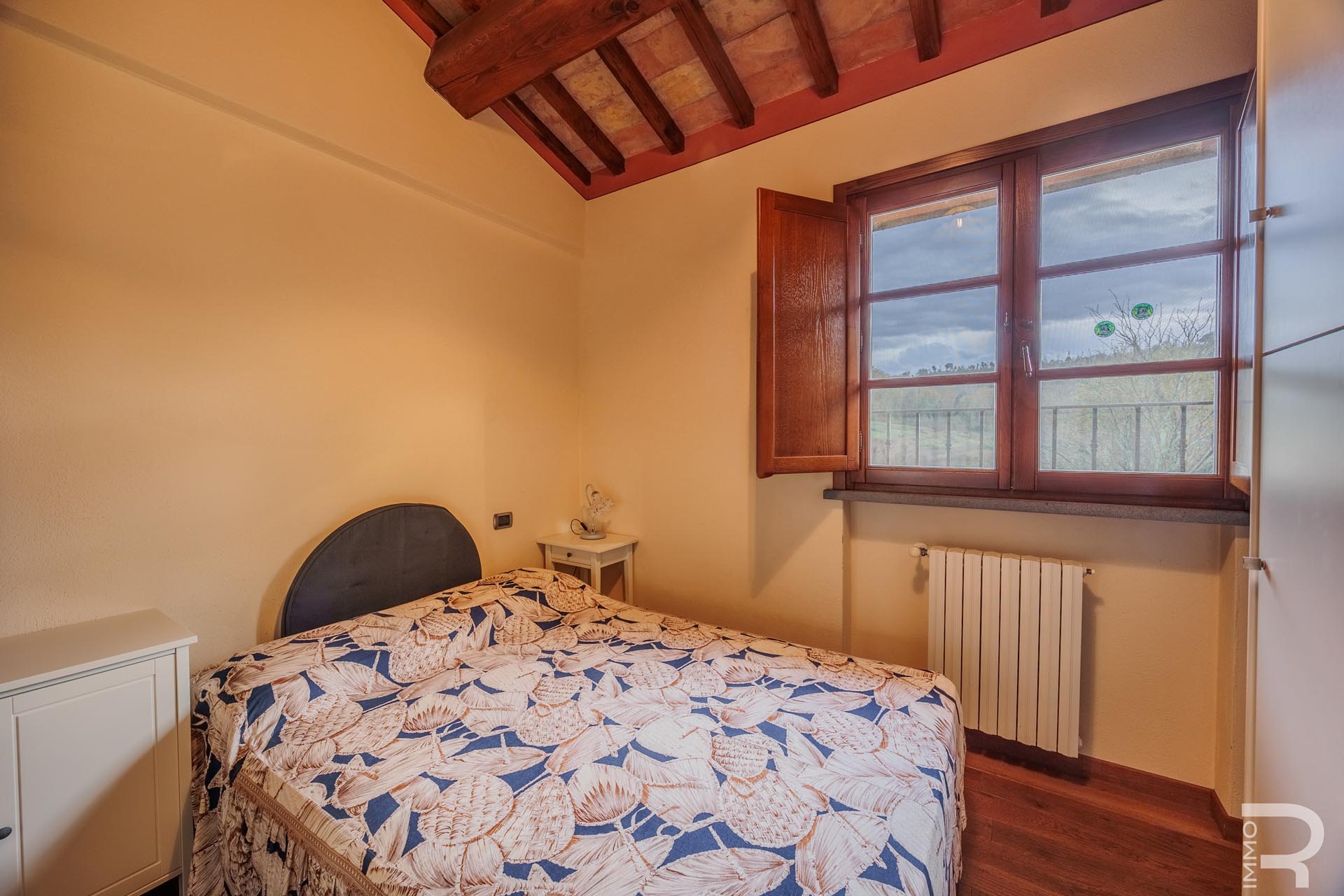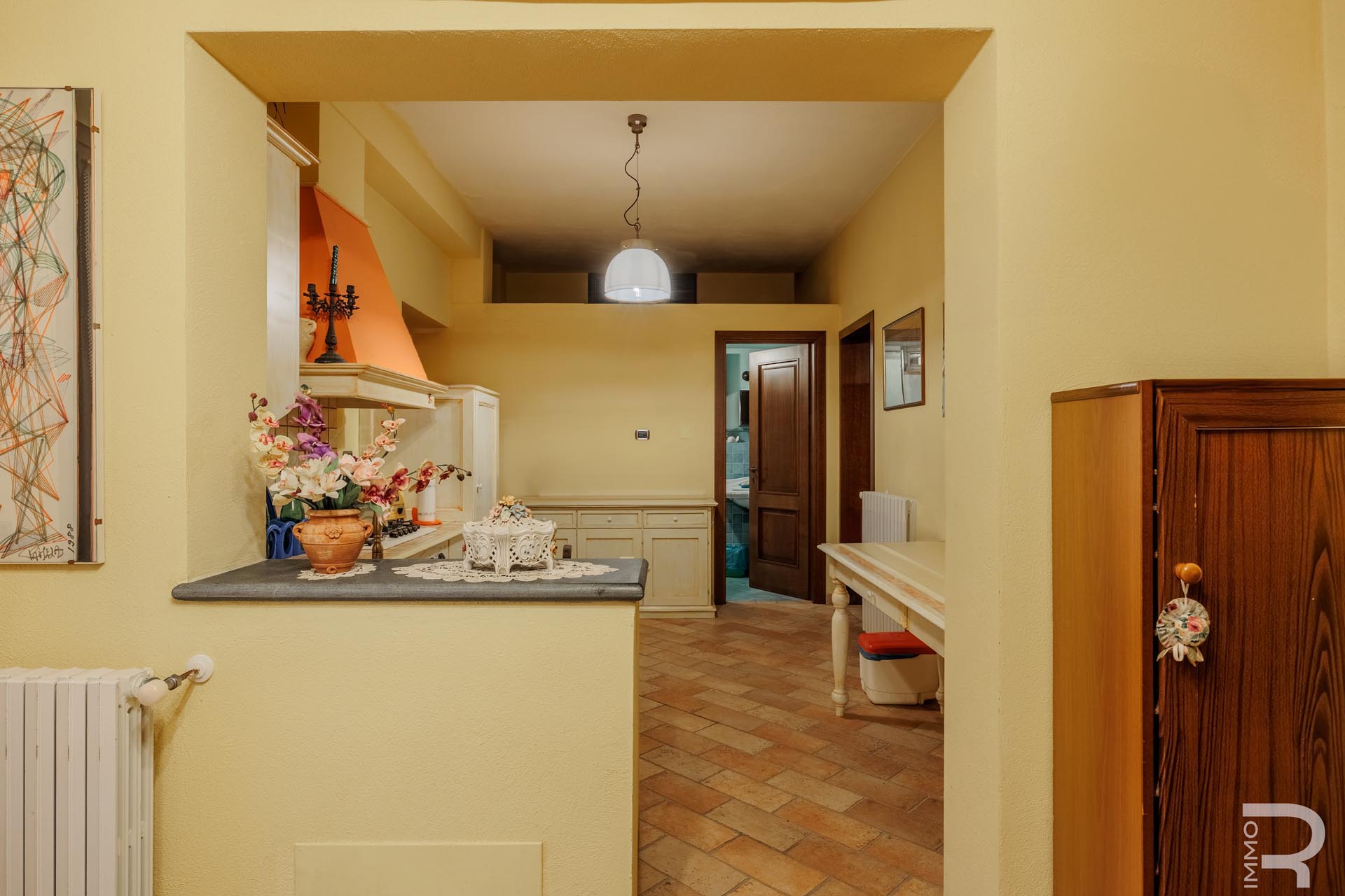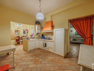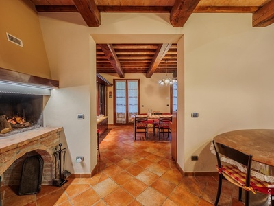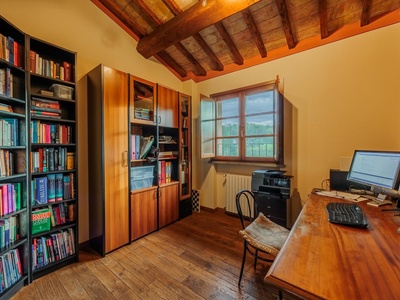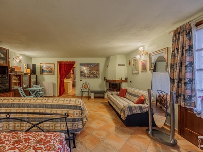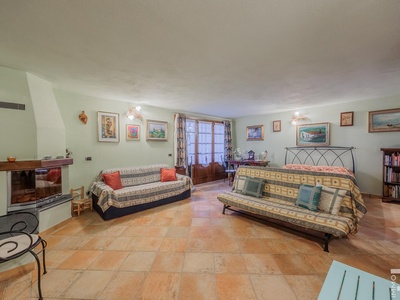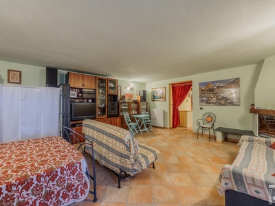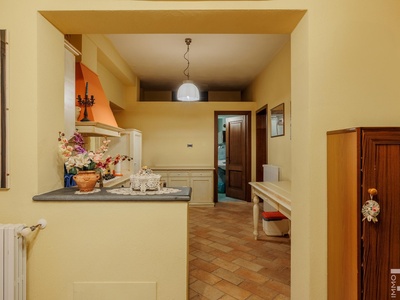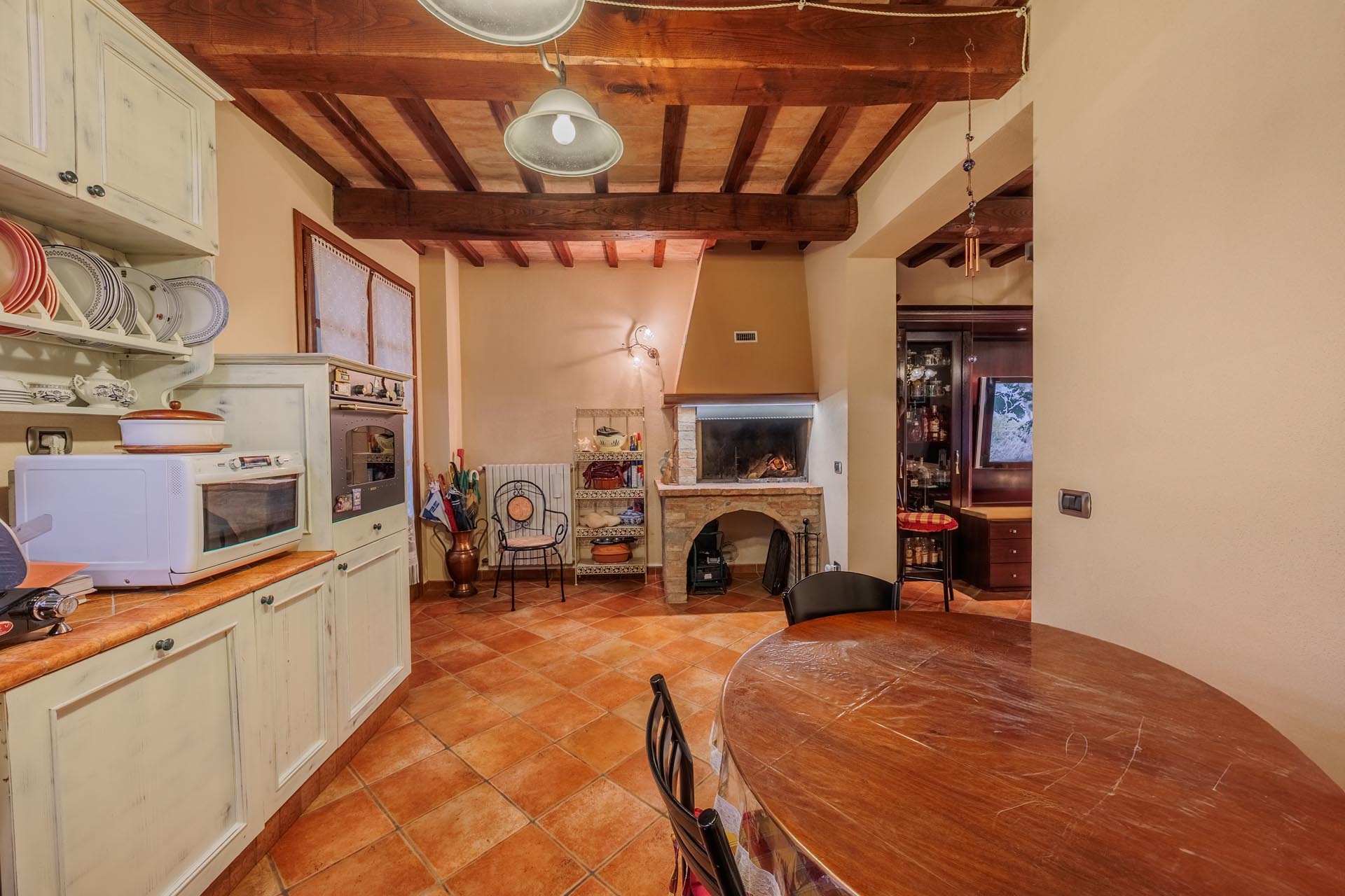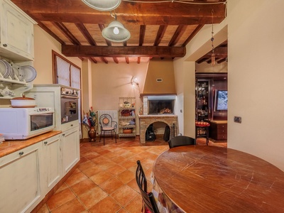 The living area itself impresses with high-quality materials and warm, charming architecture. Exposed wooden beams give the rooms character and underline the typical Tuscan style. A fireplace in the kitchen creates a cozy atmosphere and invites you to enjoy convivial evenings with family and friends.