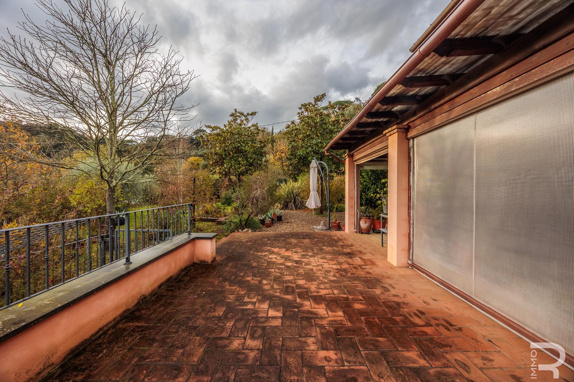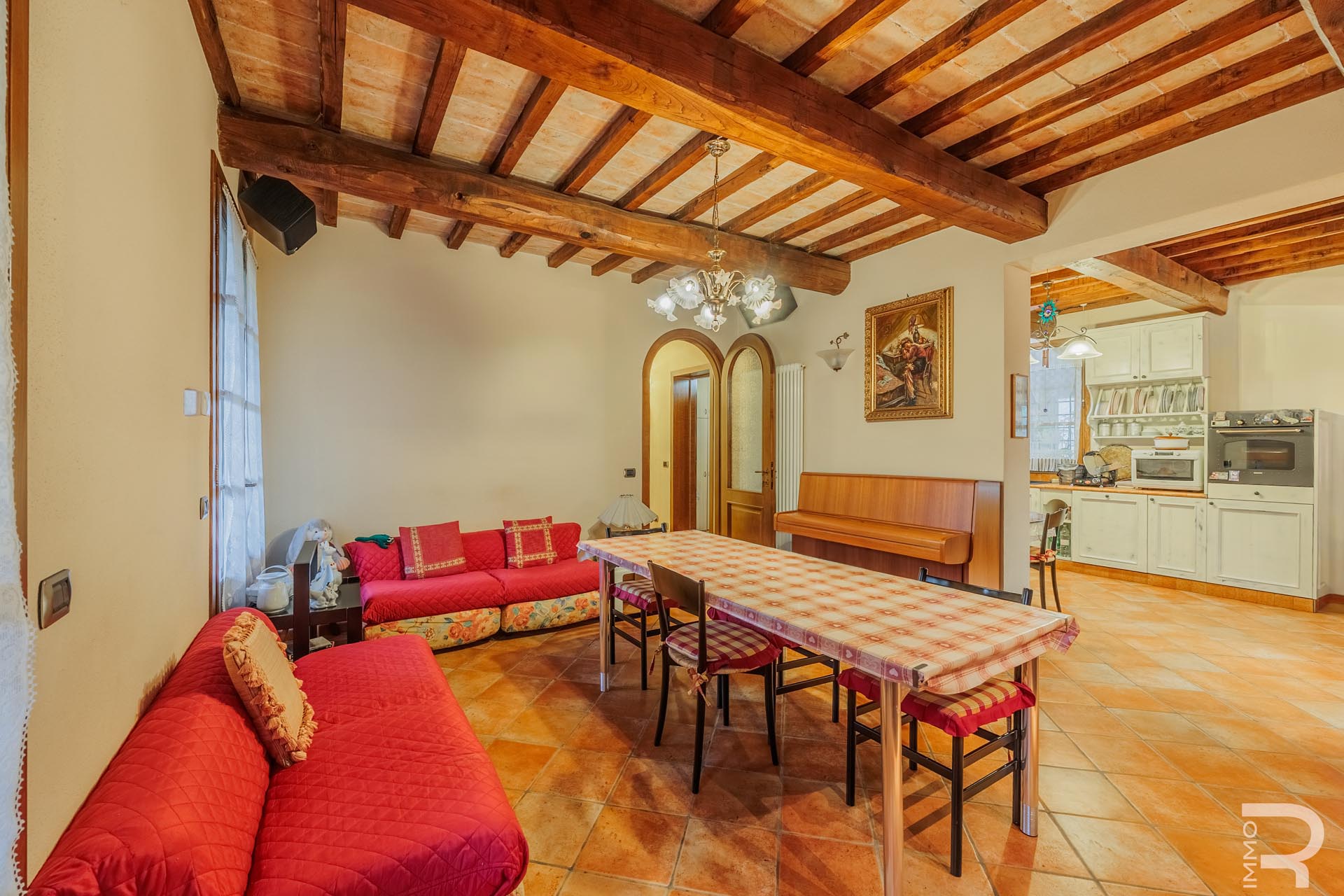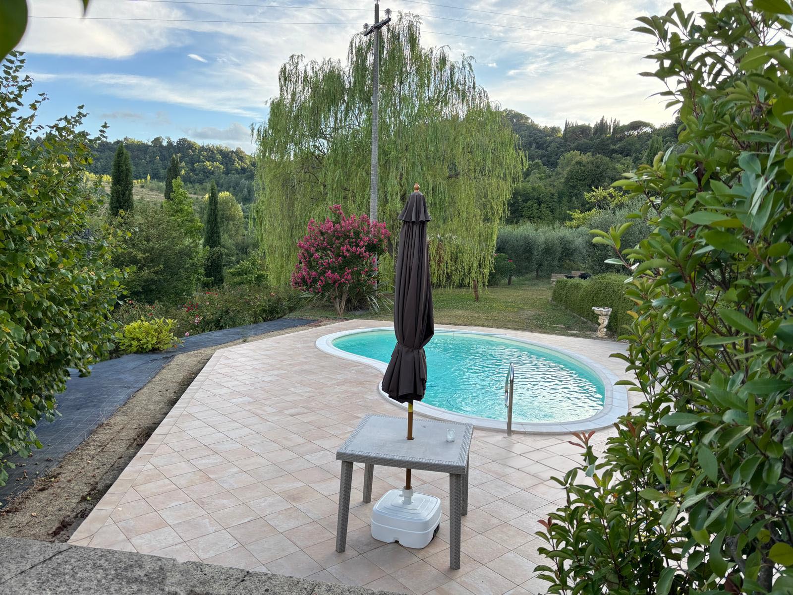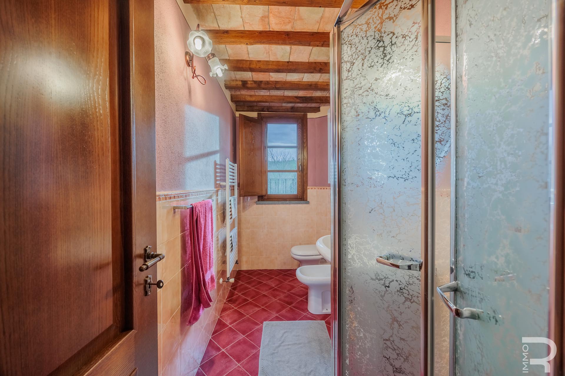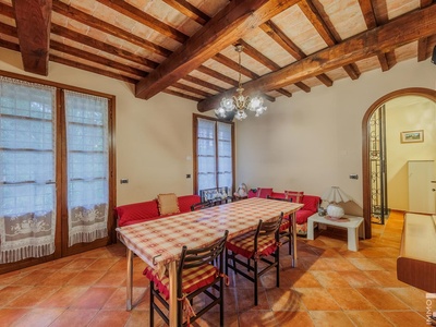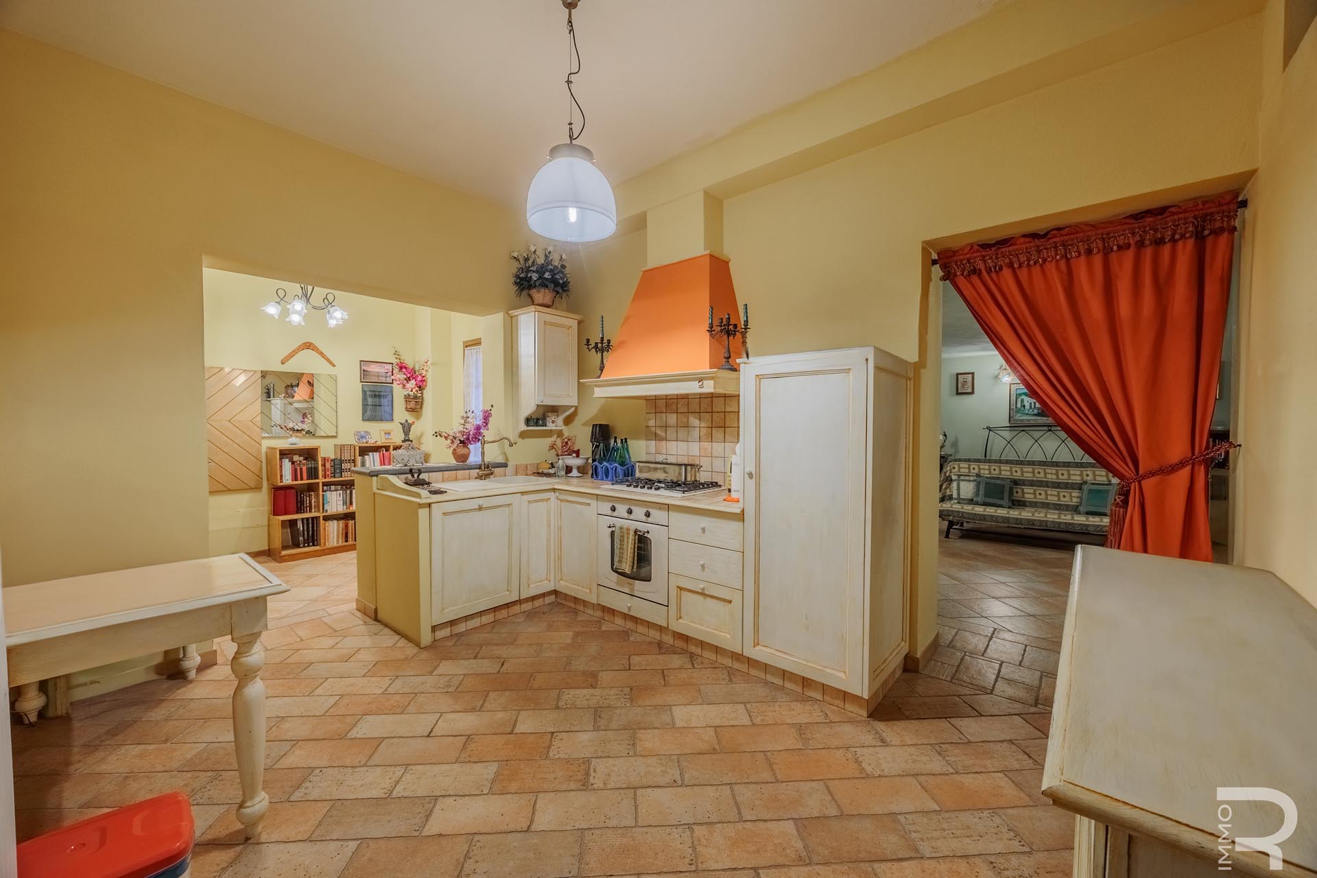 The living area itself impresses with high-quality materials and warm, charming architecture. Exposed wooden beams give the rooms character and underline the typical Tuscan style. A fireplace in the kitchen creates a cozy atmosphere and invites you to enjoy convivial evenings with family and friends.
