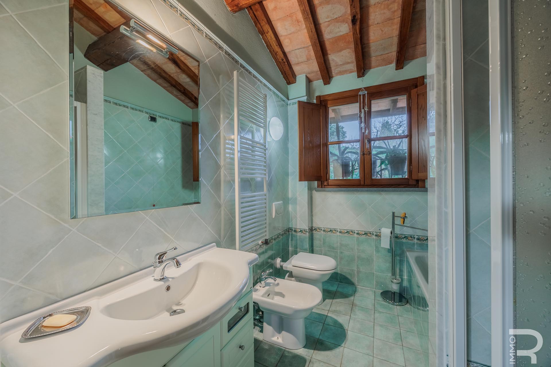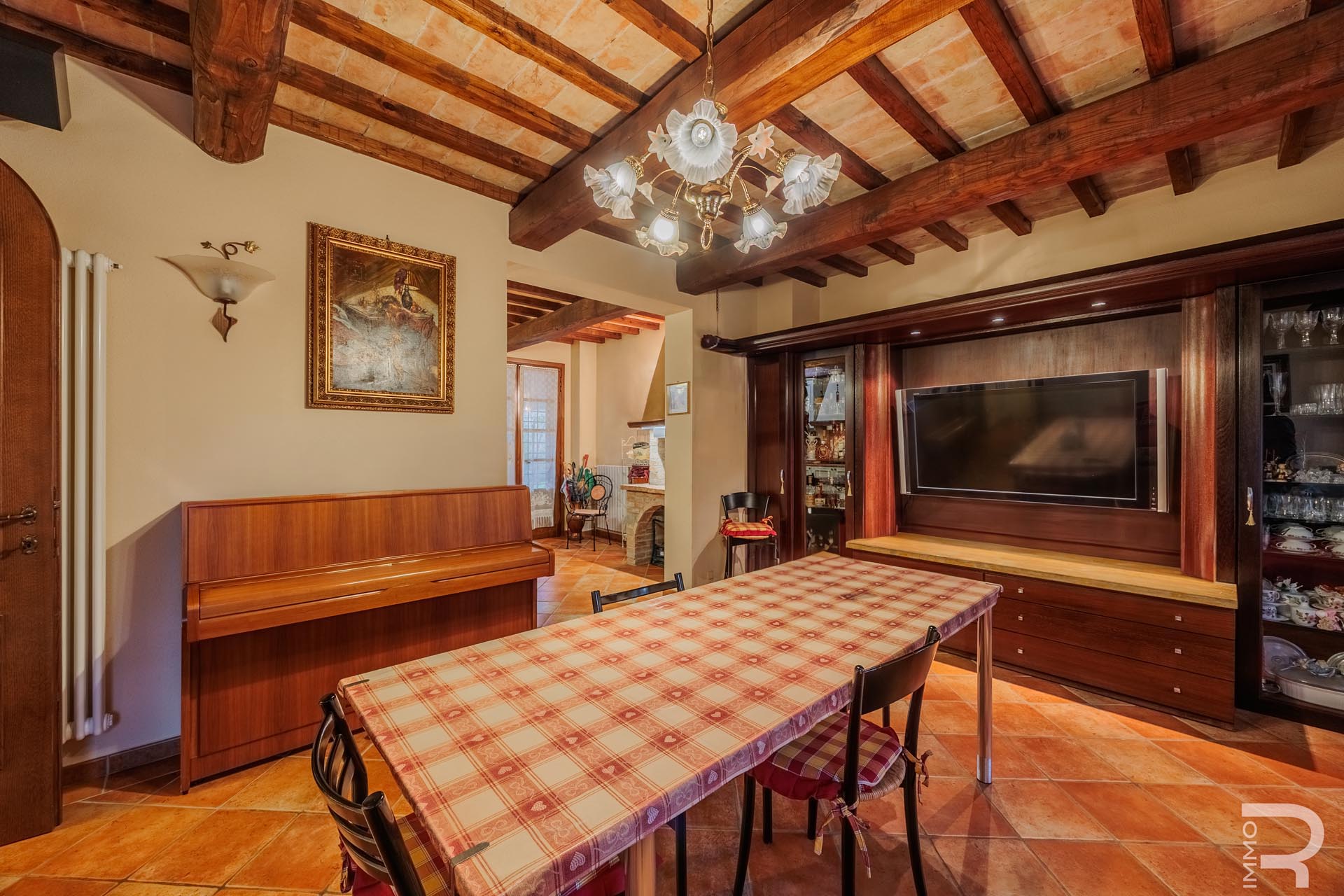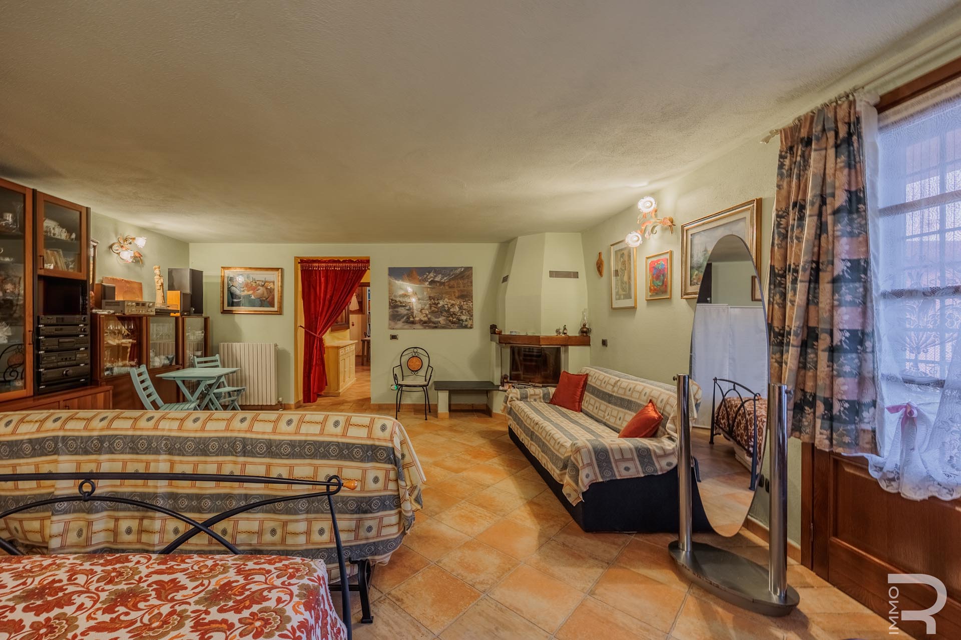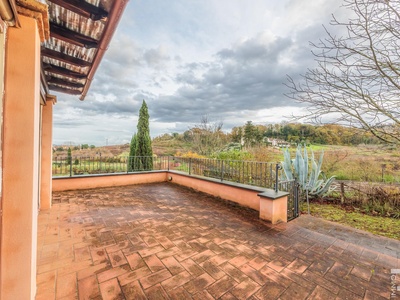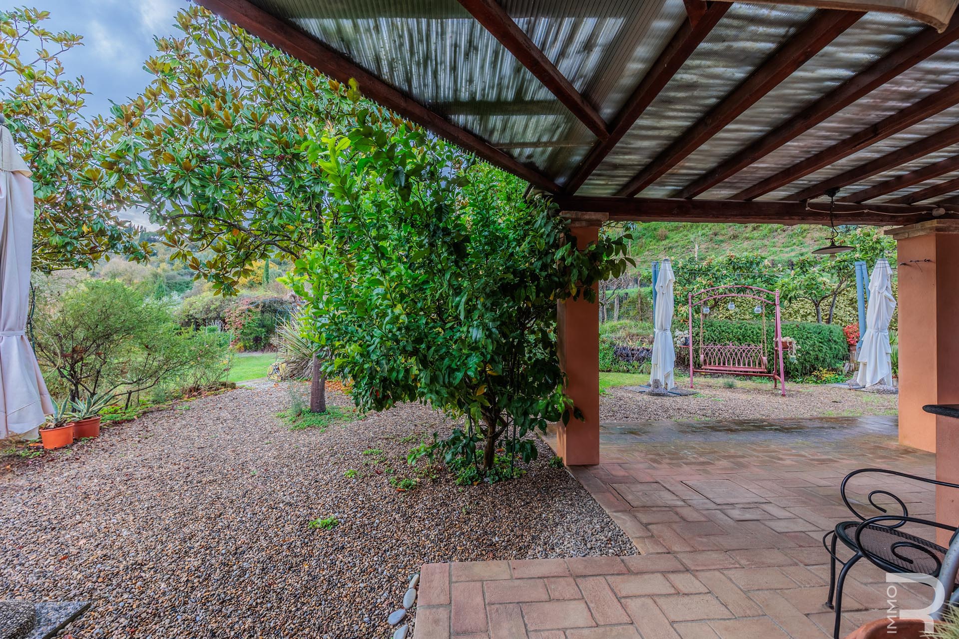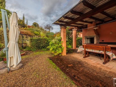 The living area itself impresses with high-quality materials and warm, charming architecture. Exposed wooden beams give the rooms character and underline the typical Tuscan style. A fireplace in the kitchen creates a cozy atmosphere and invites you to enjoy convivial evenings with family and friends.
