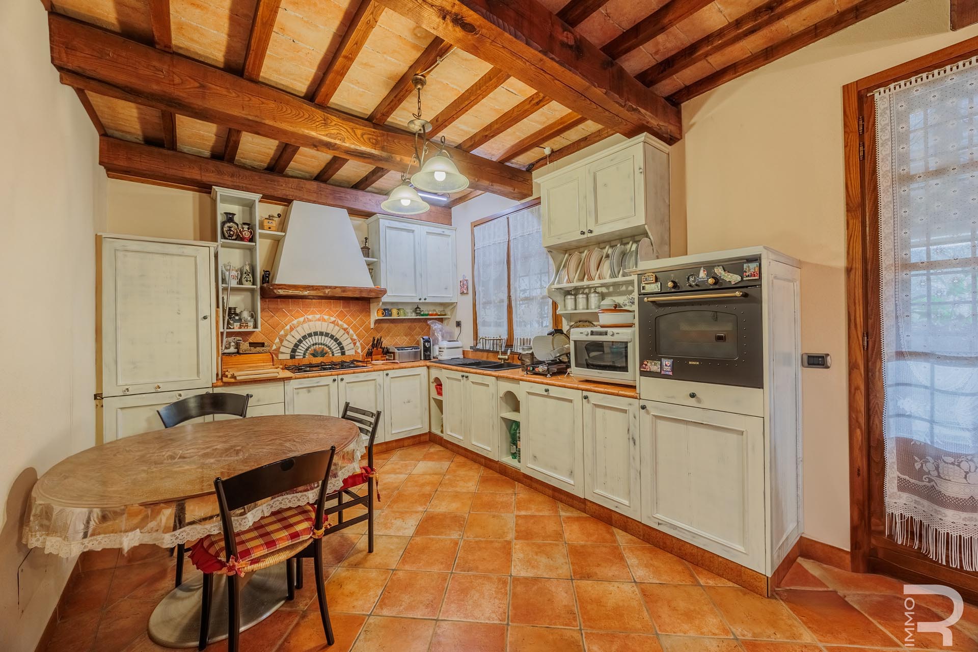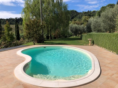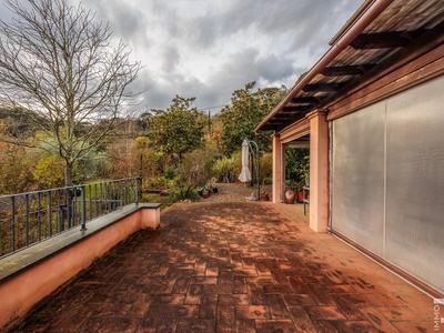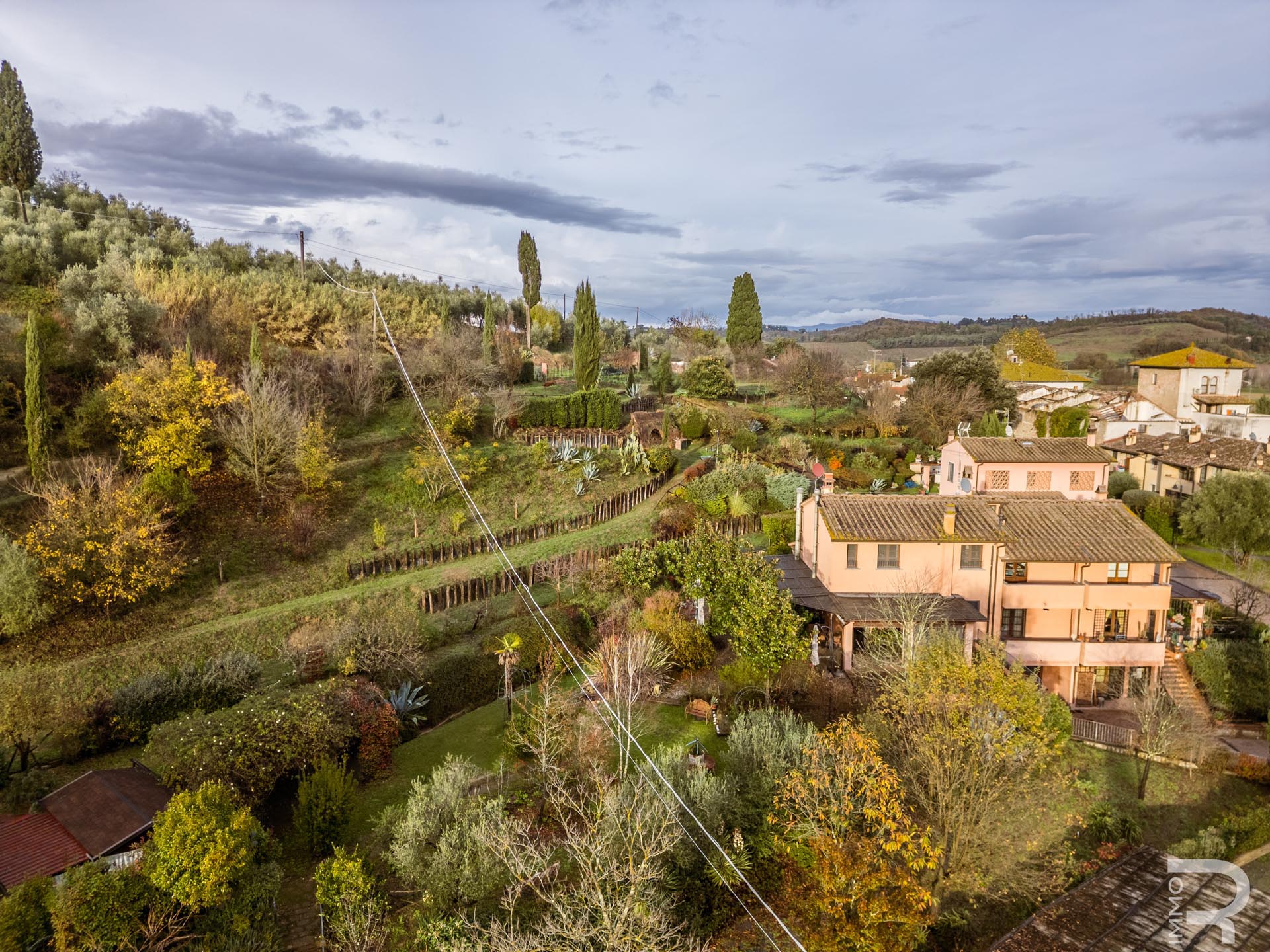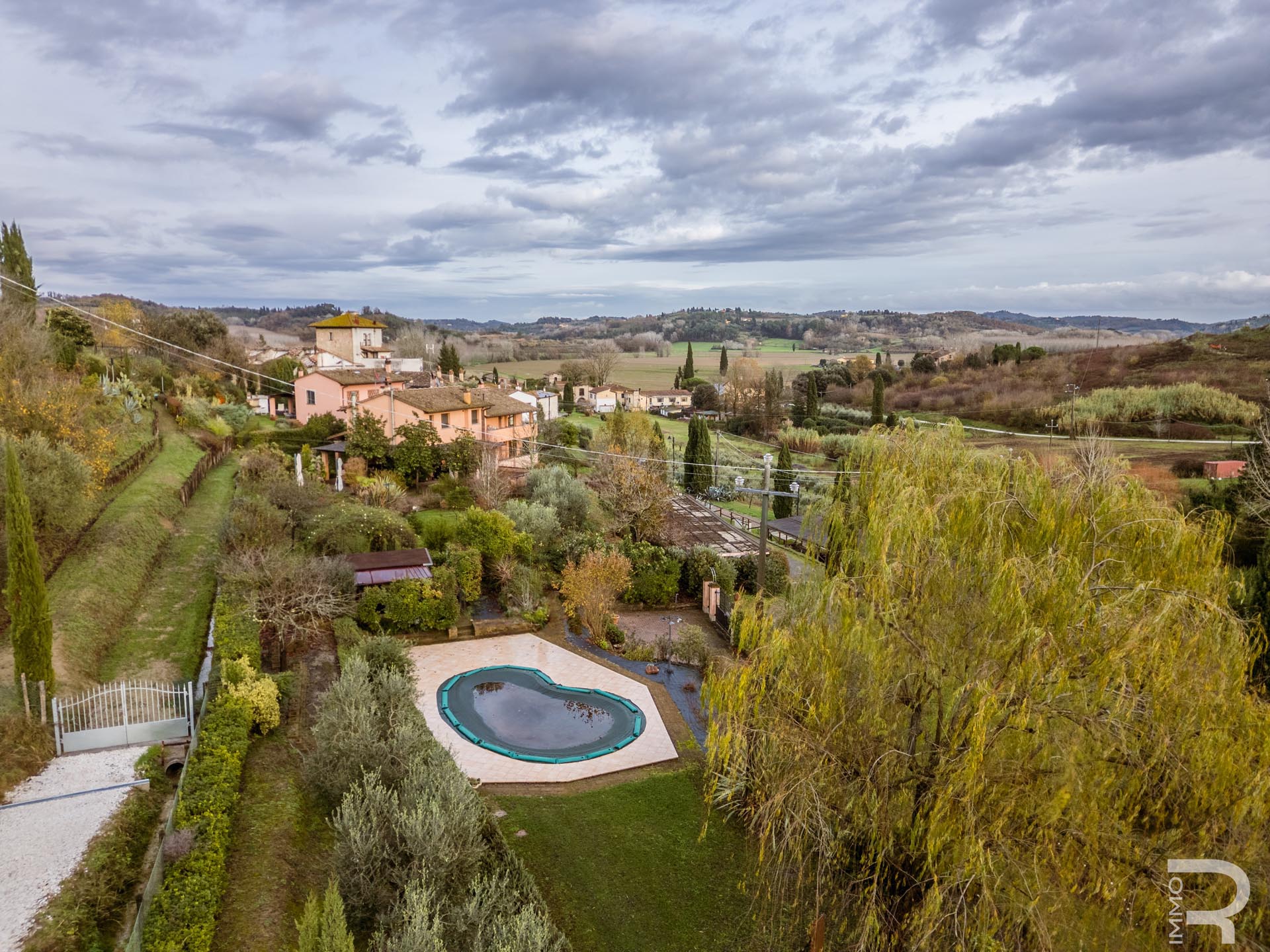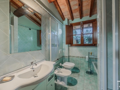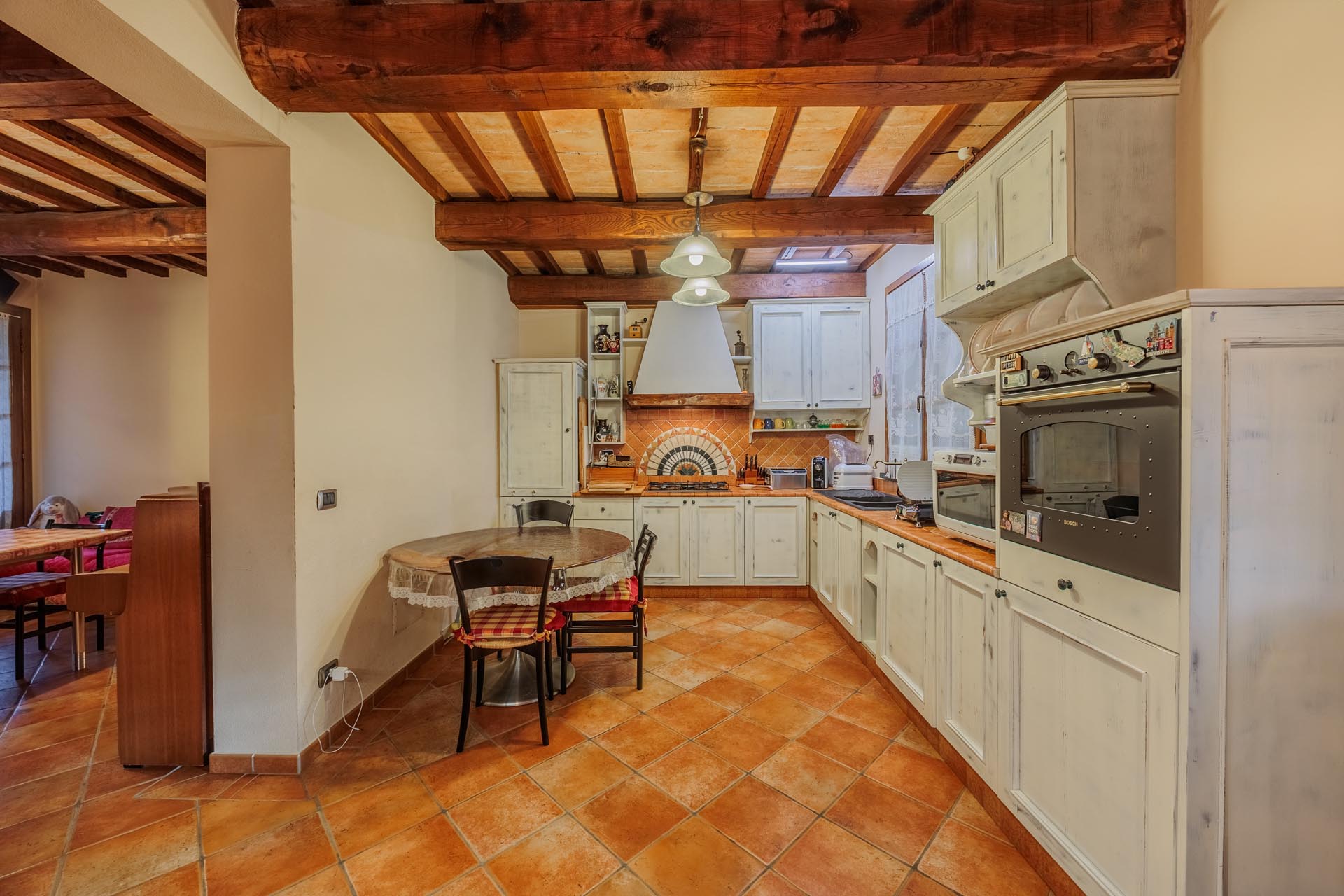 The living area itself impresses with high-quality materials and warm, charming architecture. Exposed wooden beams give the rooms character and underline the typical Tuscan style. A fireplace in the kitchen creates a cozy atmosphere and invites you to enjoy convivial evenings with family and friends.