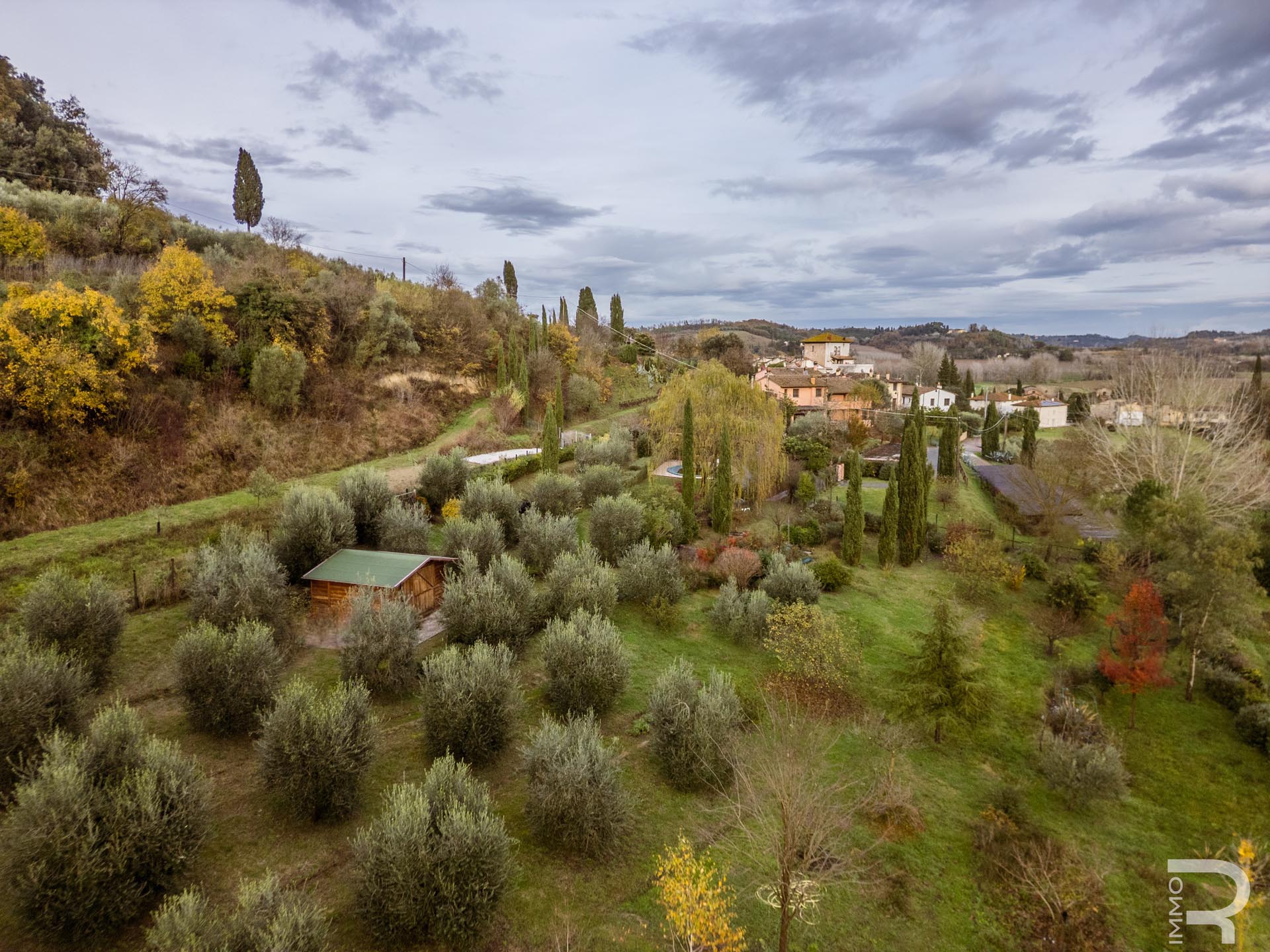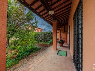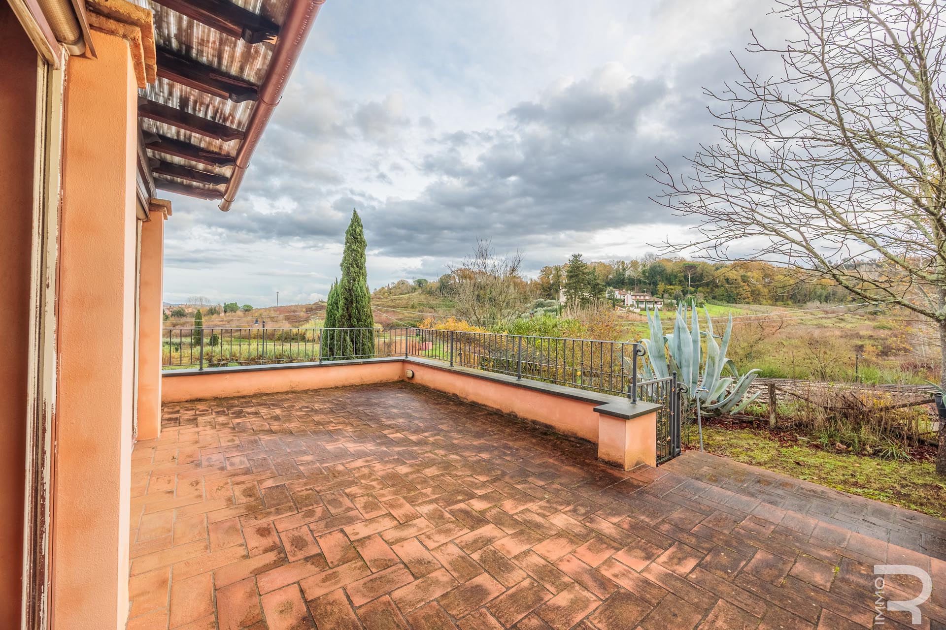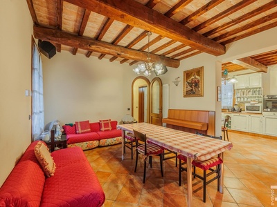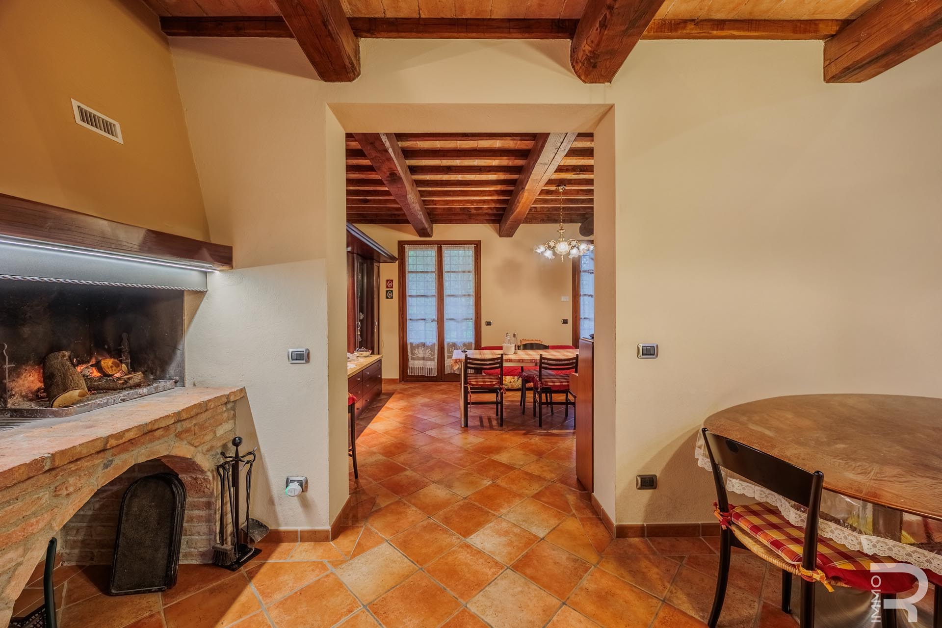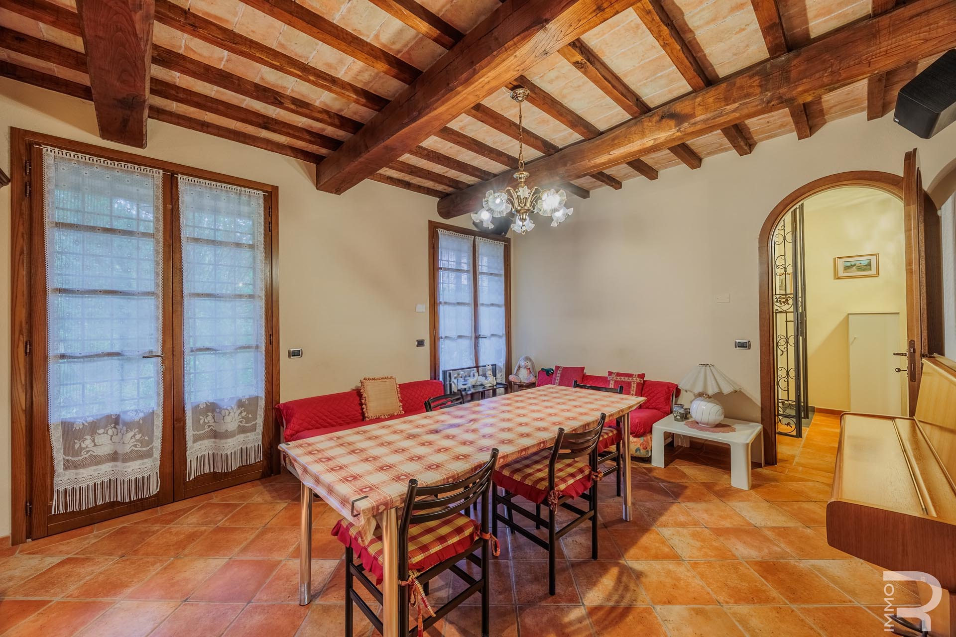 The living area itself impresses with high-quality materials and warm, charming architecture. Exposed wooden beams give the rooms character and underline the typical Tuscan style. A fireplace in the kitchen creates a cozy atmosphere and invites you to enjoy convivial evenings with family and friends.