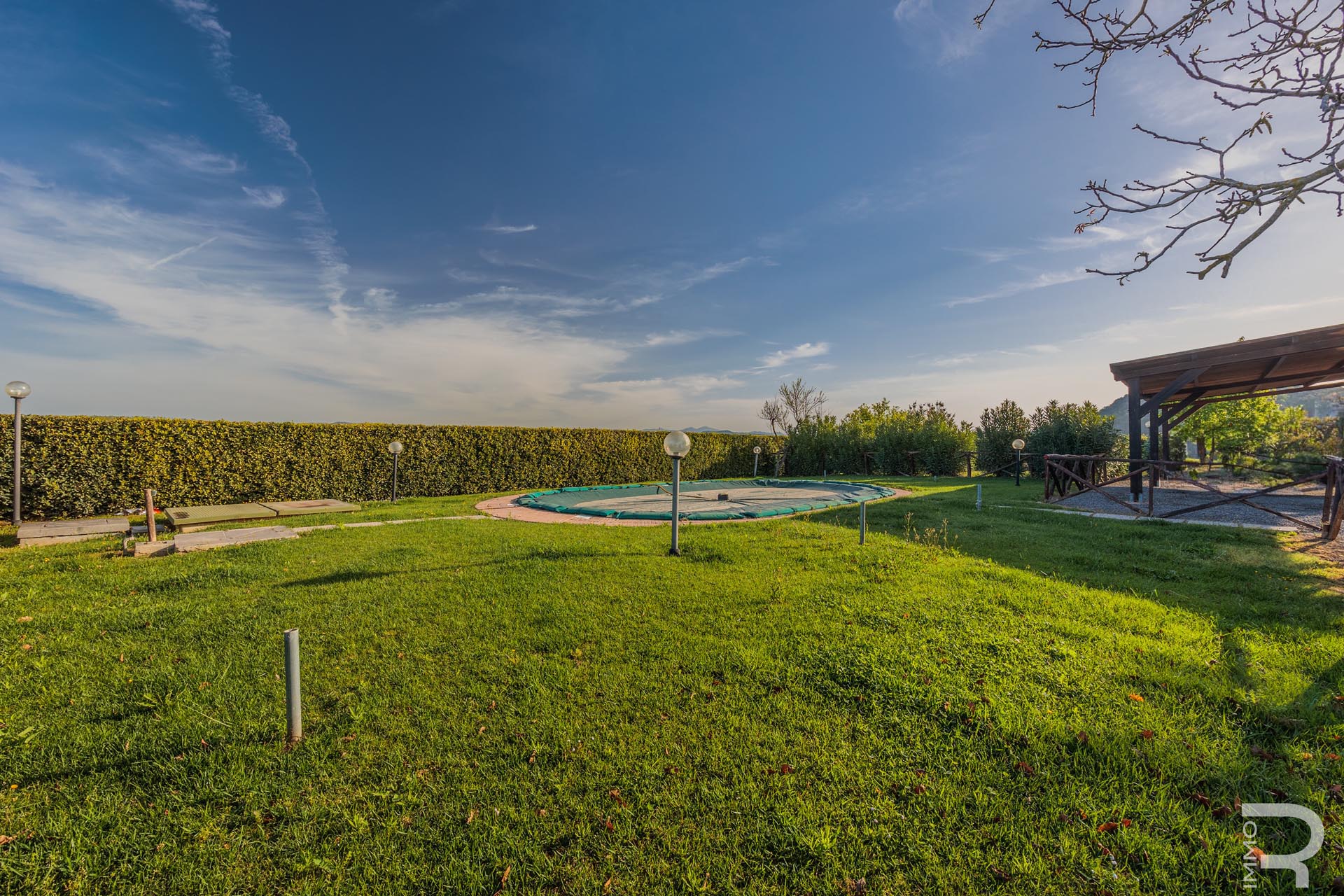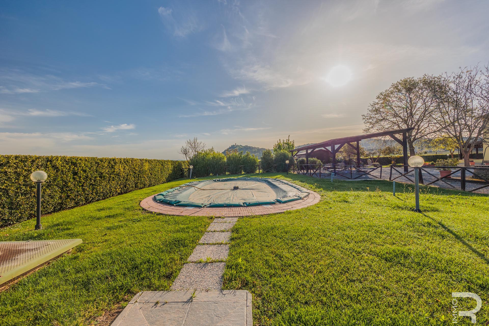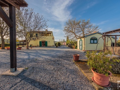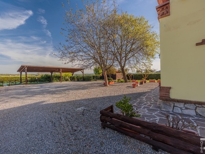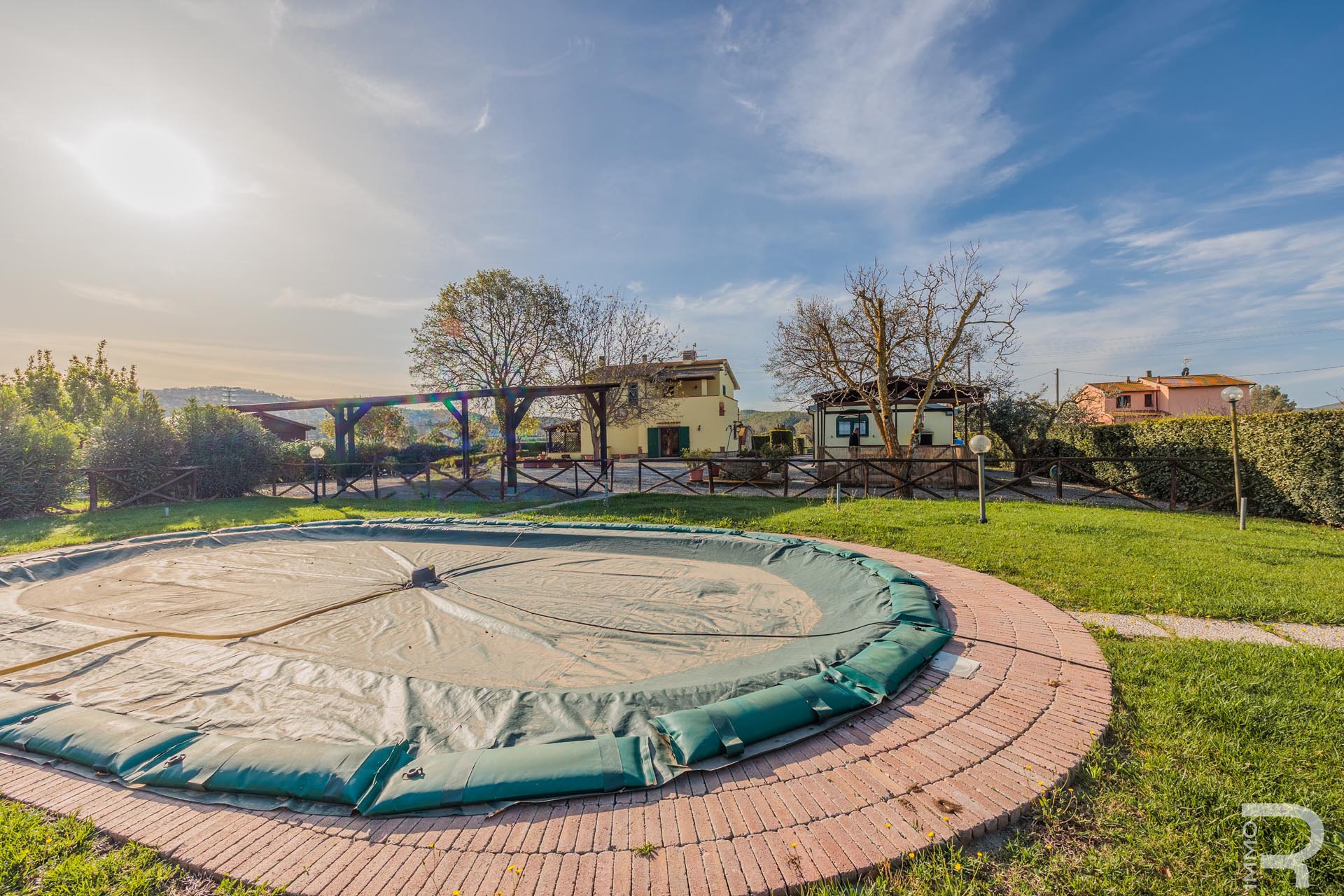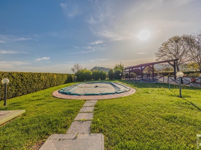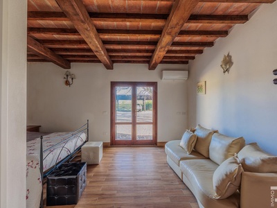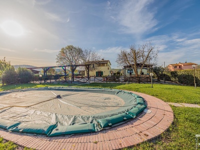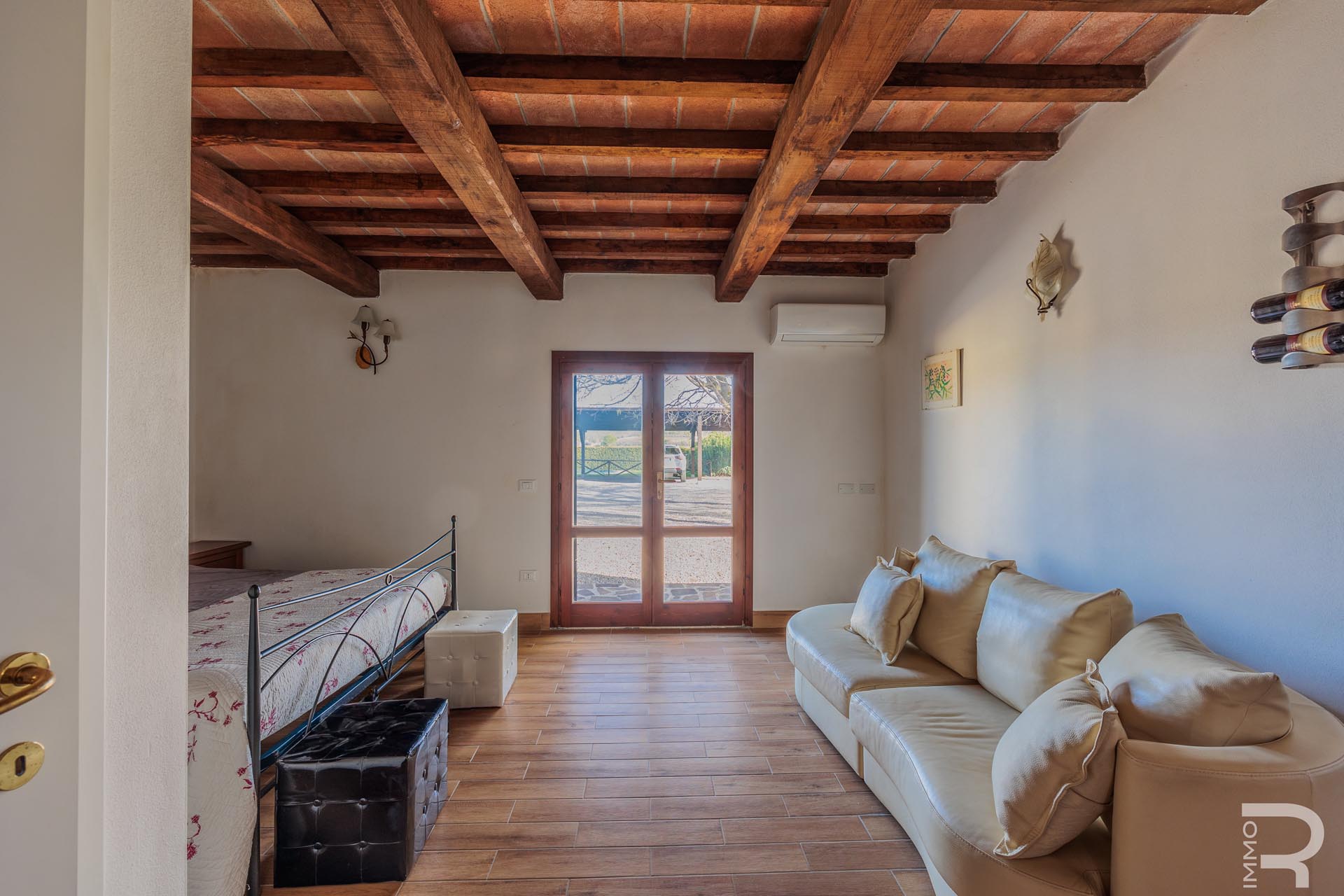 R05237MAAG - This dreamlike property, a small agriturismo with two apartments and four farm buildings, is presented in an extremely attractive condition. Having been lovingly renovated in 2010, it now offers the perfect blend of rusticity and modern comfort. The house is surrounded by a well-kept, spacious garden of around 2,500 square meters, which impresses not only with its size but also with its richness. The swimming pool, which blends beautifully into the garden, invites you to enjoy a refreshing dip in the warm summer months, while the surrounding large terrace areas are ideal for relaxing, sunbathing or barbecuing with friends. An automatic garden irrigation system ensures that the garden remains fresh and green at all times, while atmospheric garden lighting showcases the beauty of the grounds at night. The property also has ample parking space, which is ideal for both personal use and for guests.