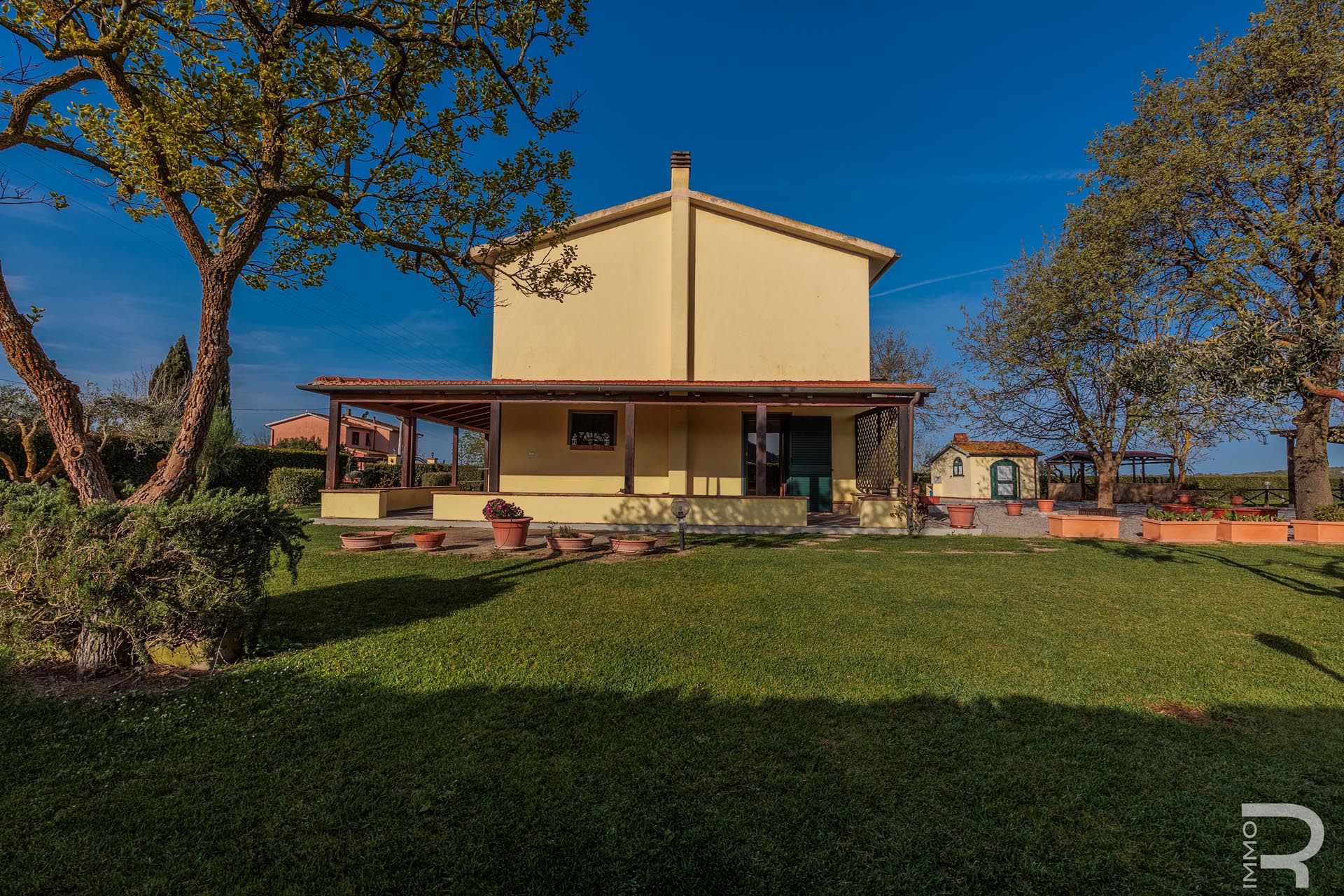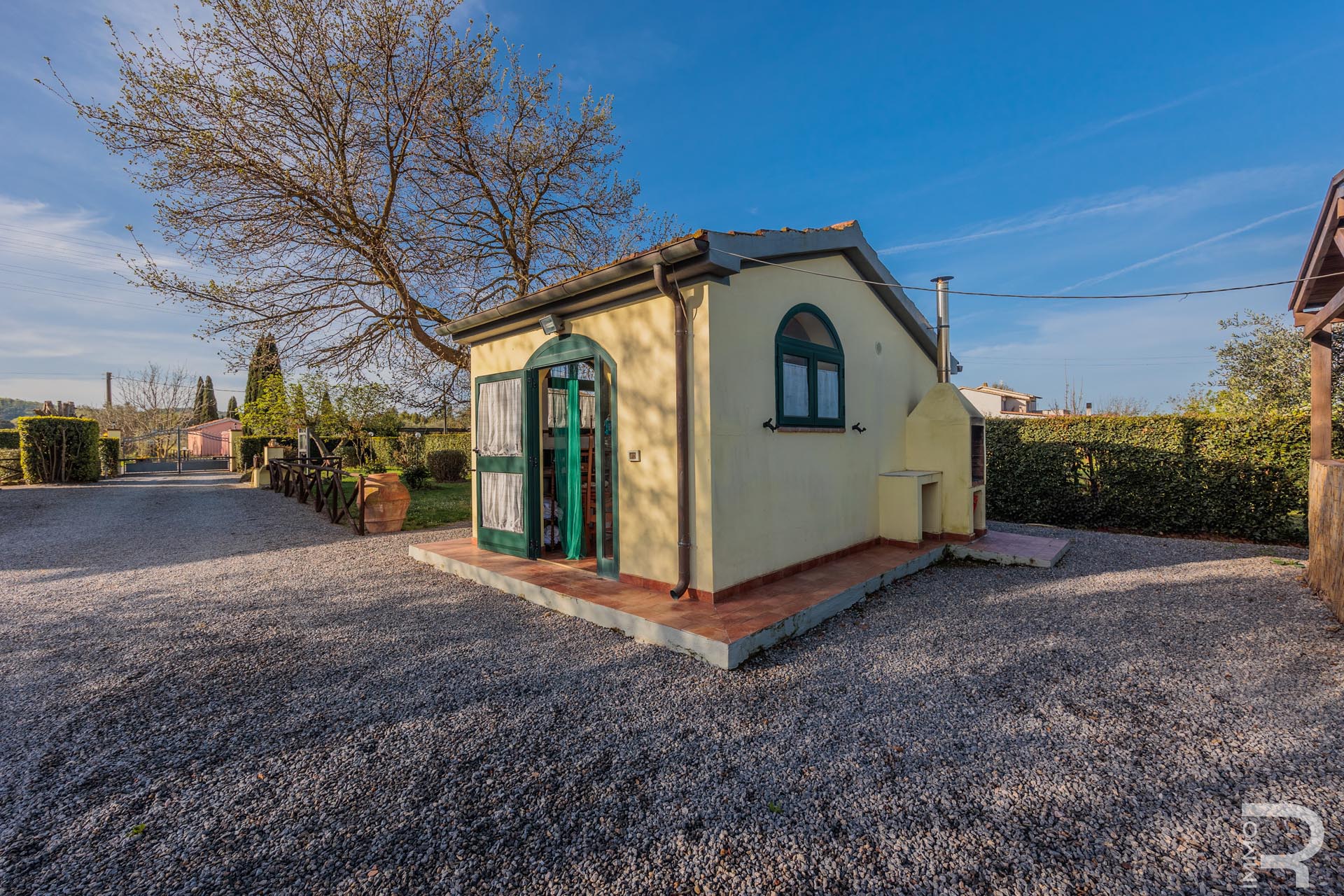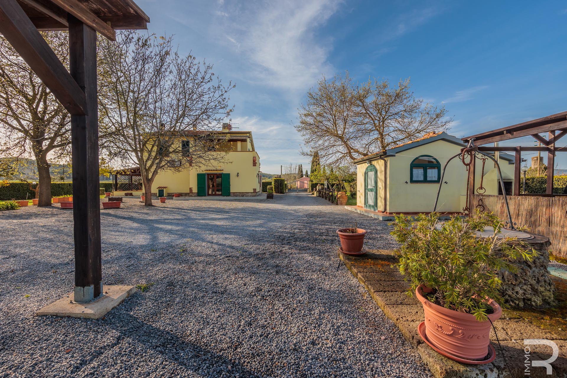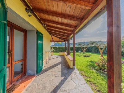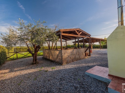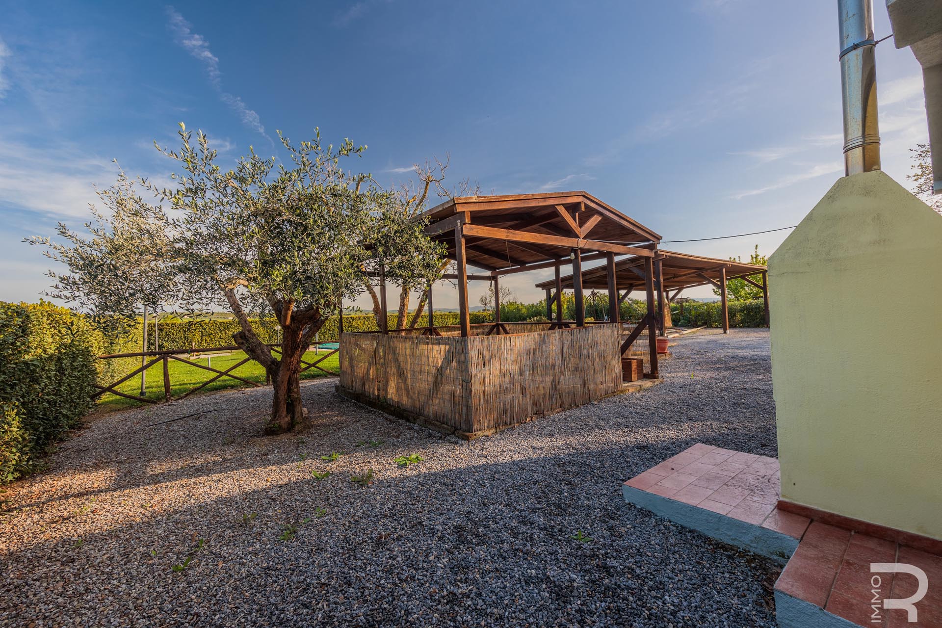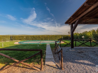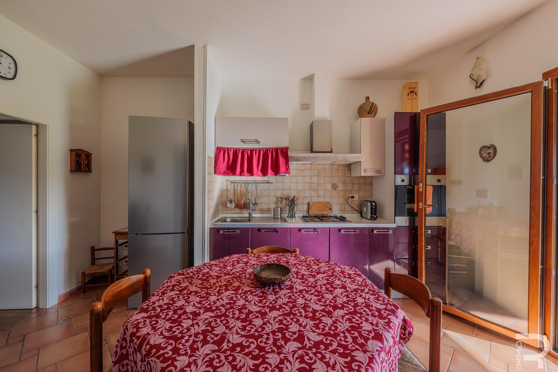 R05237MAAG - This dreamlike property, a small agriturismo with two apartments and four farm buildings, is presented in an extremely attractive condition. Having been lovingly renovated in 2010, it now offers the perfect blend of rusticity and modern comfort. The house is surrounded by a well-kept, spacious garden of around 2,500 square meters, which impresses not only with its size but also with its richness. The swimming pool, which blends beautifully into the garden, invites you to enjoy a refreshing dip in the warm summer months, while the surrounding large terrace areas are ideal for relaxing, sunbathing or barbecuing with friends. An automatic garden irrigation system ensures that the garden remains fresh and green at all times, while atmospheric garden lighting showcases the beauty of the grounds at night. The property also has ample parking space, which is ideal for both personal use and for guests.