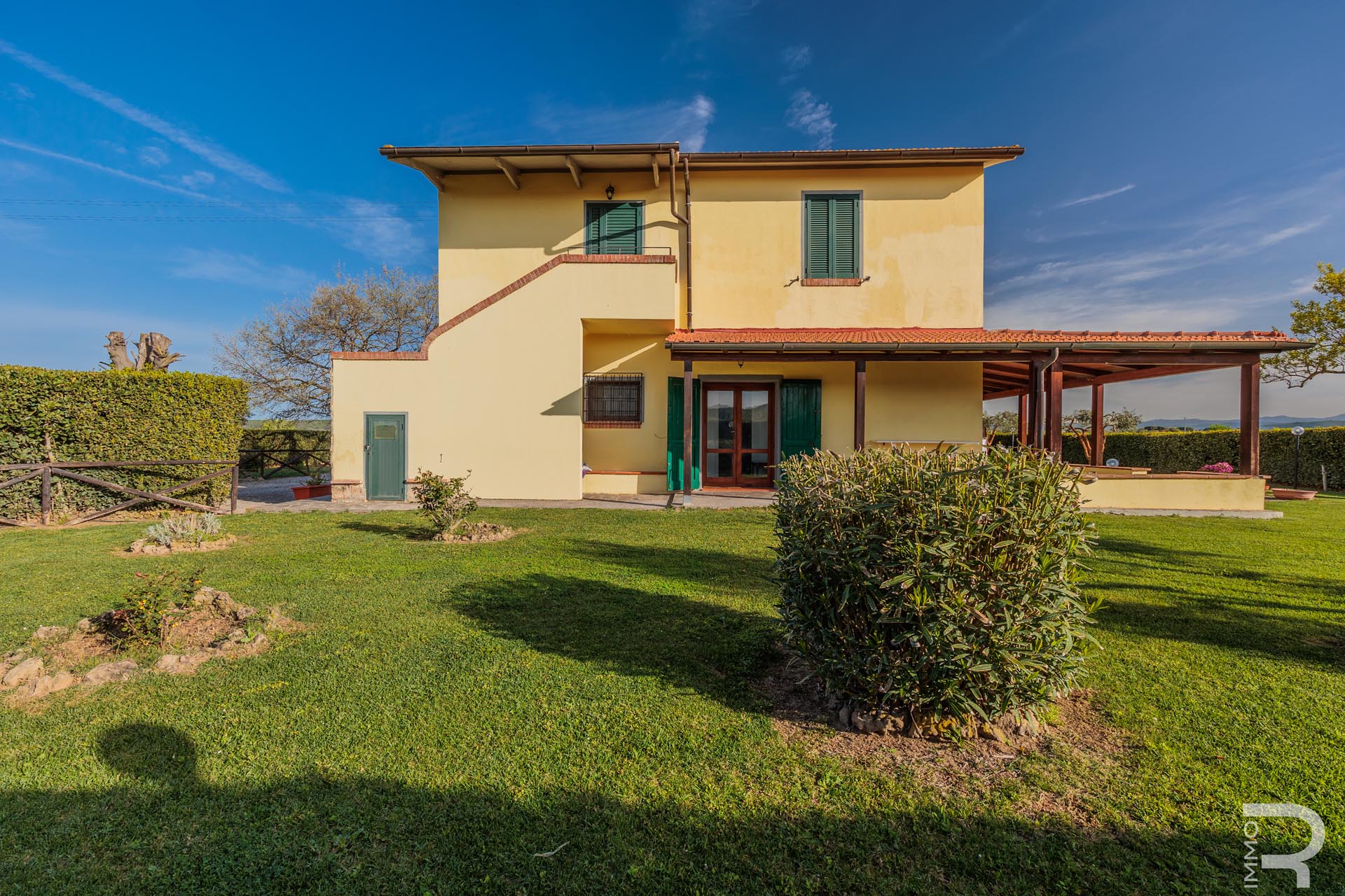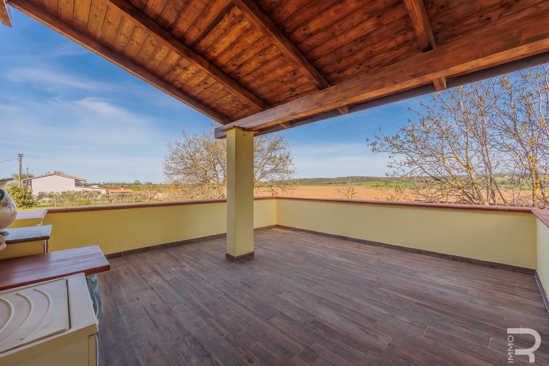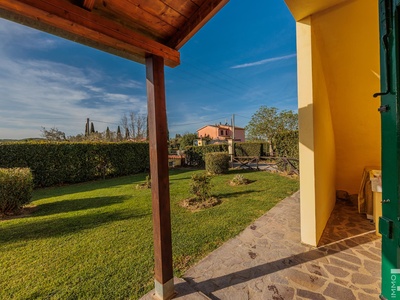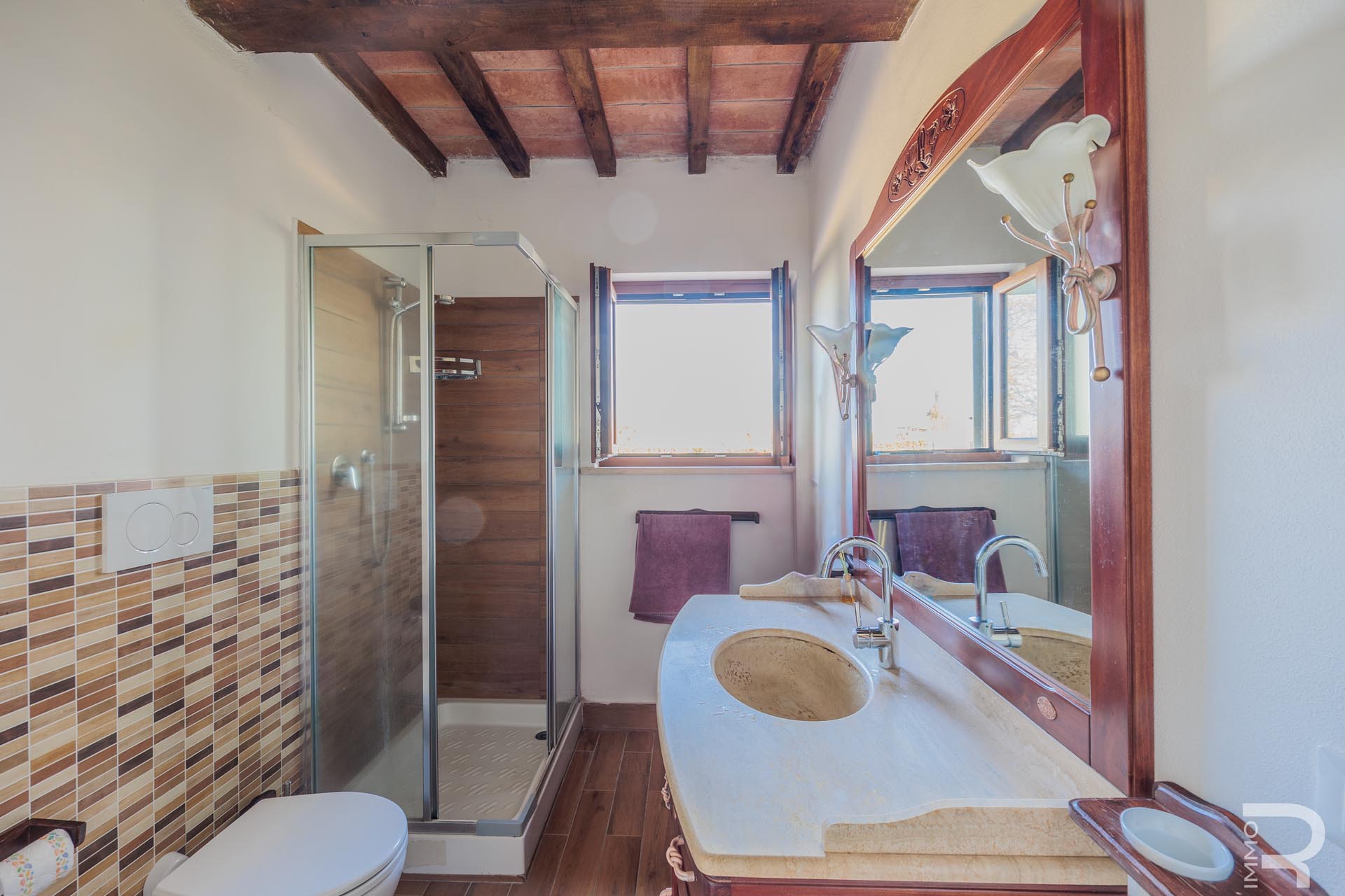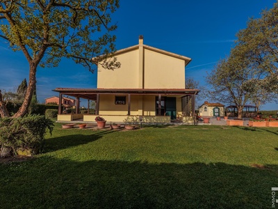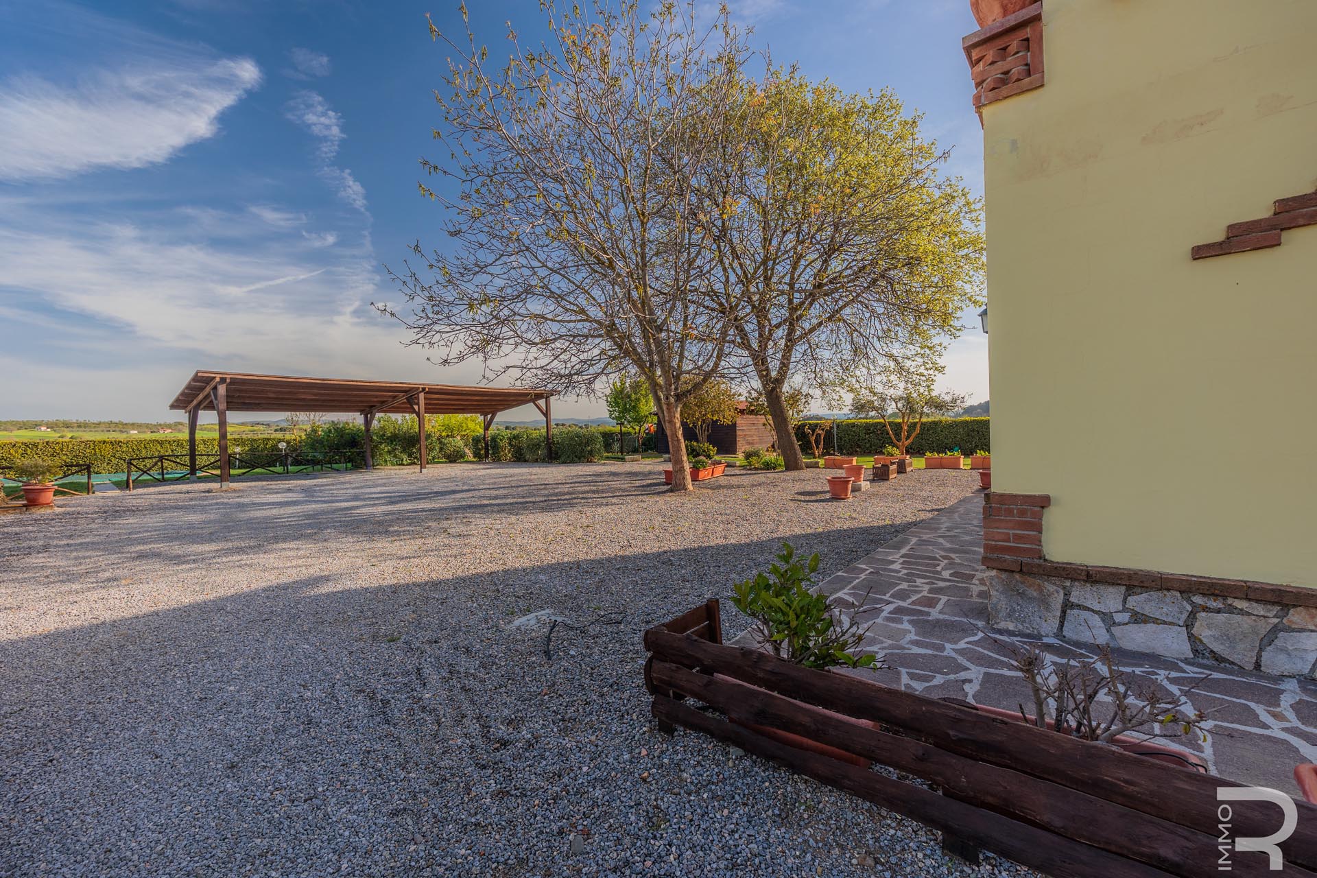 R05237MAAG - This dreamlike property, a small agriturismo with two apartments and four farm buildings, is presented in an extremely attractive condition. Having been lovingly renovated in 2010, it now offers the perfect blend of rusticity and modern comfort. The house is surrounded by a well-kept, spacious garden of around 2,500 square meters, which impresses not only with its size but also with its richness. The swimming pool, which blends beautifully into the garden, invites you to enjoy a refreshing dip in the warm summer months, while the surrounding large terrace areas are ideal for relaxing, sunbathing or barbecuing with friends. An automatic garden irrigation system ensures that the garden remains fresh and green at all times, while atmospheric garden lighting showcases the beauty of the grounds at night. The property also has ample parking space, which is ideal for both personal use and for guests.