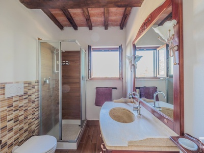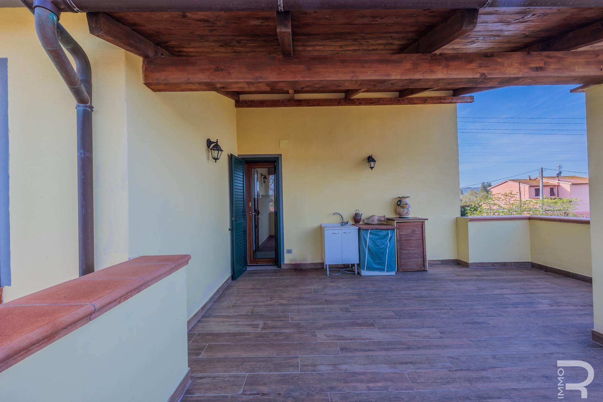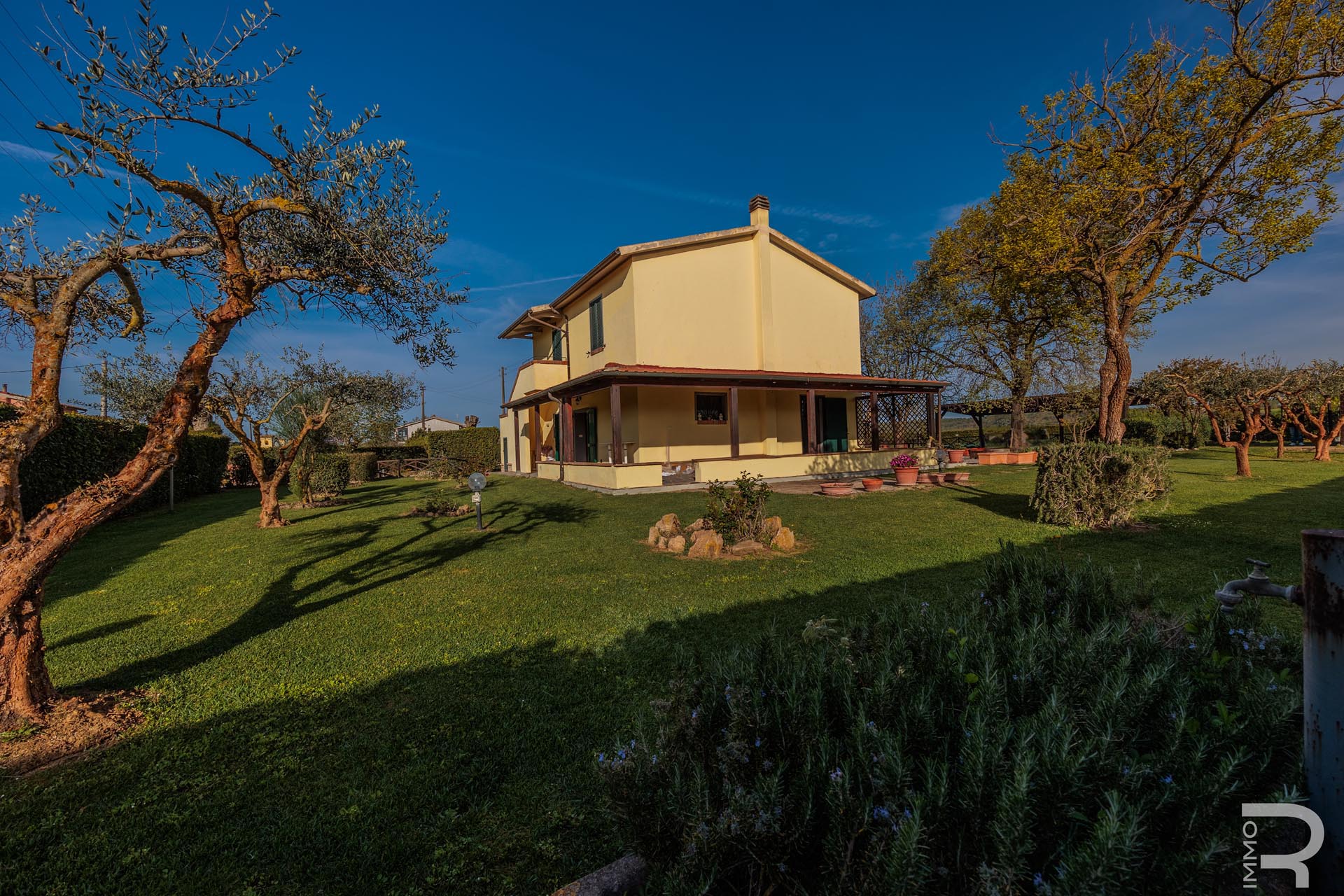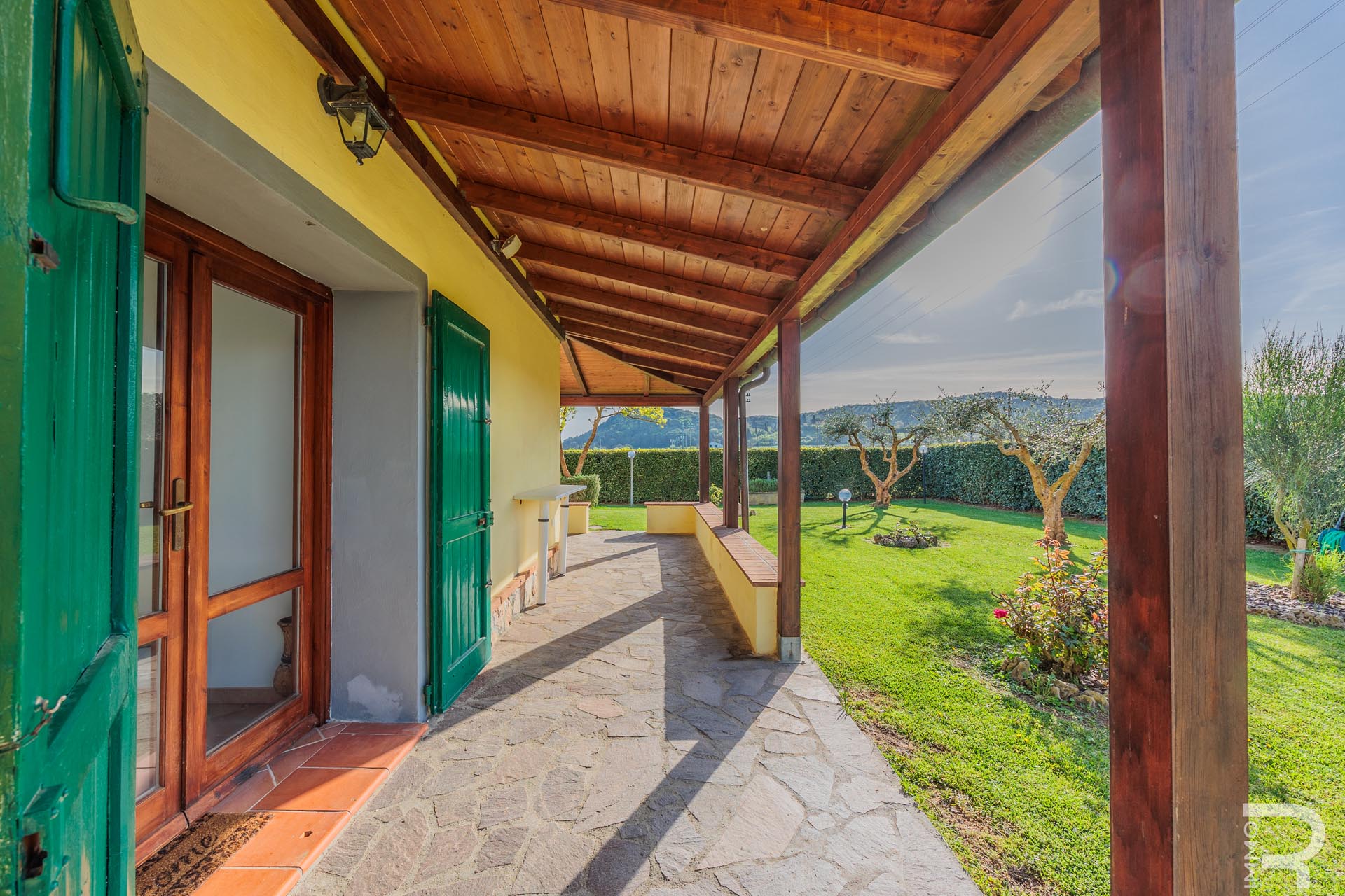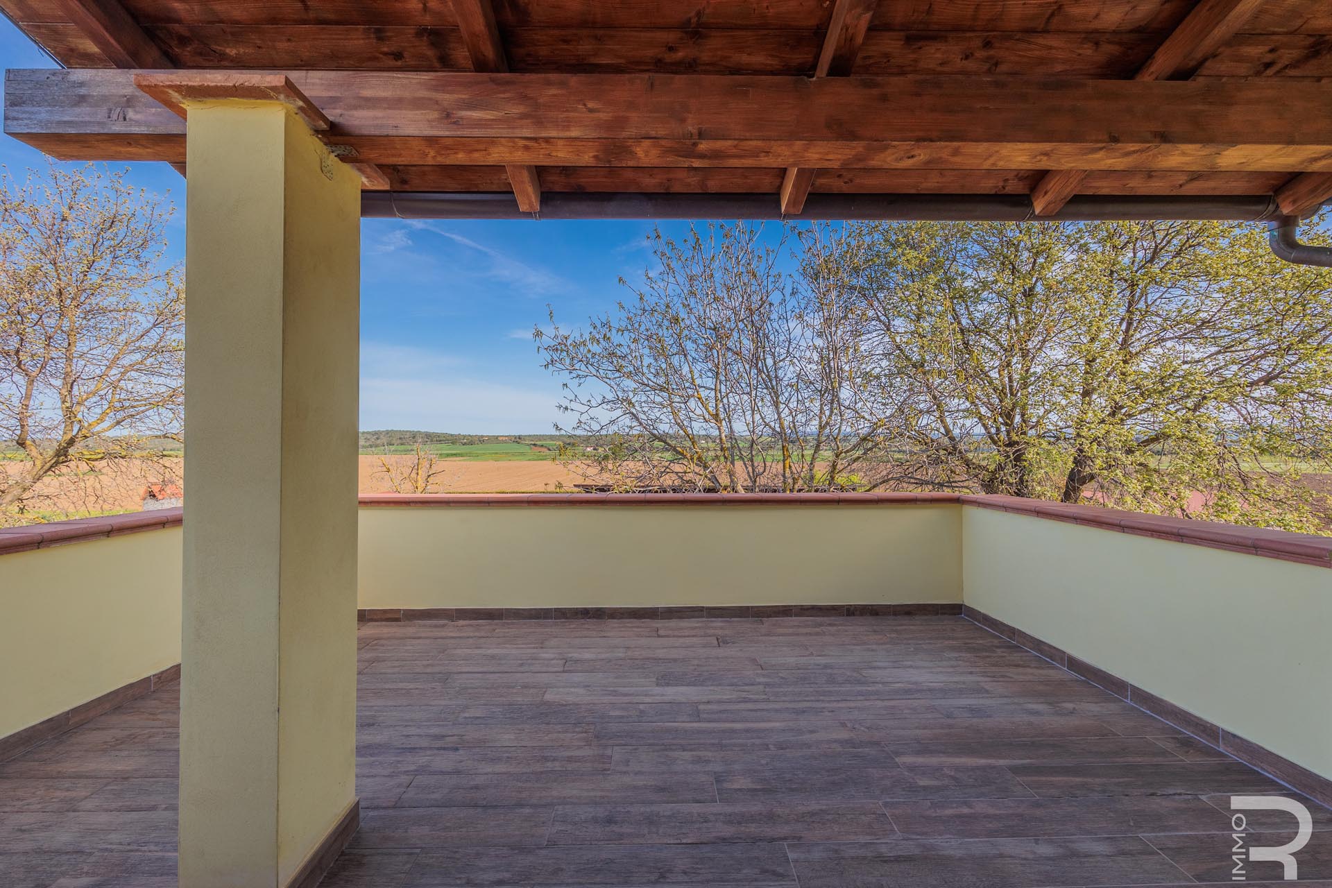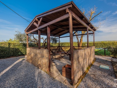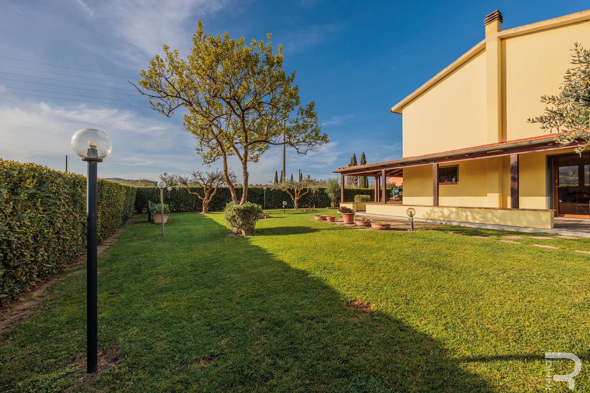 R05237MAAG - This dreamlike property, a small agriturismo with two apartments and four farm buildings, is presented in an extremely attractive condition. Having been lovingly renovated in 2010, it now offers the perfect blend of rusticity and modern comfort. The house is surrounded by a well-kept, spacious garden of around 2,500 square meters, which impresses not only with its size but also with its richness. The swimming pool, which blends beautifully into the garden, invites you to enjoy a refreshing dip in the warm summer months, while the surrounding large terrace areas are ideal for relaxing, sunbathing or barbecuing with friends. An automatic garden irrigation system ensures that the garden remains fresh and green at all times, while atmospheric garden lighting showcases the beauty of the grounds at night. The property also has ample parking space, which is ideal for both personal use and for guests.