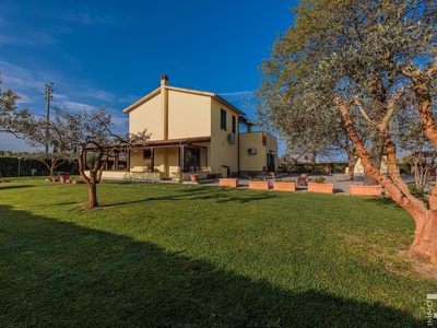 The total property extends over an impressive five hectares, one hectare of which is a magnificent olive grove that promises a rich harvest every year. The rest of the land is used as farmland and offers enormous potential for various agricultural projects. The house itself is partially furnished and offers a pleasant indoor climate all year round thanks to two wood-burning stoves and air conditioning. The location of the property leaves nothing to be desired: it is situated in a quiet area, away from the hustle and bustle of the city, but at the same time only 10 minutes from the beach. Here you can enjoy the peace and serenity of nature to the full, while at the same time appreciating the proximity to beach life.