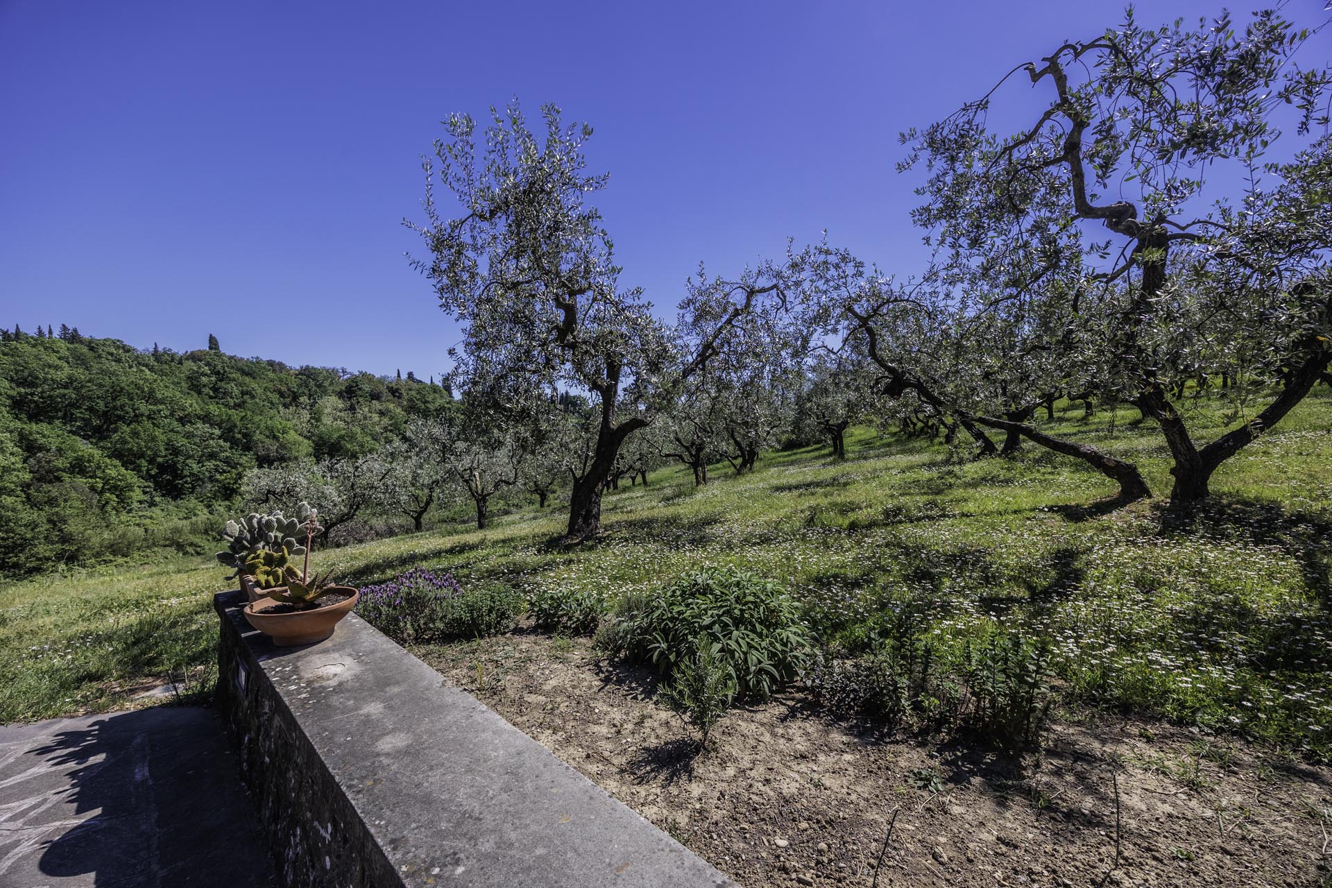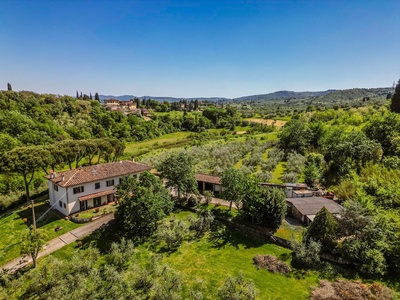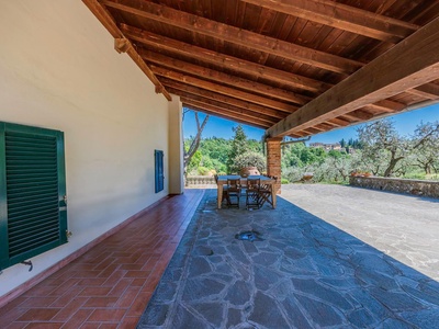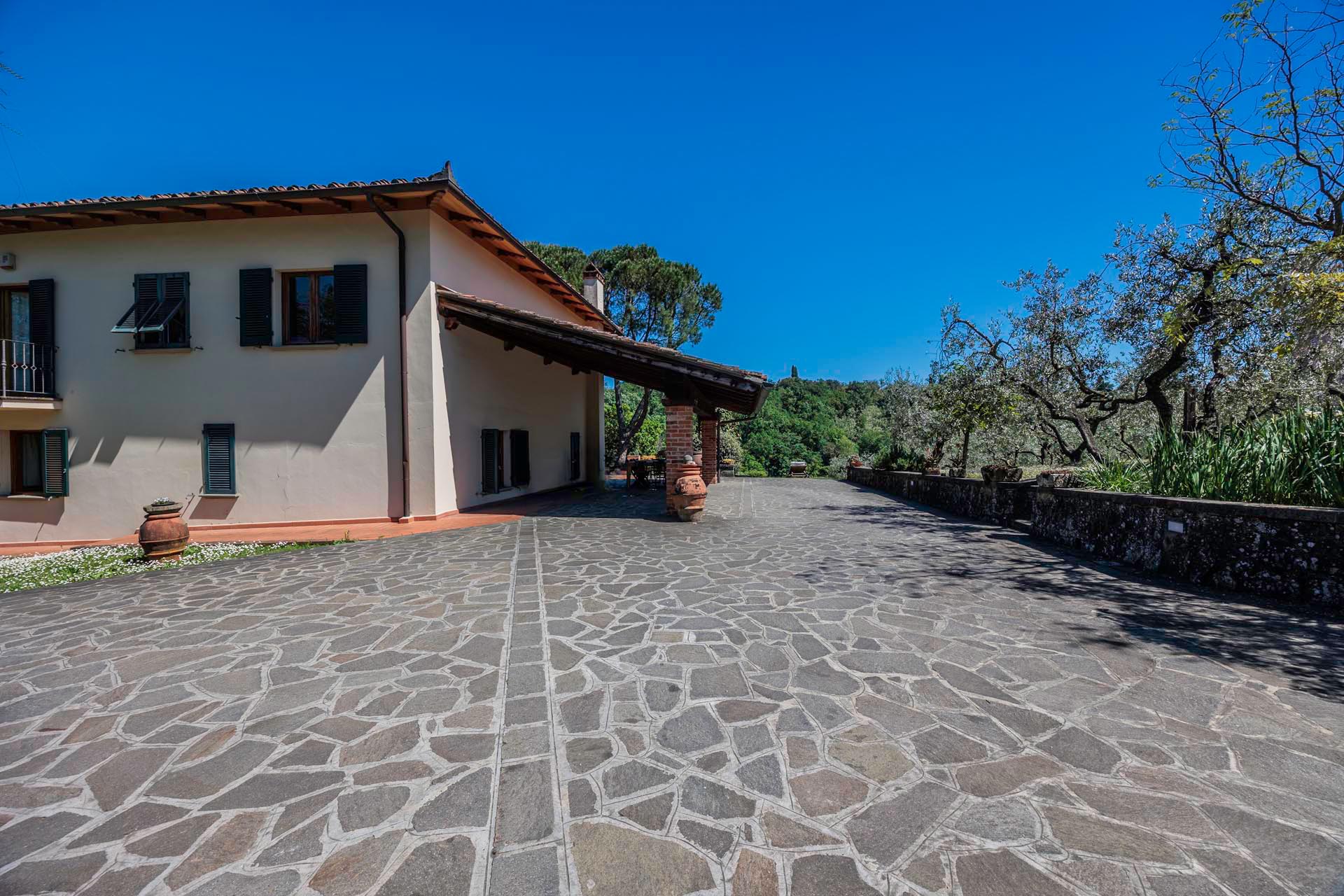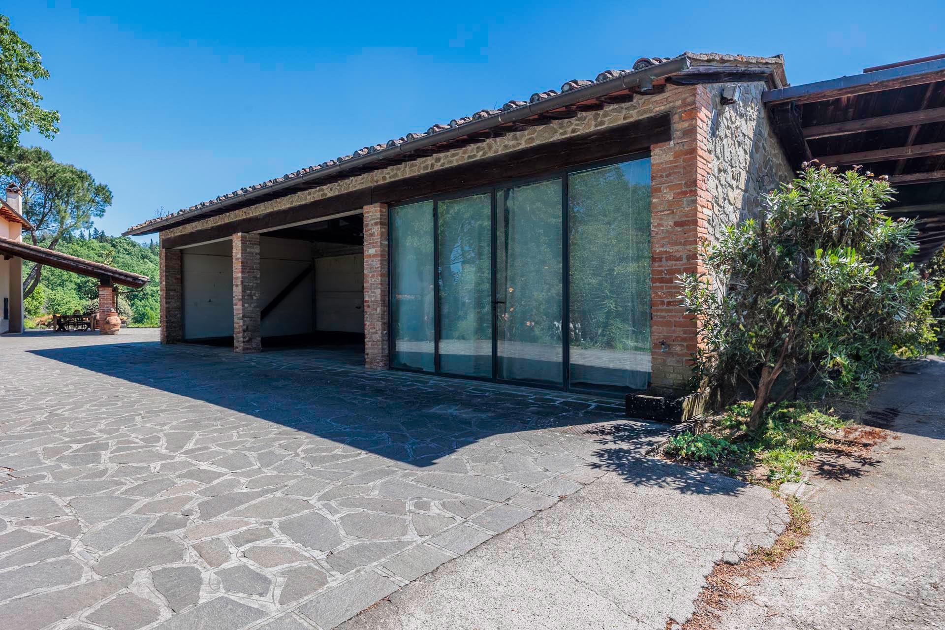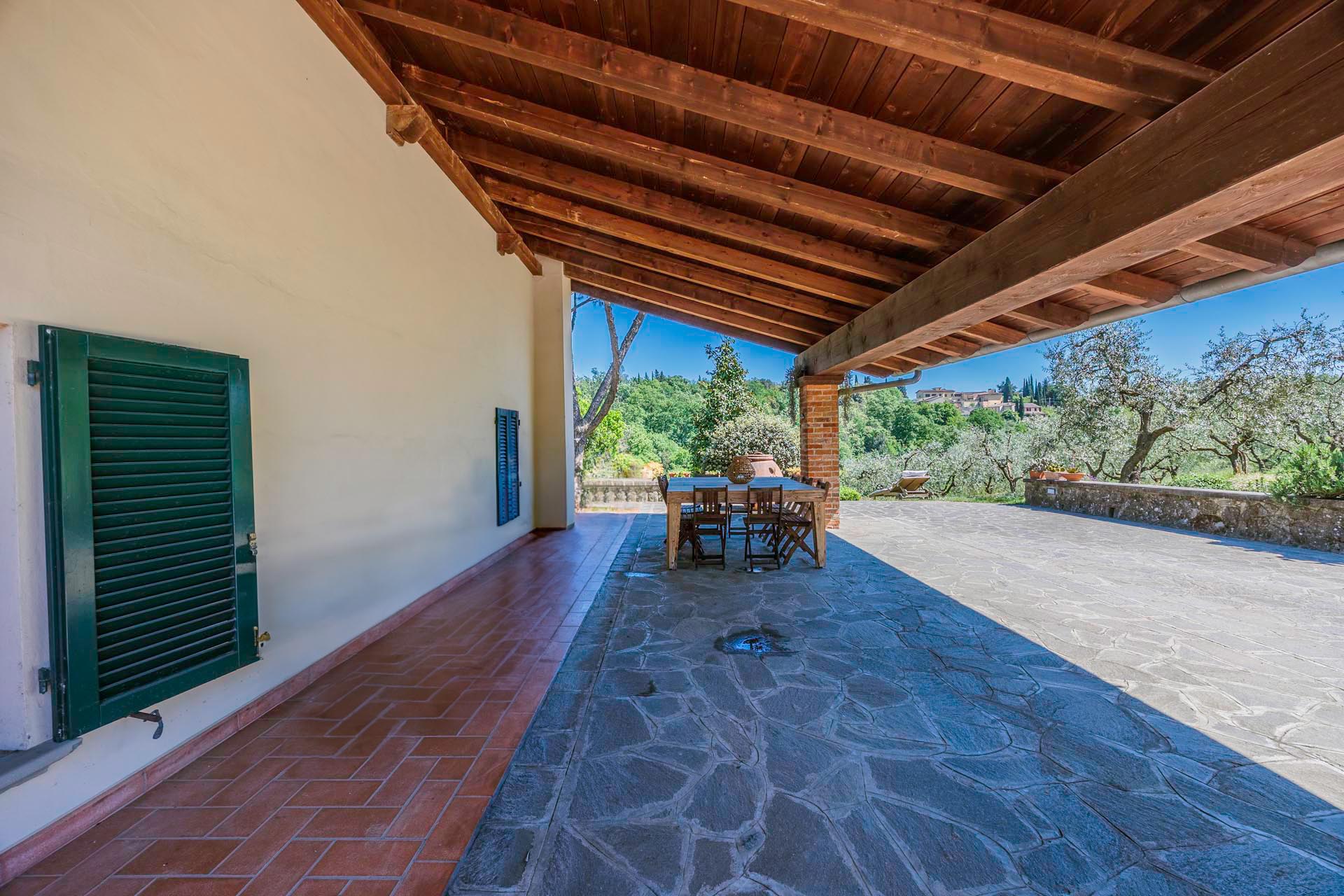 The property was renovated in 1996 using high-quality materials and captivates with its authentic Tuscan style. Inside, terracotta floors, exposed wooden beams, and elegant “Pietra Serena” stone cladding create a stylish yet warm ambiance that underscores the home’s character.