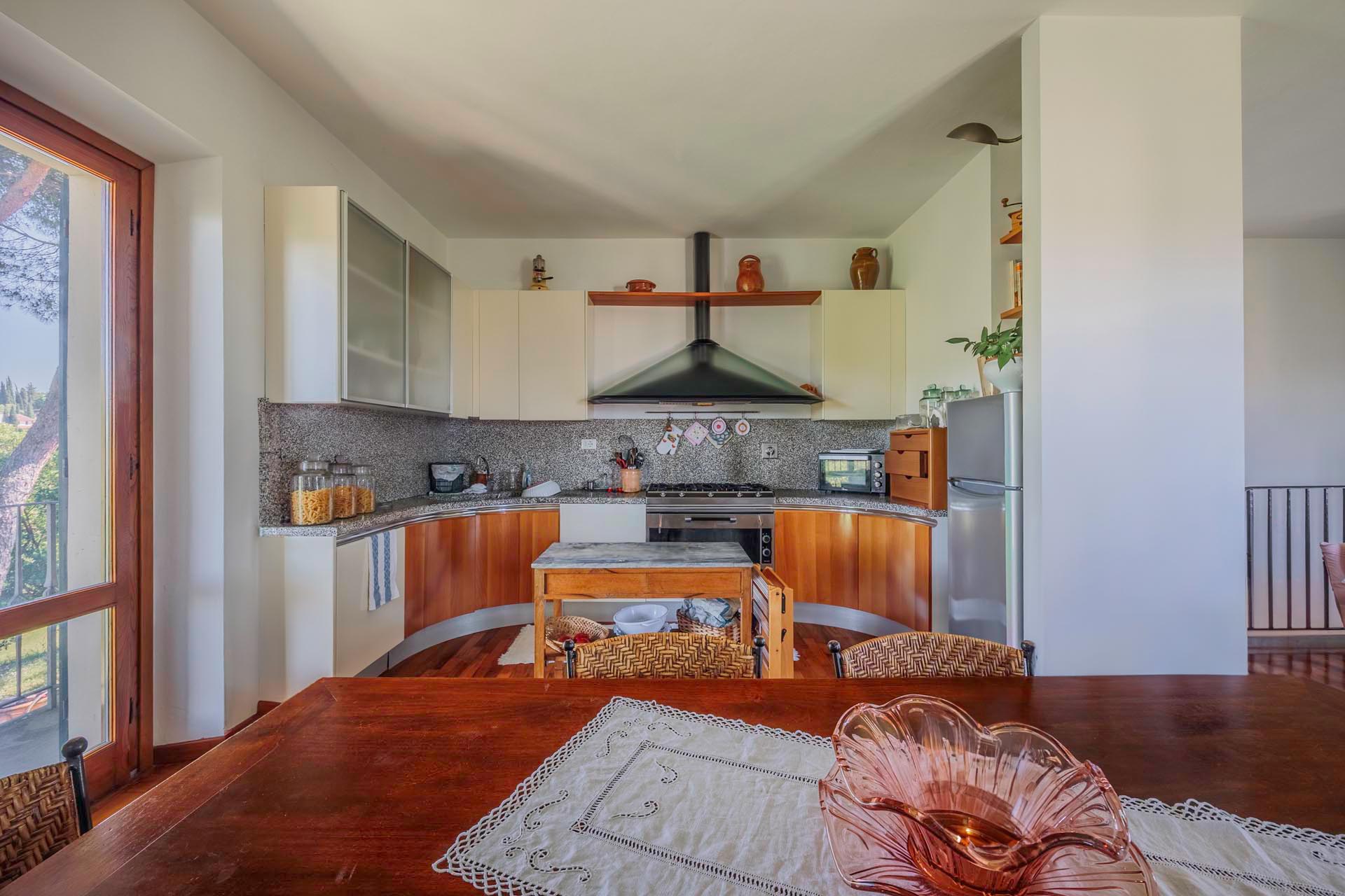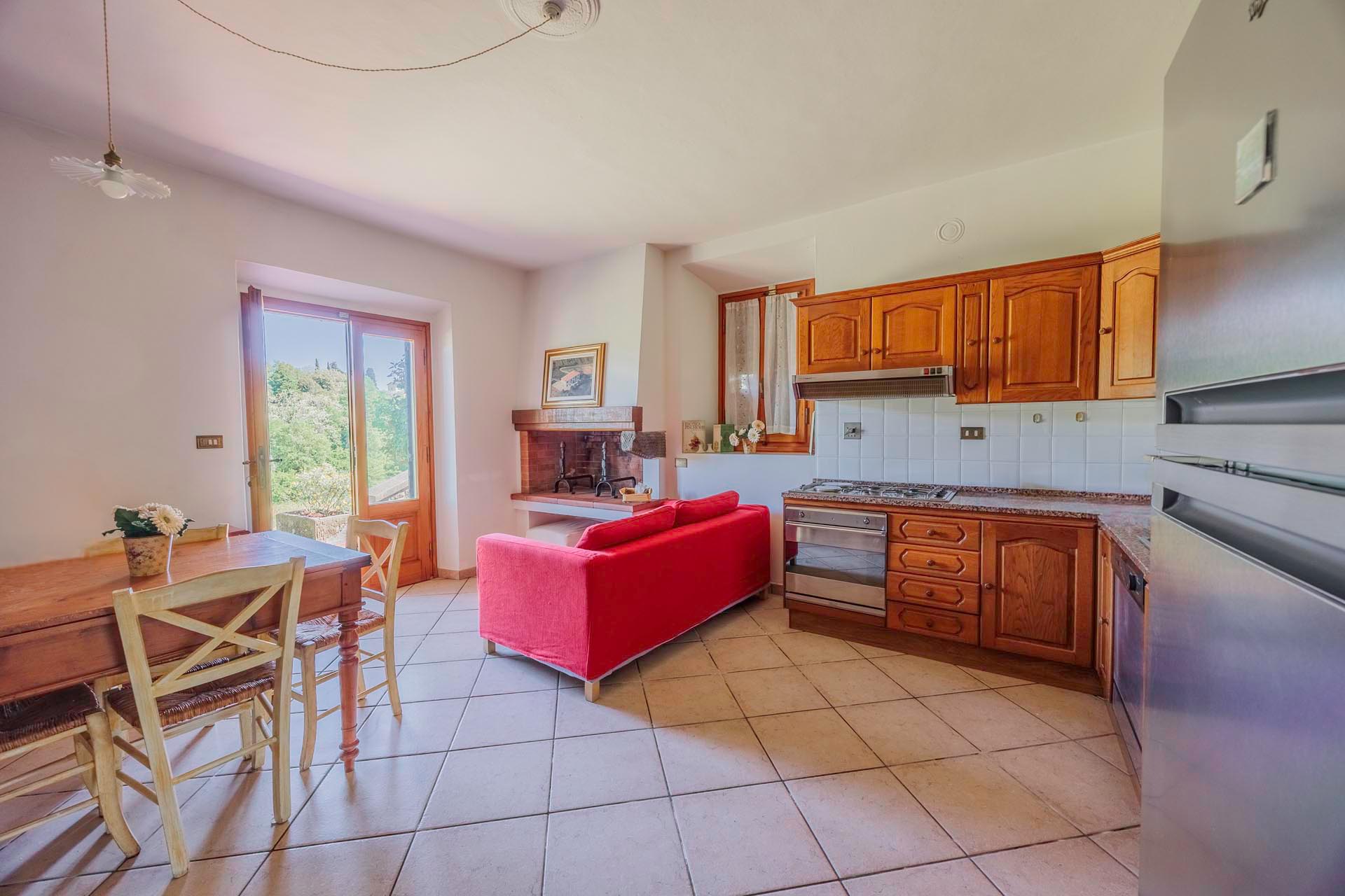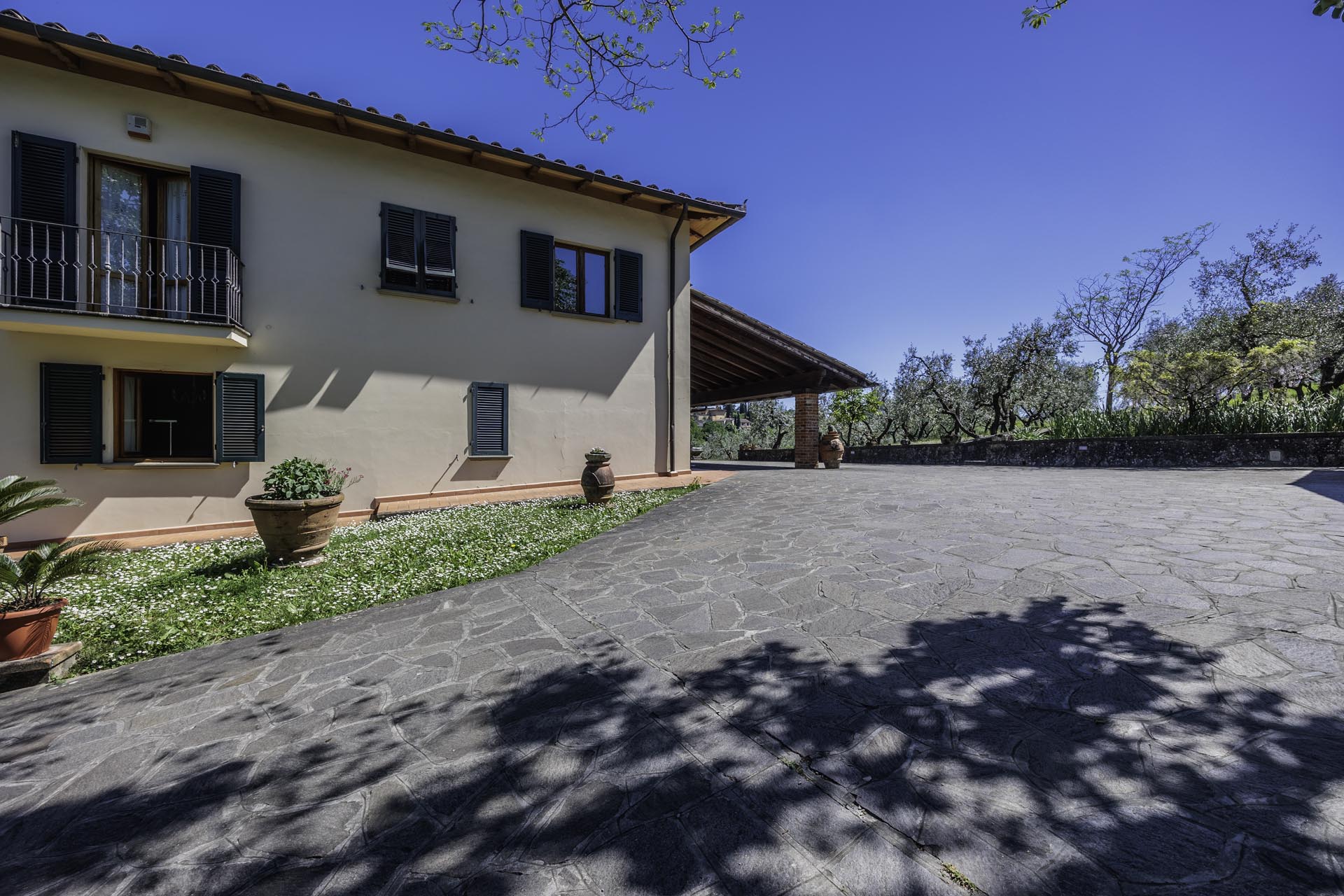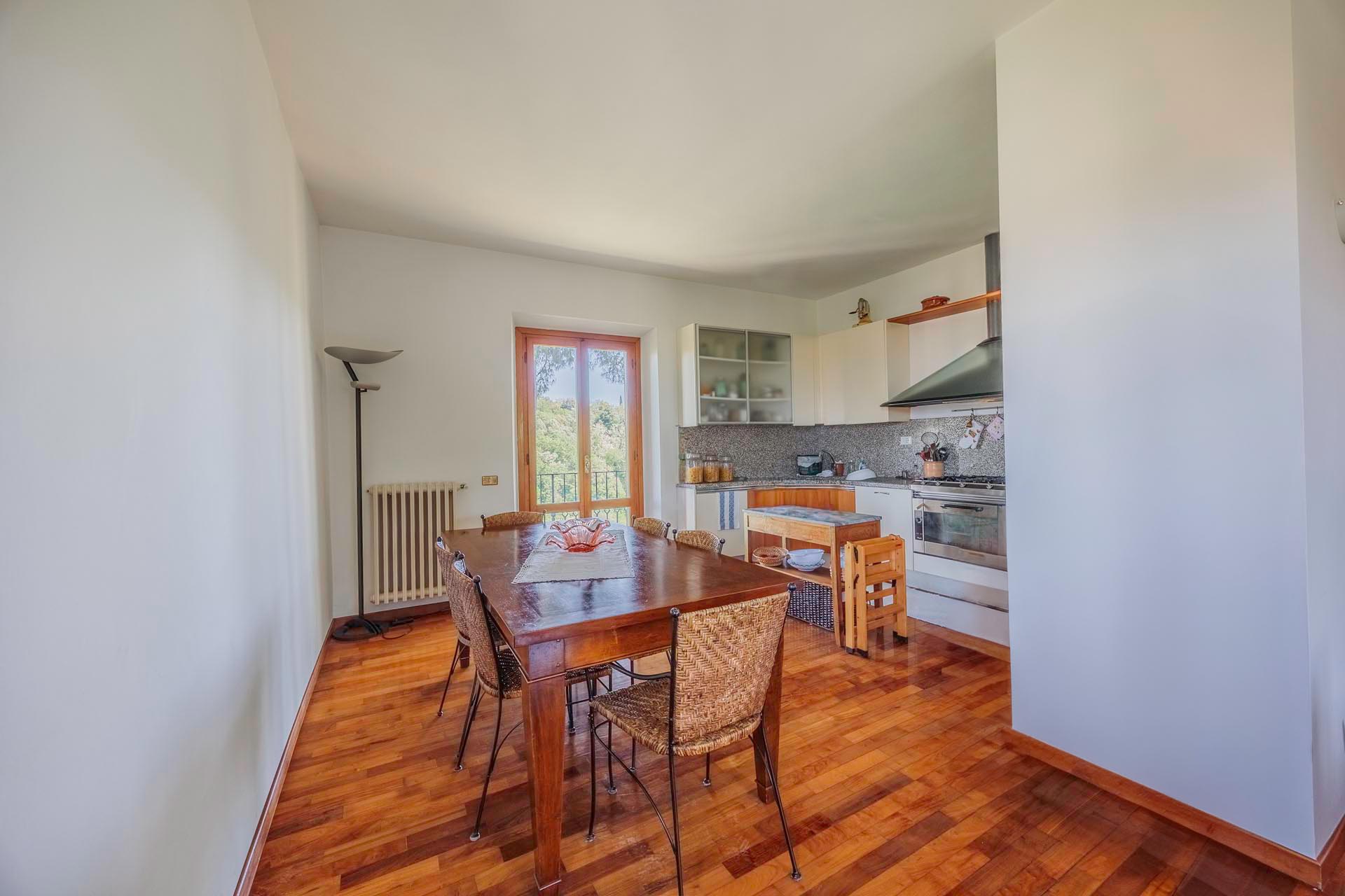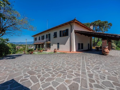 The property was renovated in 1996 using high-quality materials and captivates with its authentic Tuscan style. Inside, terracotta floors, exposed wooden beams, and elegant “Pietra Serena” stone cladding create a stylish yet warm ambiance that underscores the home’s character.