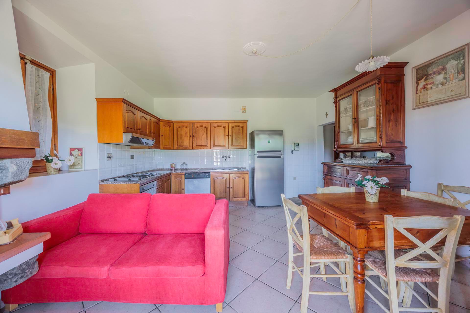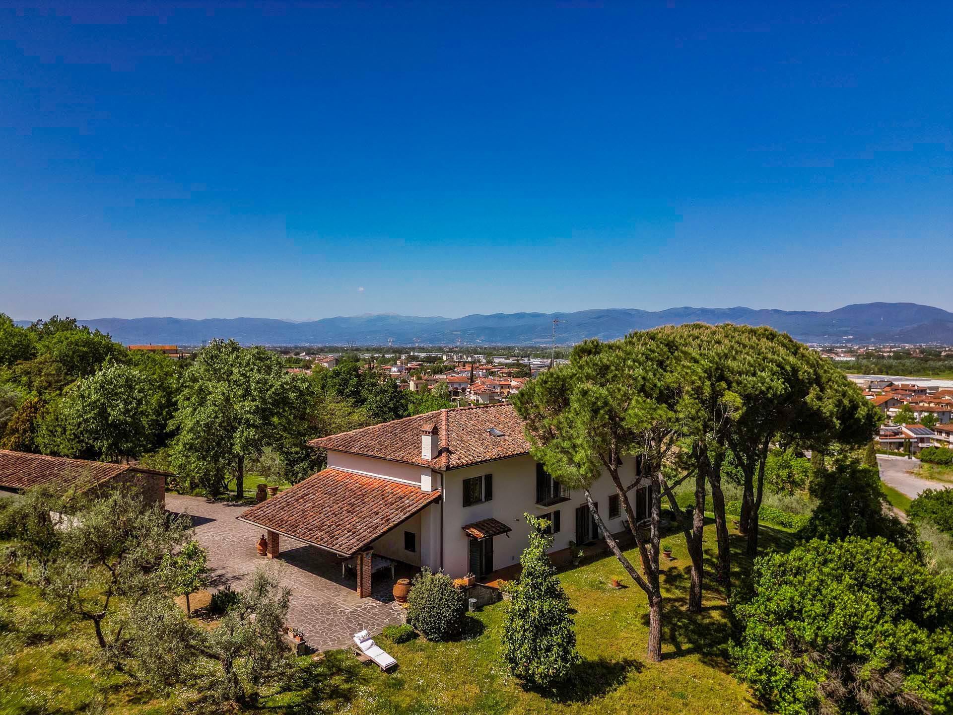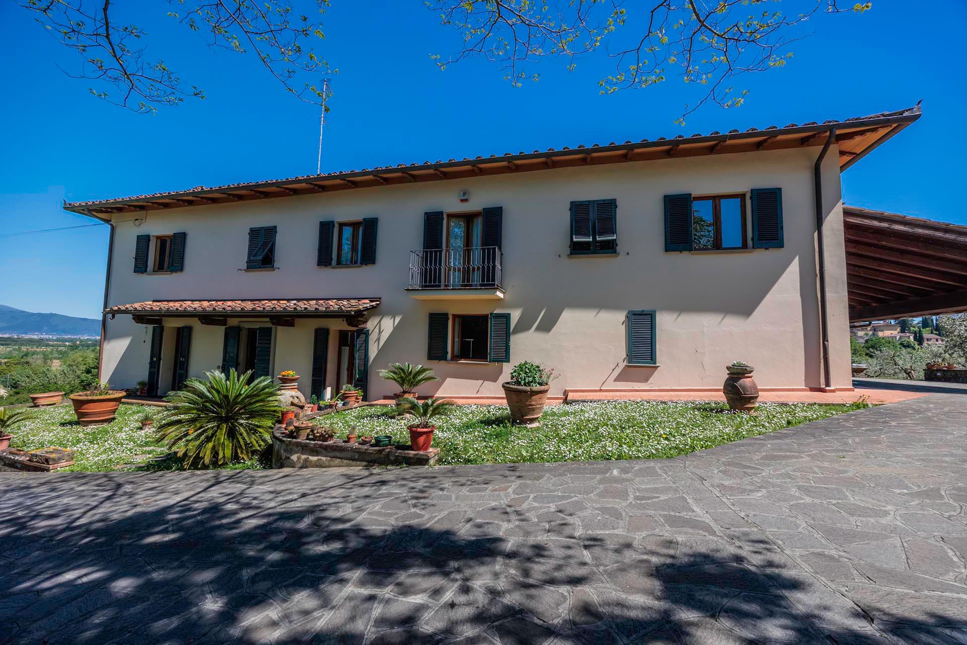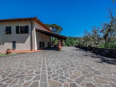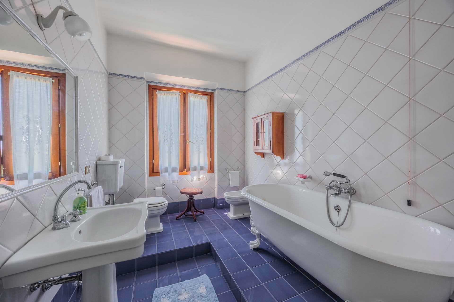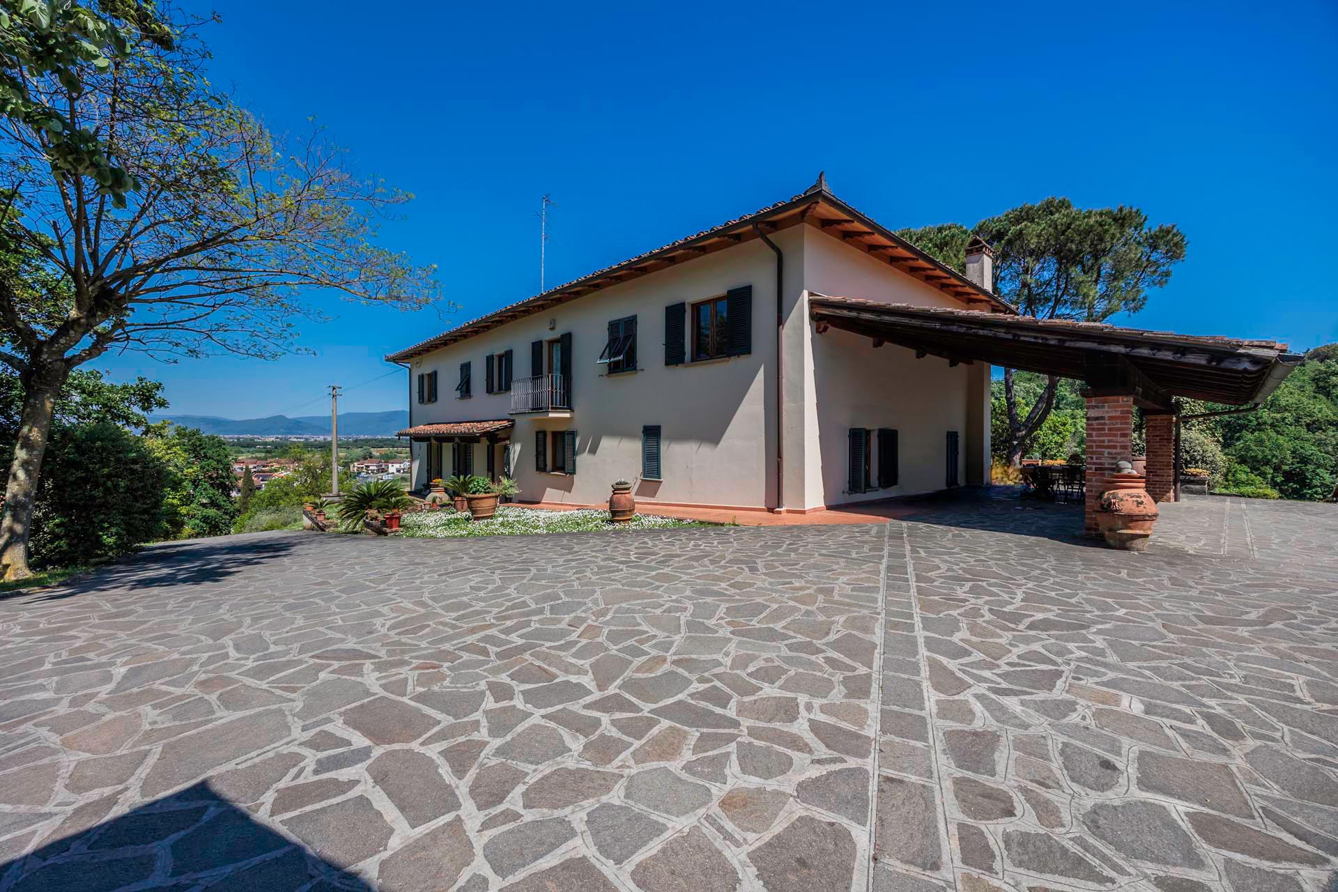 The property was renovated in 1996 using high-quality materials and captivates with its authentic Tuscan style. Inside, terracotta floors, exposed wooden beams, and elegant “Pietra Serena” stone cladding create a stylish yet warm ambiance that underscores the home’s character.