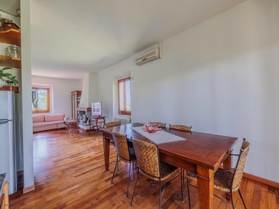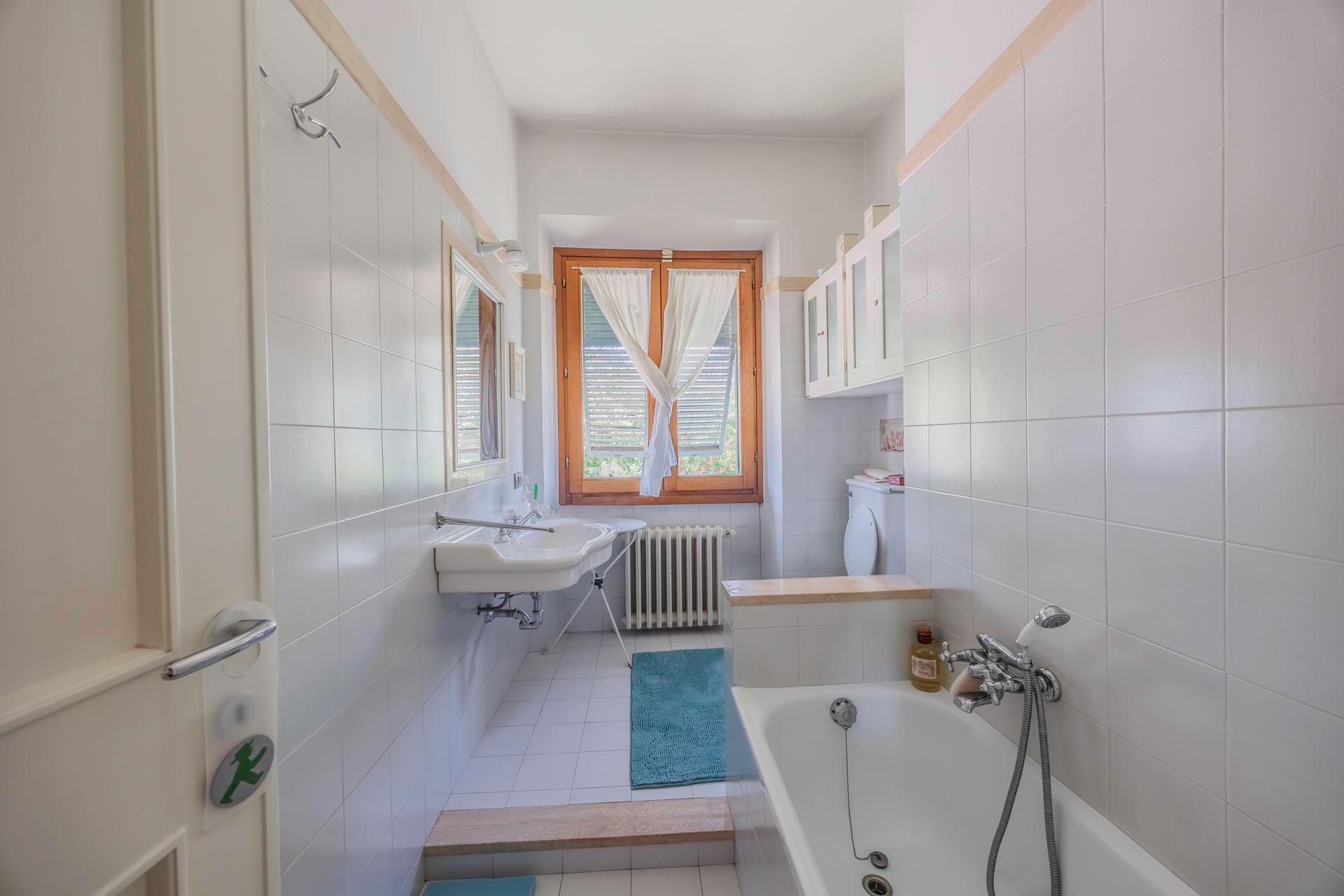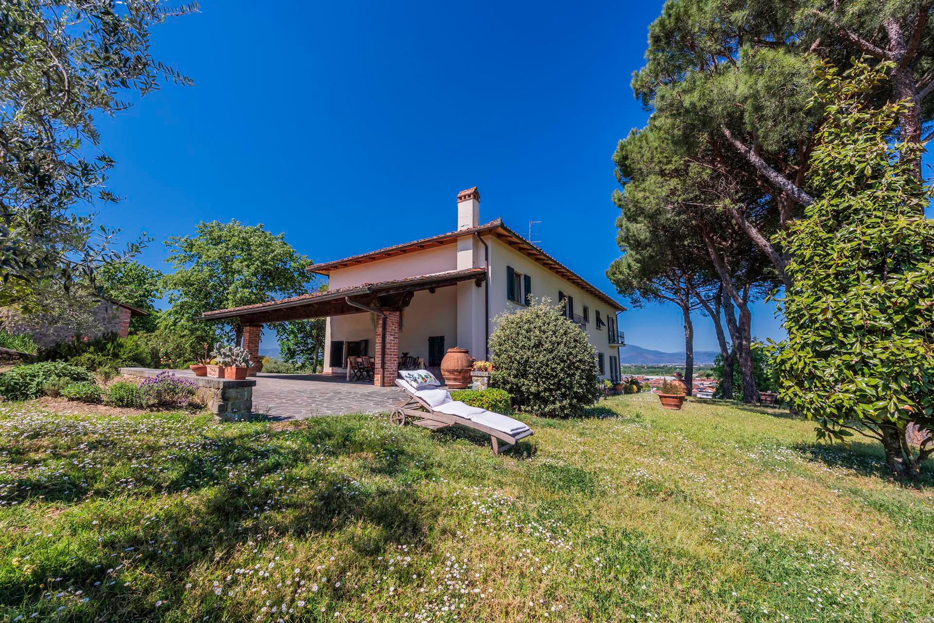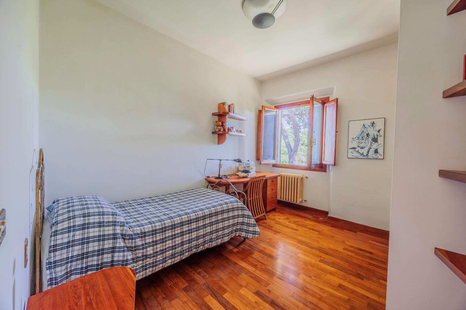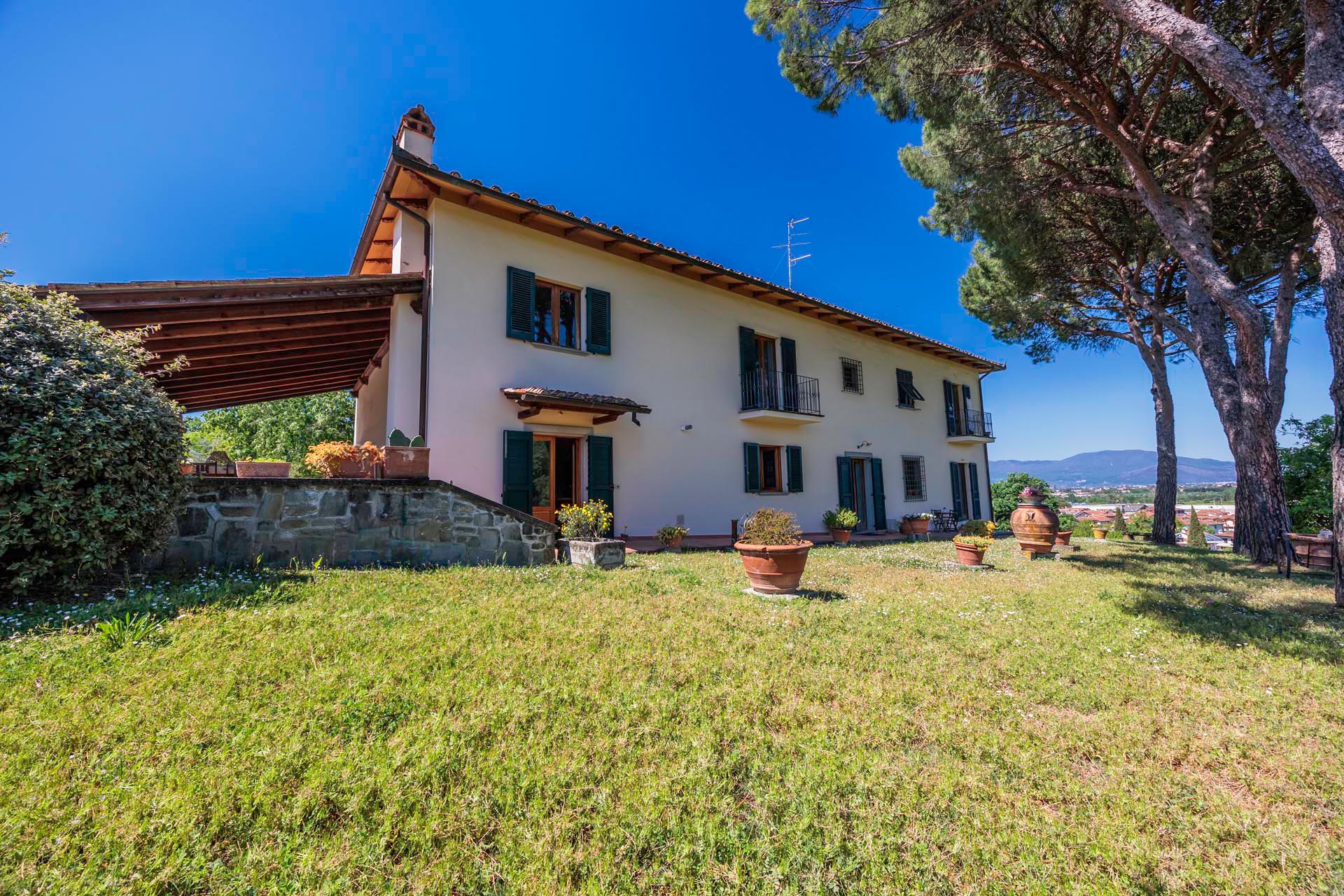 The property was renovated in 1996 using high-quality materials and captivates with its authentic Tuscan style. Inside, terracotta floors, exposed wooden beams, and elegant “Pietra Serena” stone cladding create a stylish yet warm ambiance that underscores the home’s character.