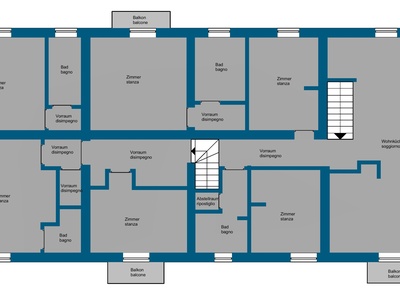 A highlight is the spacious outdoor area: an approximately 80 m² veranda invites you to linger outdoors, while an equally large loggia, which can also be used as a garage, offers additional space and comfort. The property is complemented by another approximately 80 m² wooden outbuilding, which requires renovation and thus opens up additional development potential.