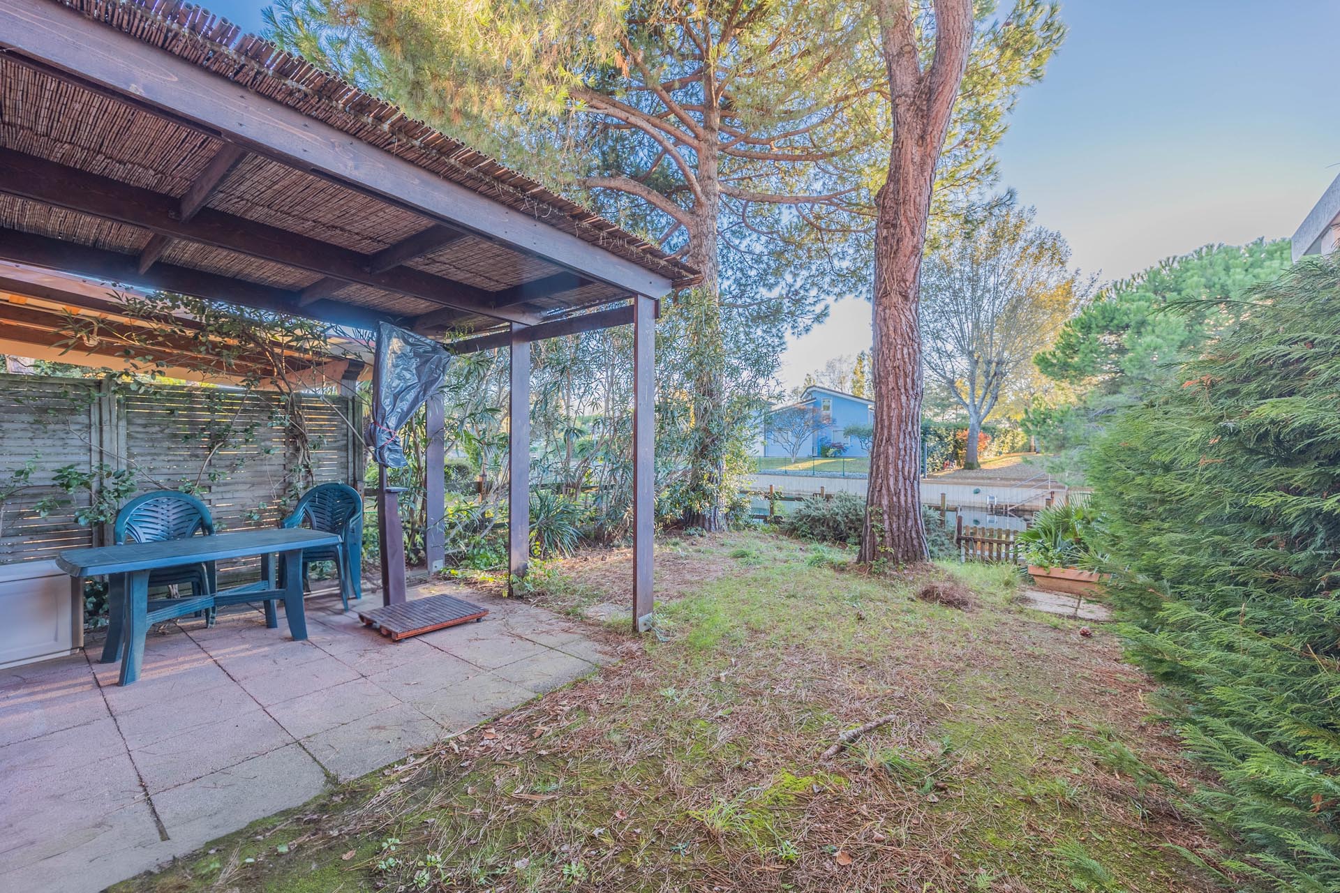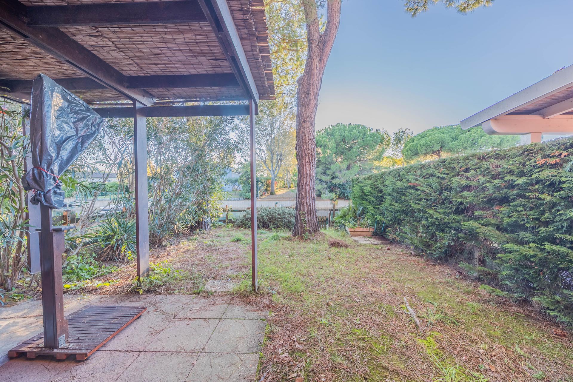 L'appartamento dispone di un giardino privato con terrazza coperta che invita a rilassarsi all'aperto, perfetto per cene piacevoli in estate, colazioni al sole del mattino o semplicemente per godersi la vista sul verde. Qui comfort e privacy si uniscono per creare un rifugio ideale.