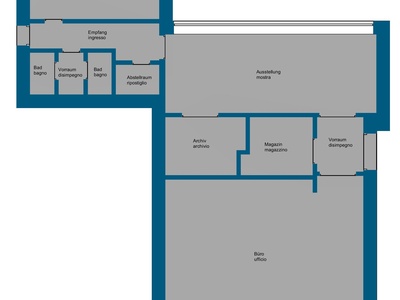 L'unità si trova al 2° piano dell'edificio e convince per la sua ampia superficie di circa 250 m², che può essere adattata in modo flessibile alle diverse esigenze aziendali. Grazie all'esposizione a est e a ovest, l'ufficio è inondato di luce naturale per tutto il giorno e crea un ambiente di lavoro piacevole e produttivo.