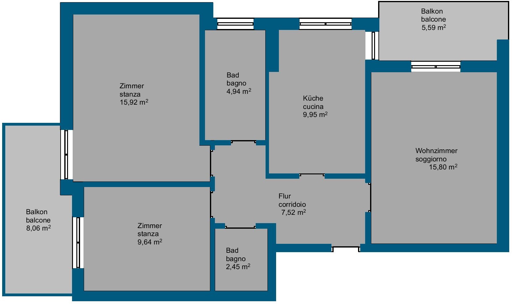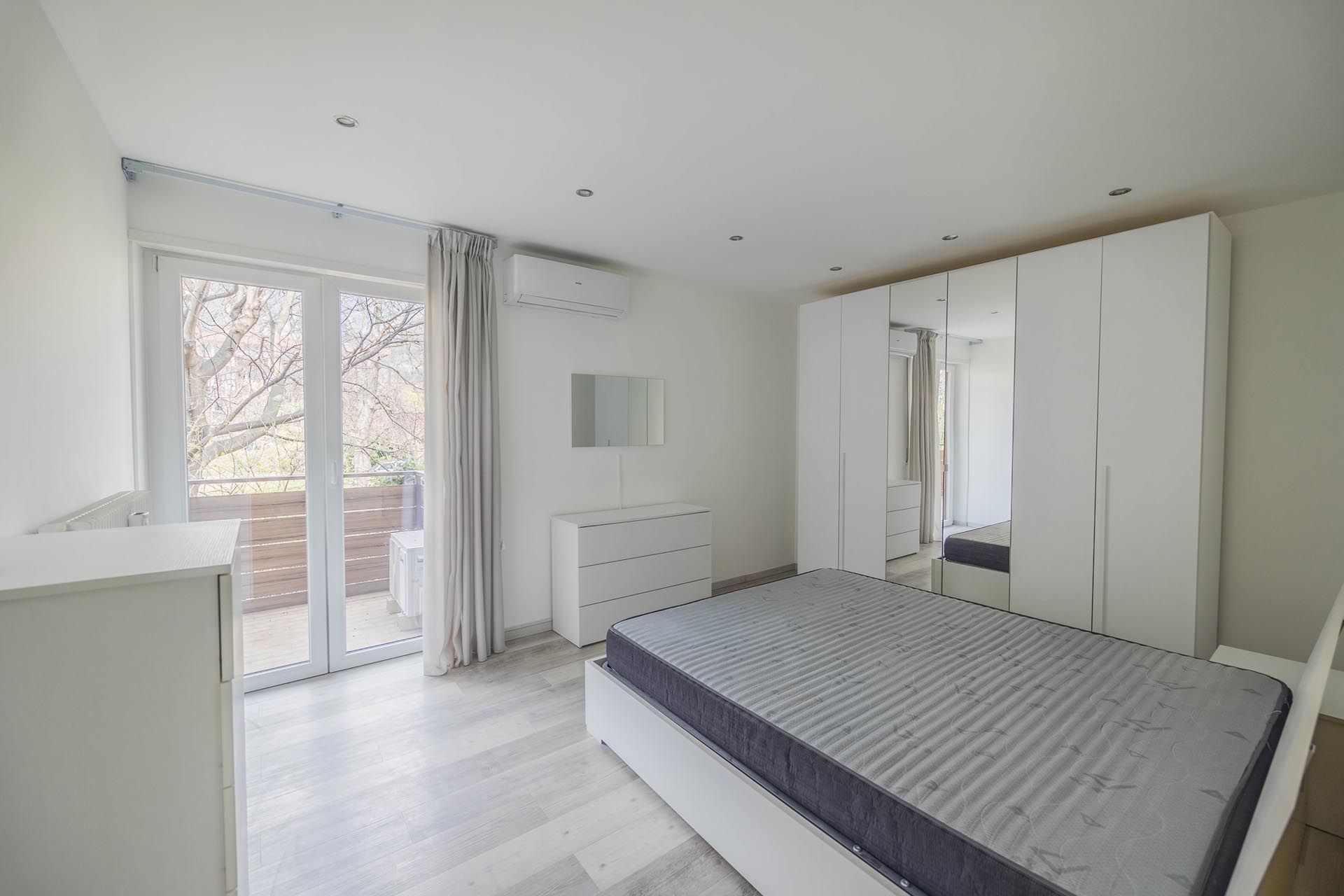 L’appartamento è stato completamente ristrutturato e ha due camere da letto, due bagni, una cucina separata, due balconi oltre ad un comodo soggiorno. Recentemente è stato rinnovato anche il riscaldamento autonomo a gas.