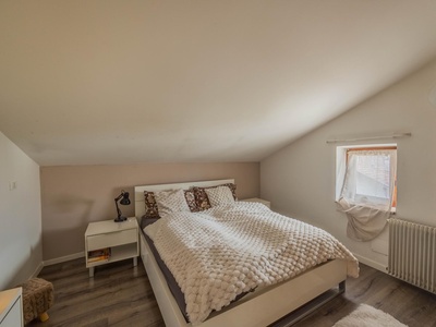 Una scala interna conduce al secondo e ultimo piano, che costituisce la zona notte. Qui ci sono due ampie camere da letto e un bagno: una disposizione ideale per coppie, famiglie o persone che hanno bisogno di spazio aggiuntivo per ospiti o per l'home office.