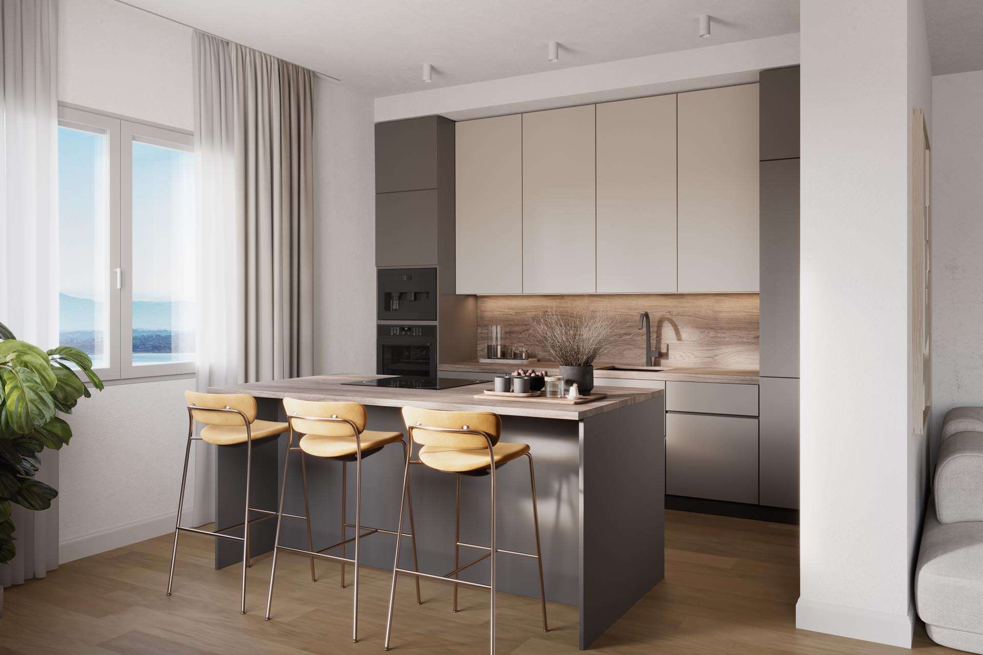 I futuri appartamenti convincono per le loro generose metrature, i materiali di alta qualità e un design che valorizza al meglio la luce e lo spazio. Ampie terrazze e balconi offrono ulteriore spazio abitativo all'aperto e una vista meravigliosa. Un giardino comune accuratamente progettato crea un'oasi verde, ideale per rilassarsi.
