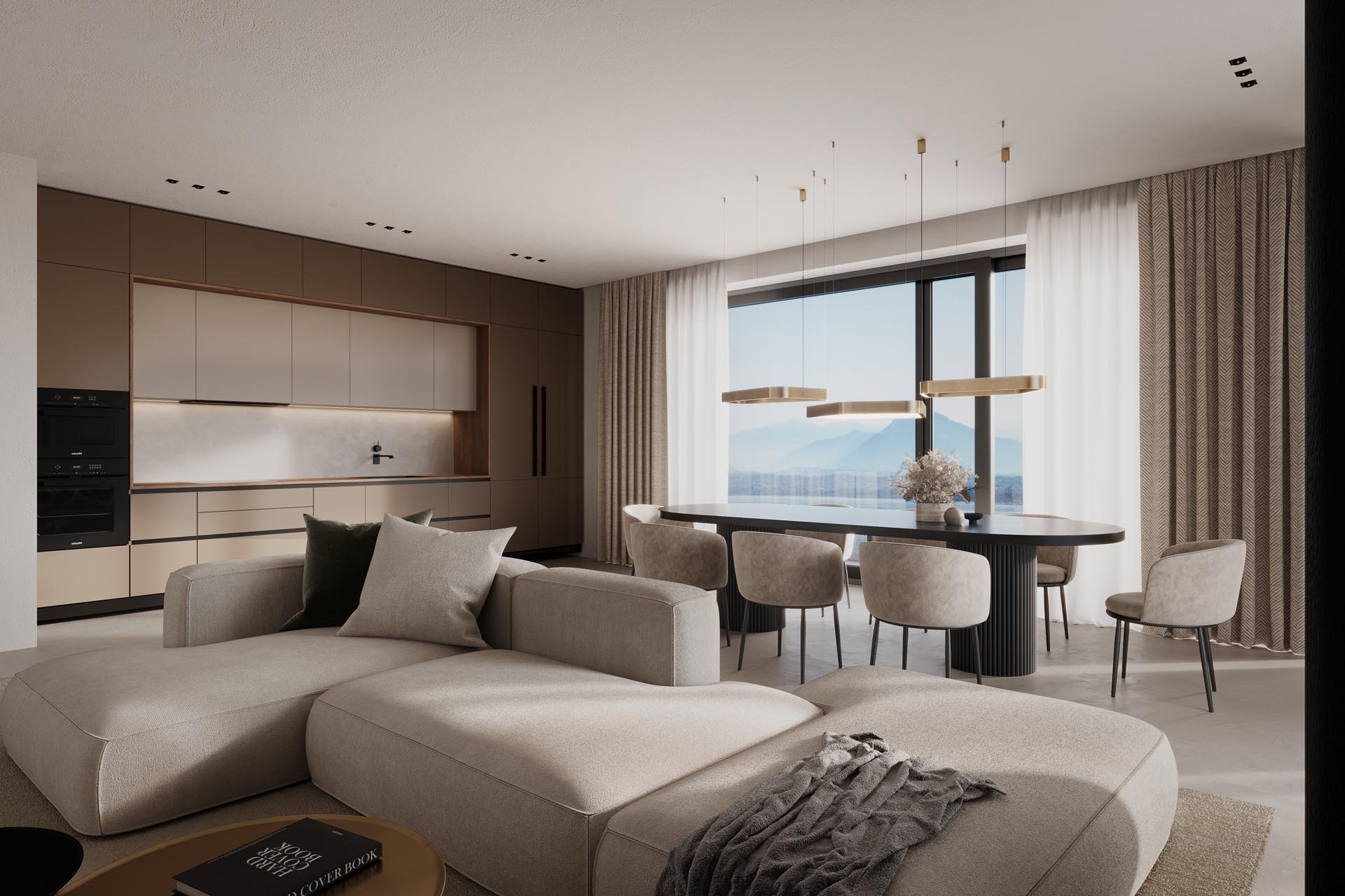 I futuri appartamenti convincono per le loro generose metrature, i materiali di alta qualità e un design che valorizza al meglio la luce e lo spazio. Ampie terrazze e balconi offrono ulteriore spazio abitativo all'aperto e una vista meravigliosa. Un giardino comune accuratamente progettato crea un'oasi verde, ideale per rilassarsi.