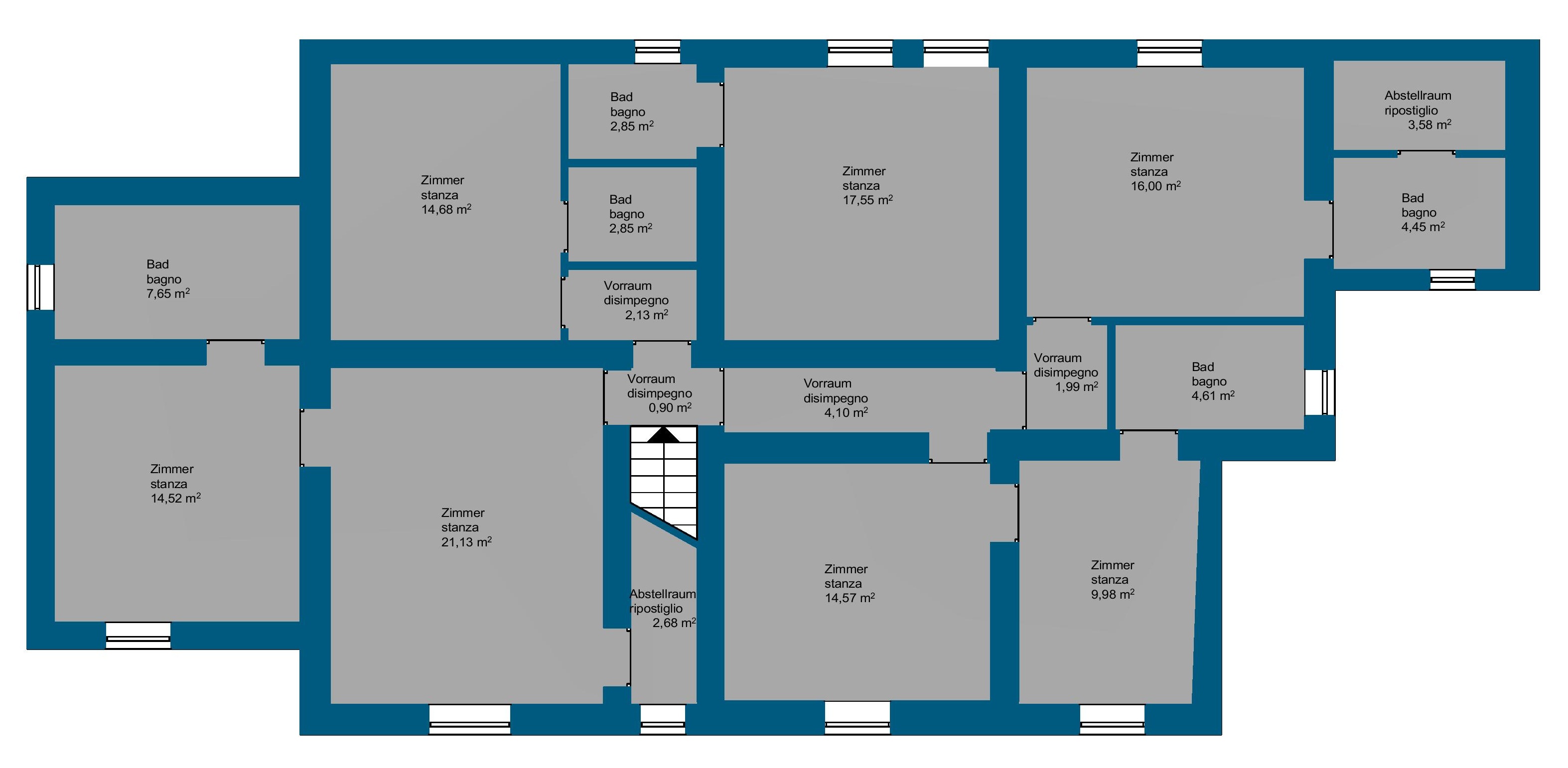 Nella parte superiore della casa sono disponibili cinque camere accoglienti, ideali sia per gli ospiti di un agriturismo che per uso privato. Il rustico offre quindi numerose possibilità di utilizzo: da affascinante locanda di campagna a agriturismo a tutti gli effetti, fino alla trasformazione in esclusiva villa privata. Trattandosi di una proprietà rurale, in caso di conversione in puro spazio abitativo occorre tuttavia tenere conto di costi aggiuntivi.