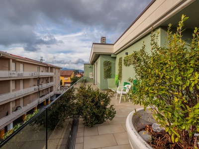 In una delle zone più ambite, a soli 500 metri dalle mura storiche di Lucca, si trova questo straordinario attico costruito nel 2014. L'immobile colpisce per la sua architettura moderna, la costruzione di alta qualità e l'eccellente efficienza energetica di classe A2, ottenuta grazie a un impianto a pompa di calore per il riscaldamento e il raffreddamento e a un impianto fotovoltaico condominiale.