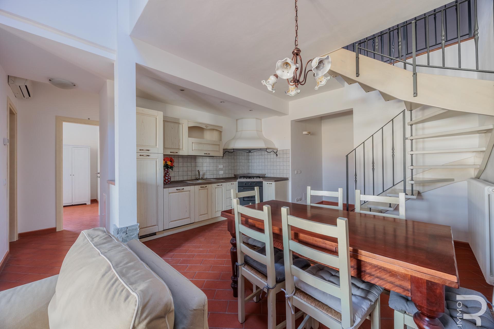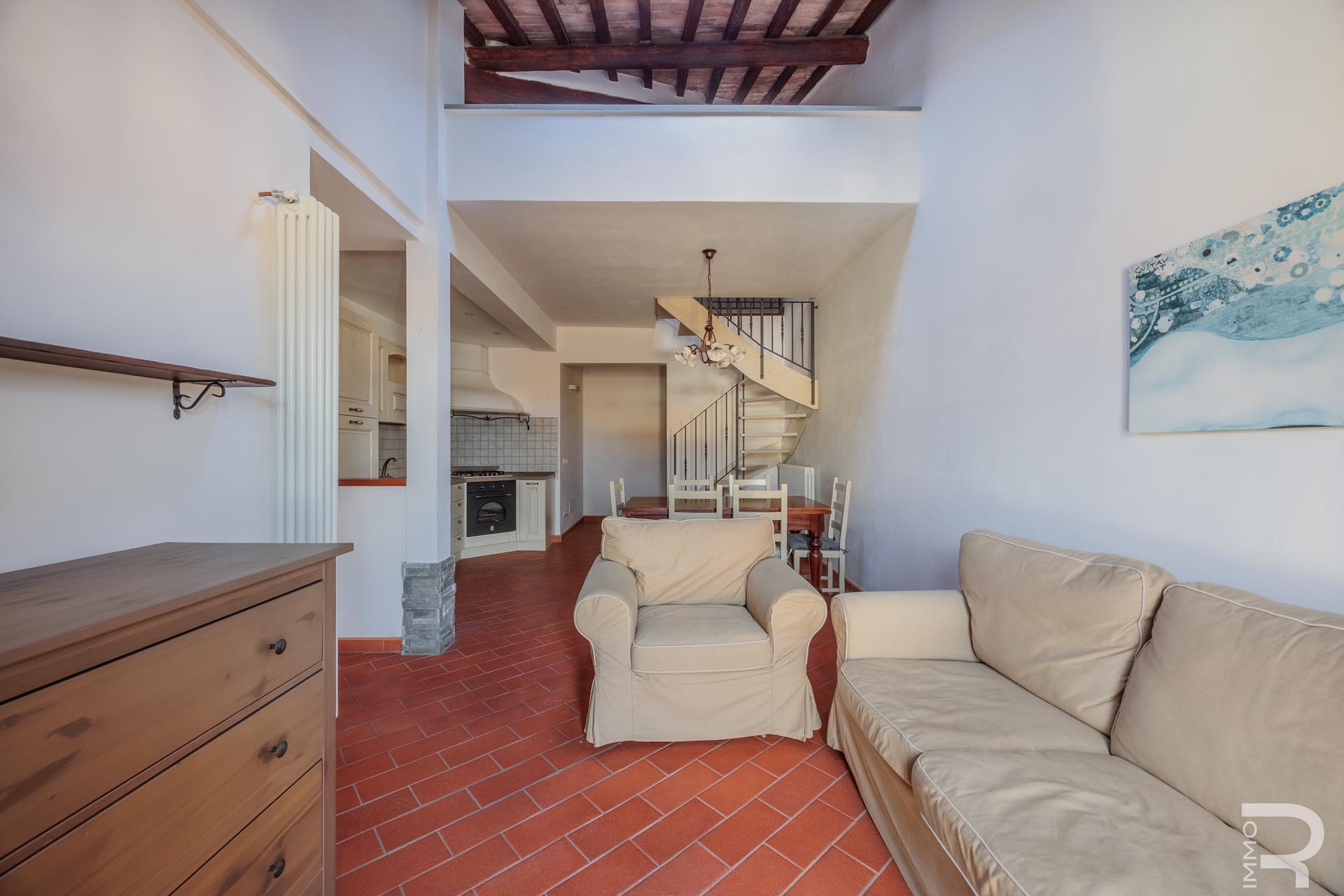 R06975GE3Z - Questo splendido appartamento si trova in posizione centrale a Greve in Chianti, proprio nel cuore di una delle regioni più famose e ambite della Toscana. L'immobile si estende sul primo e sul secondo piano e si trova all'ultimo piano dell'edificio, garantendo un elevato livello di privacy e una tranquilla atmosfera abitativa. Grazie a questa posizione, gli ambienti godono di una piacevole luminosità e di un'atmosfera affascinante che riflette il carattere tipico del Chianti.