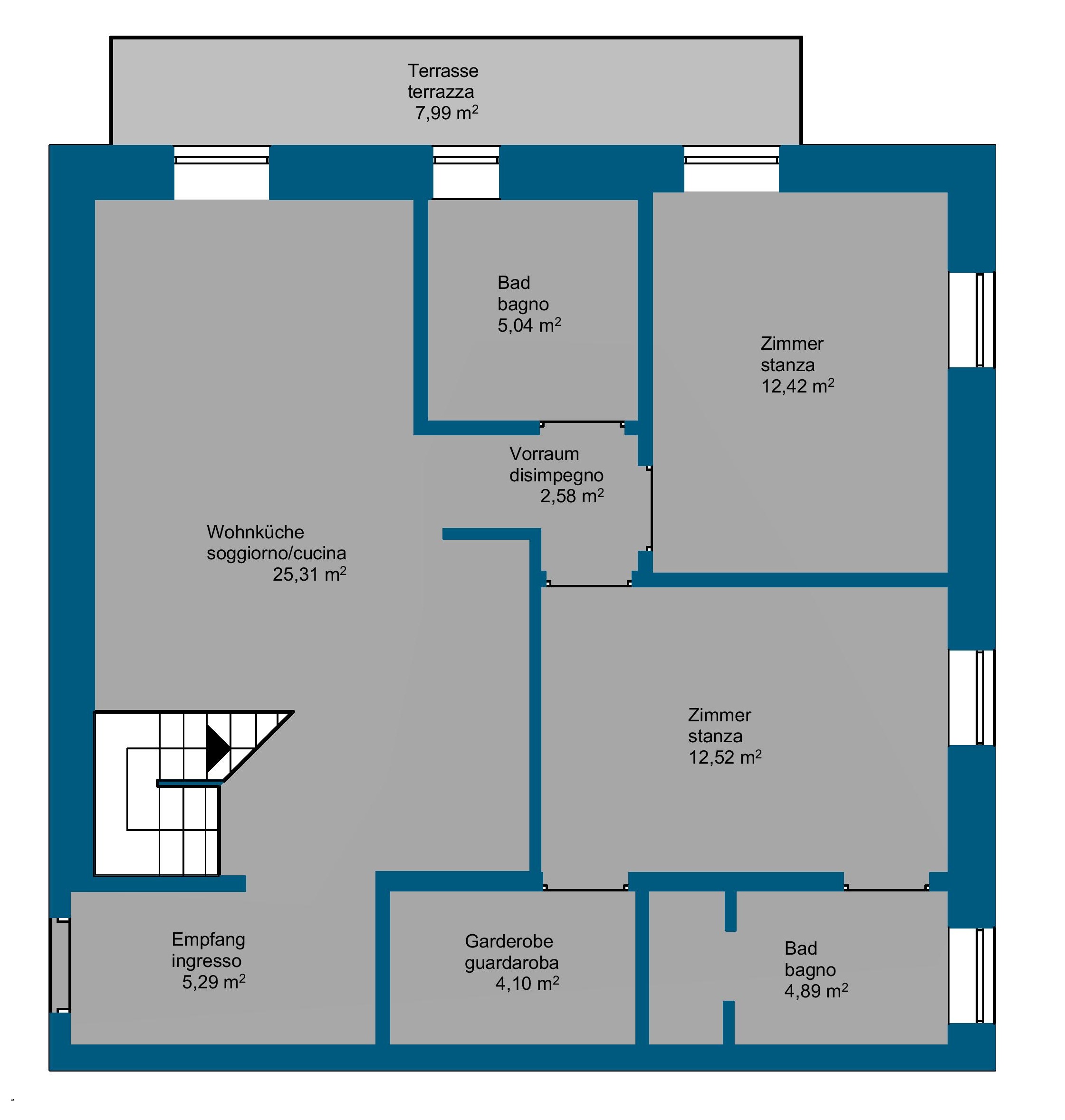 | 90 mq | 1° + 2° piano (attico) |