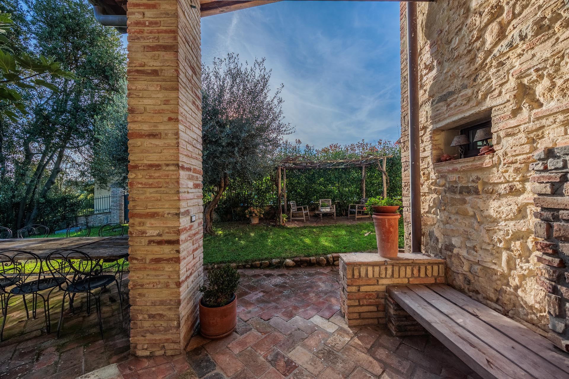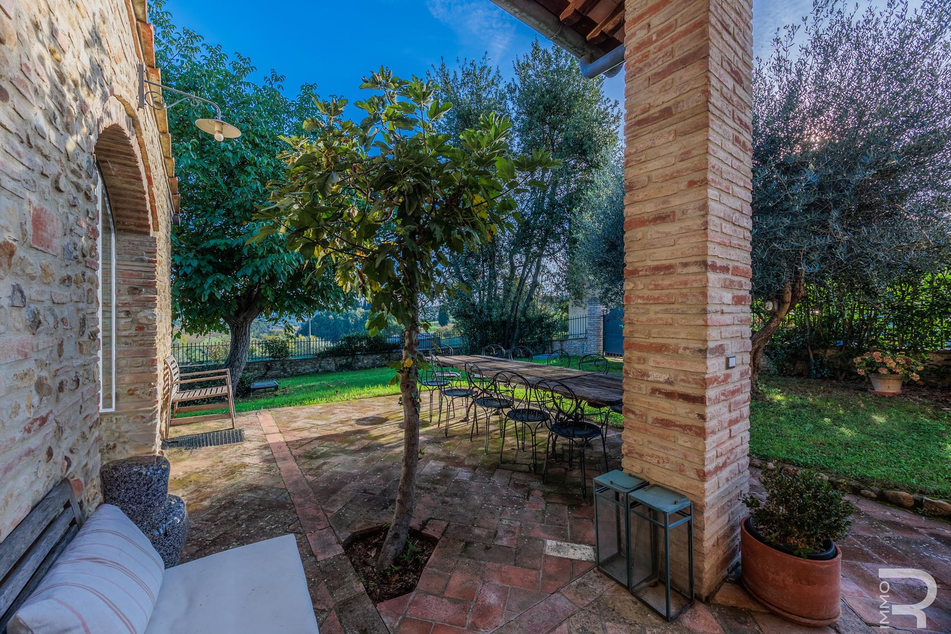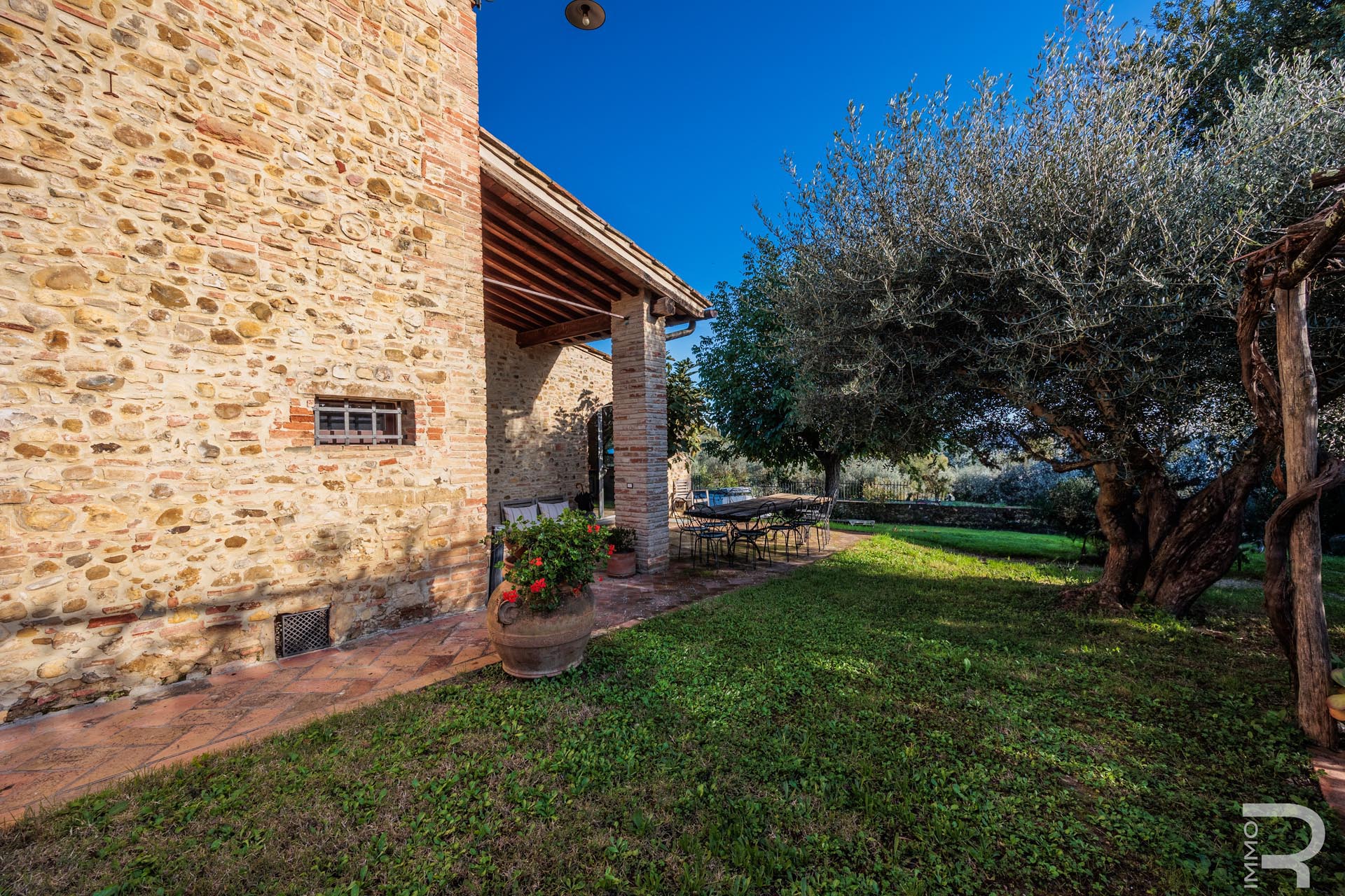 Le grandi finestre sono una vera festa per gli occhi, armonizzandosi in modo impressionante con i bellissimi archi a tutto sesto e i caldi pavimenti in cotto per creare un'atmosfera unica. Le stanze sono inondate di luce solare e luminose grazie al gran numero di grandi finestre. Il piano terra offre un ampio soggiorno con un accogliente camino e una moderna cucina abitabile. Da qui si accede direttamente alla terrazza, che invita a soffermarsi e offre una meravigliosa vista sull'ampia valle. Su questo livello si trova anche un bagno arredato con gusto. Il piano superiore ospita tre invitanti camere da letto e due bagni, tutti dotati di materiali e arredi di alta qualità. La proprietà viene fornita parzialmente arredata e comprende una selezione di arredi di alta qualità, scelti appositamente per enfatizzare il fascino rustico e offrire al contempo un comfort moderno. Tra le altre caratteristiche c'è un efficiente sistema di condizionamento dell'aria che offre un piacevole refrigerio nelle calde giornate estive. L'esterno della casa è altrettanto impressionante quanto l'interno. Una terrazza solarium splendidamente curata invita al relax e il giardino di 500 m² è piantato con alberi da frutto e un ulivo. Due vialetti consentono un facile accesso alla proprietà e un garage di 37 m² con una stazione di ricarica per auto elettriche sottolinea lo standard moderno di questa proprietà. È presente anche un impianto fotovoltaico che contribuisce a un approvvigionamento energetico sostenibile. Il rustico si trova a Tavarnelle, una bellissima zona che si estende tra Firenze e la regione del Chianti. Qui potrete godervi appieno la vita in stile rustico toscano, apprezzando allo stesso tempo la vicinanza alla metropoli di Firenze e ai numerosi vigneti del Chianti.