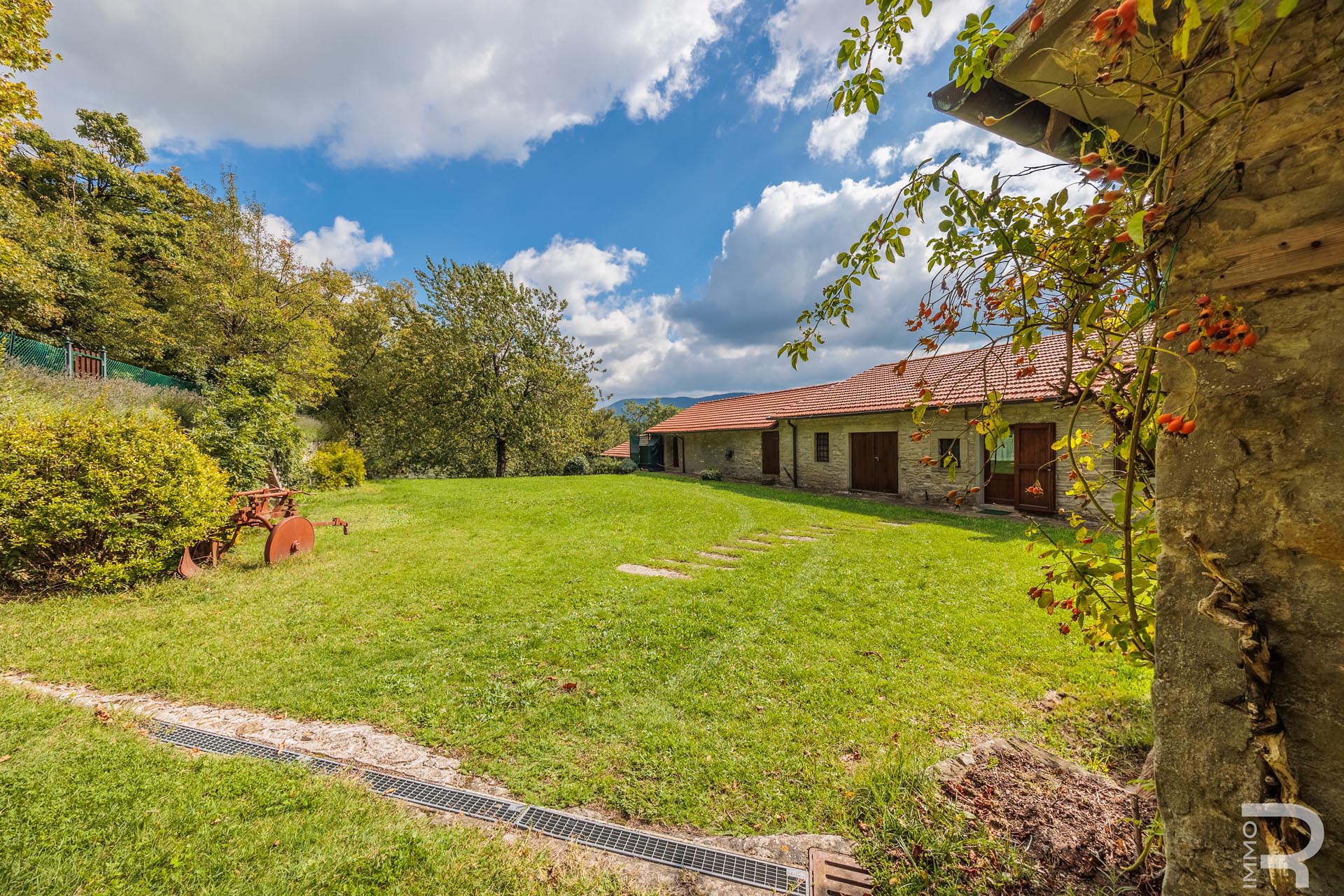 Con un totale di quattro camere da letto, la casa offre spazio sufficiente per la famiglia, gli ospiti o un uso turistico. Particolarmente impressionante è il terreno di circa 19 ettari, composto da boschi, terreni agricoli e prati. Alberi secolari e vari alberi da frutto conferiscono alla proprietà un'atmosfera speciale e la rendono un rifugio paradisiaco per gli amanti della natura.