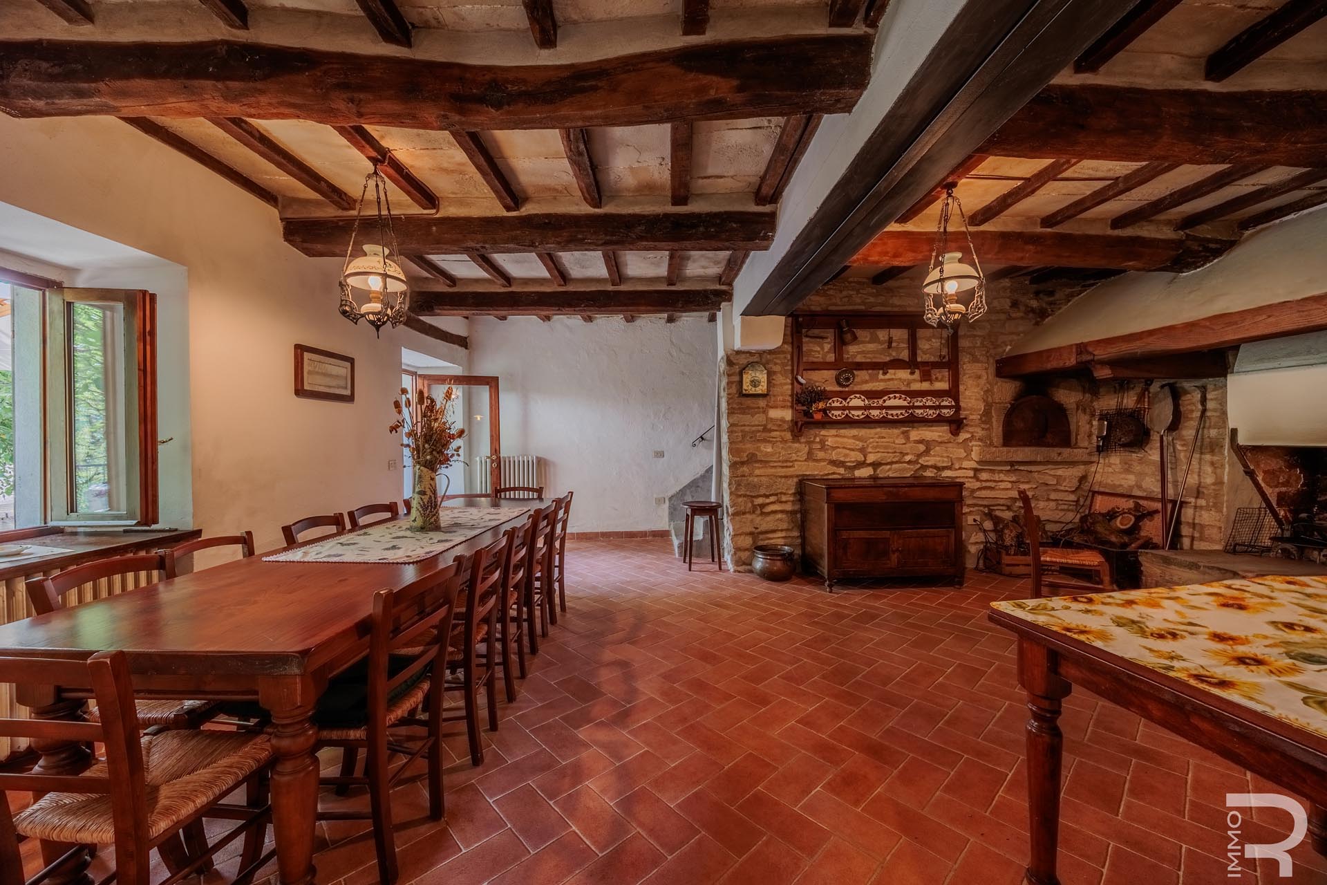 Questo imponente casale con annesso si trova in una posizione splendida e tranquilla e unisce il fascino storico al comfort abitativo moderno. Costruita nel XVI secolo, la proprietà è stata completamente ristrutturata nel 2012, compreso il tetto, e oggi si presenta in ottime condizioni. L'immobile viene consegnato completamente arredato, quindi è immediatamente abitabile.