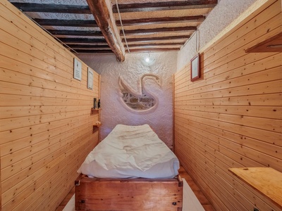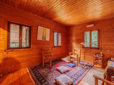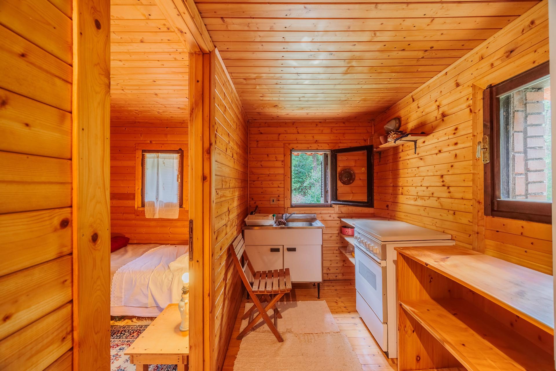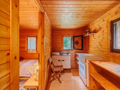 Un'altra graziosa casetta affascina con i suoi caldi interni in legno e dispone di una camera da letto, una cucina, un bagno e un soggiorno. È ideale come casa per gli ospiti, appartamento per le vacanze o come zona giorno indipendente per i membri della famiglia.