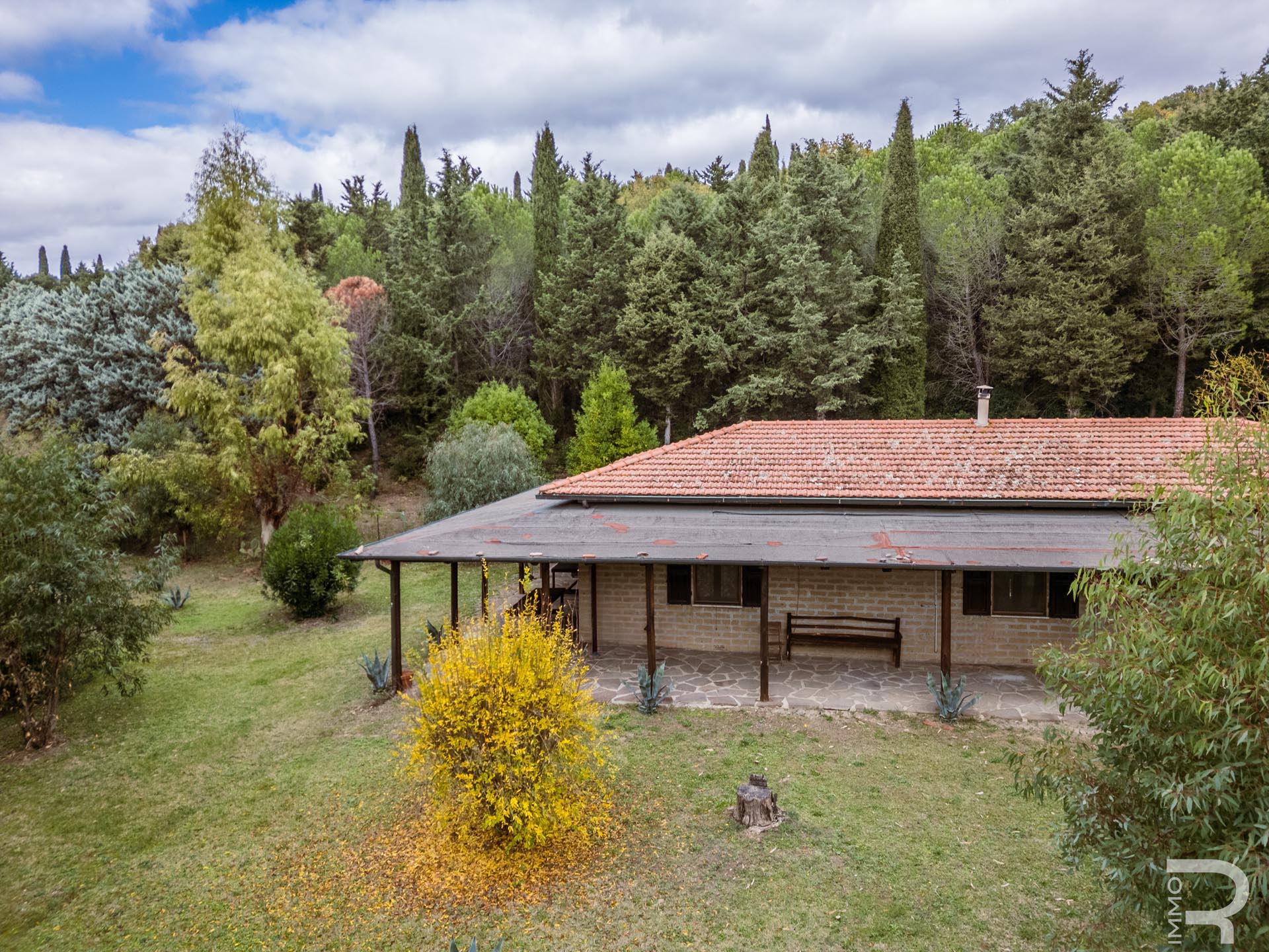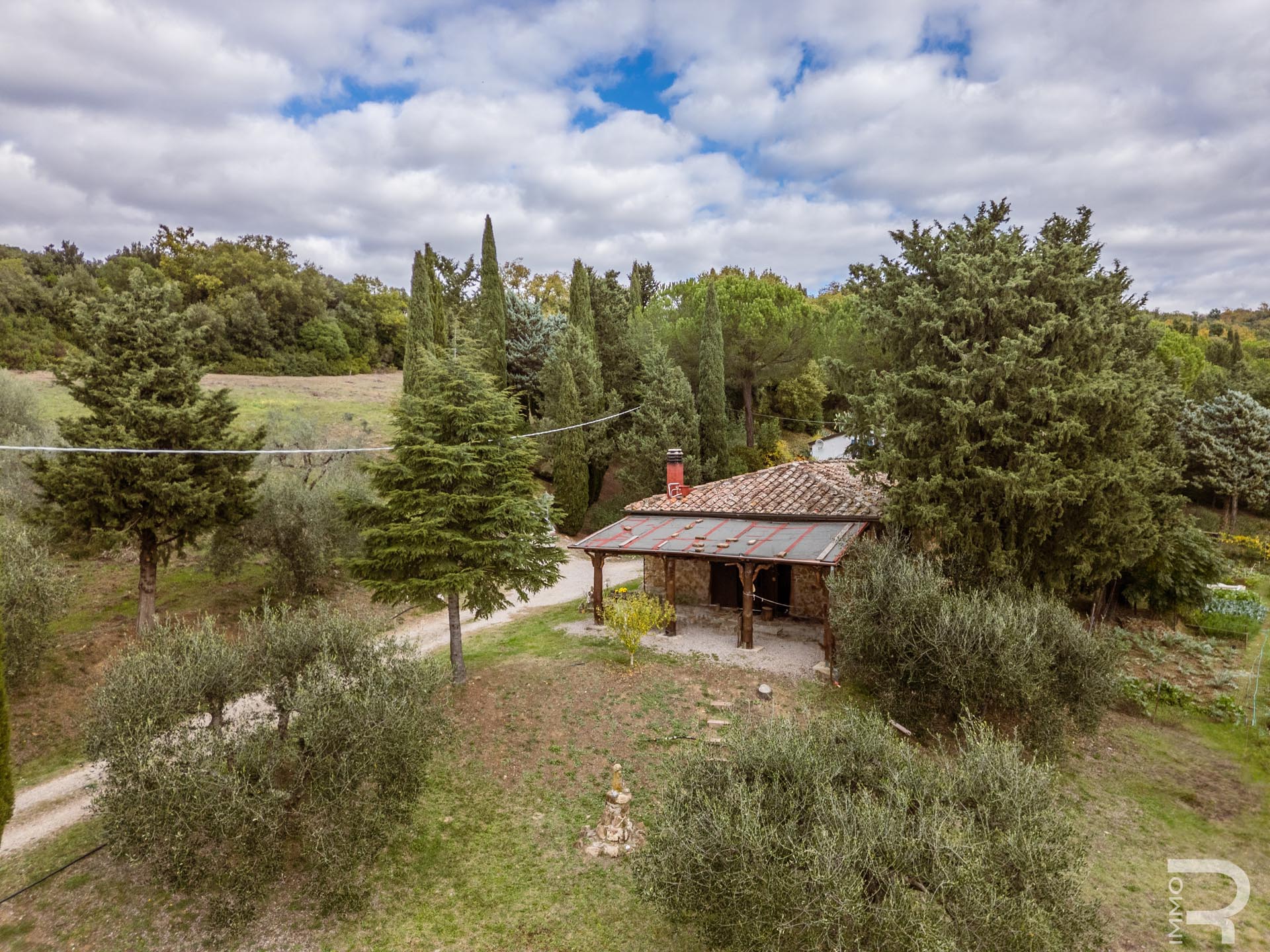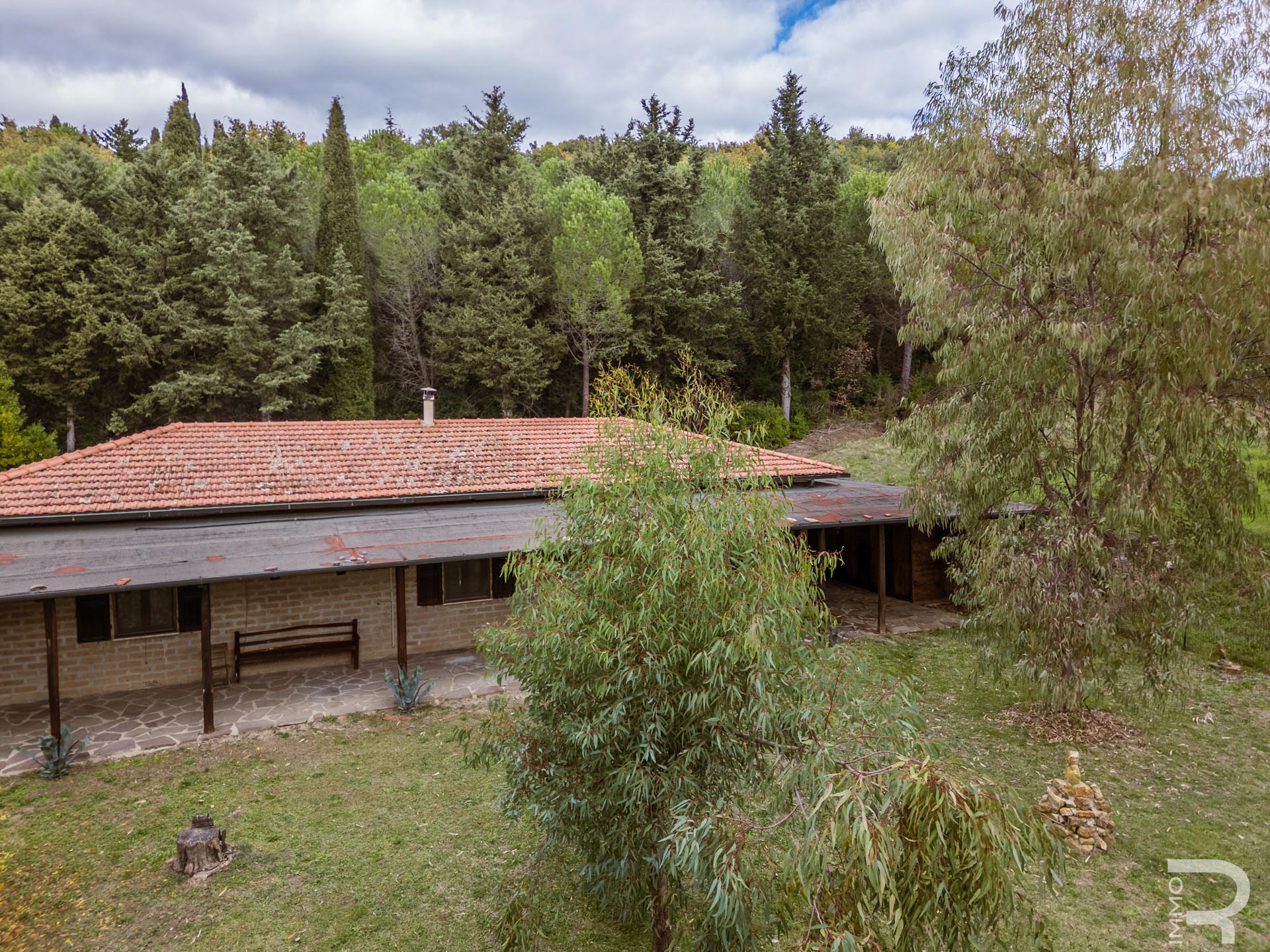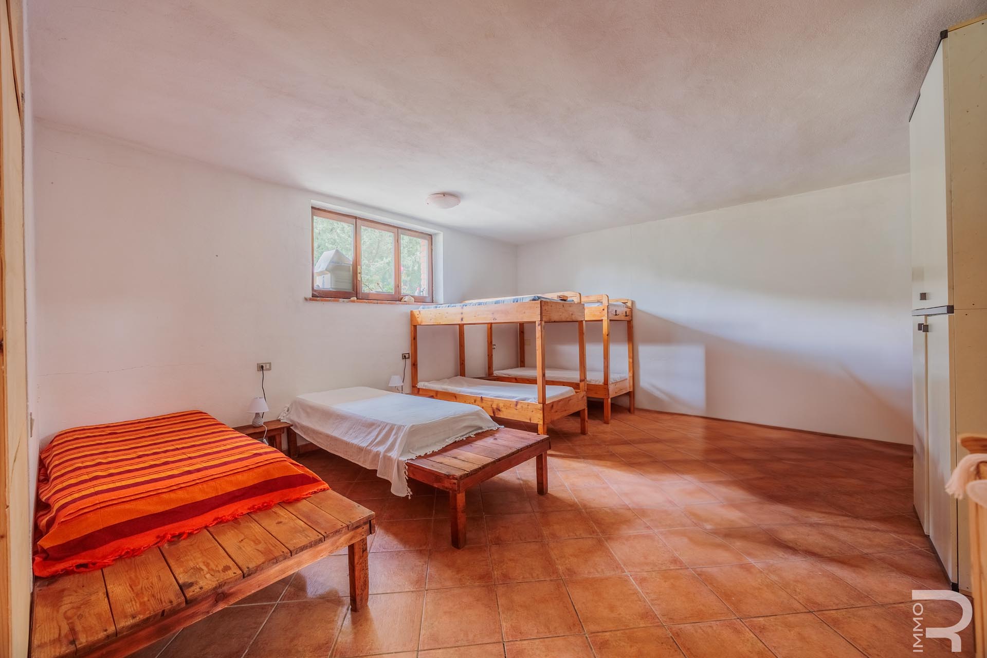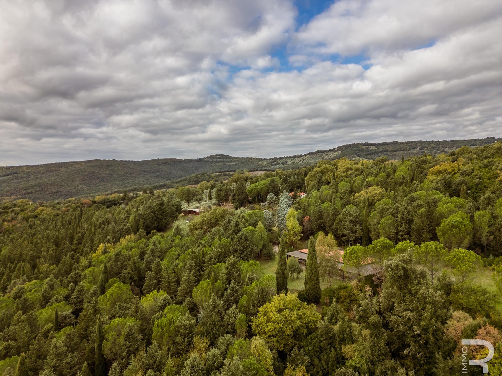 Questa proprietà straordinariamente bella unisce in modo impressionante natura, tranquillità e molteplici possibilità di utilizzo. Su un terreno di 17 ettari, di cui 13 ettari di bosco e 4 ettari di uliveto produttivo, si trovano in totale quattro edifici che insieme formano un insieme armonioso e aprono numerose prospettive private o commerciali.