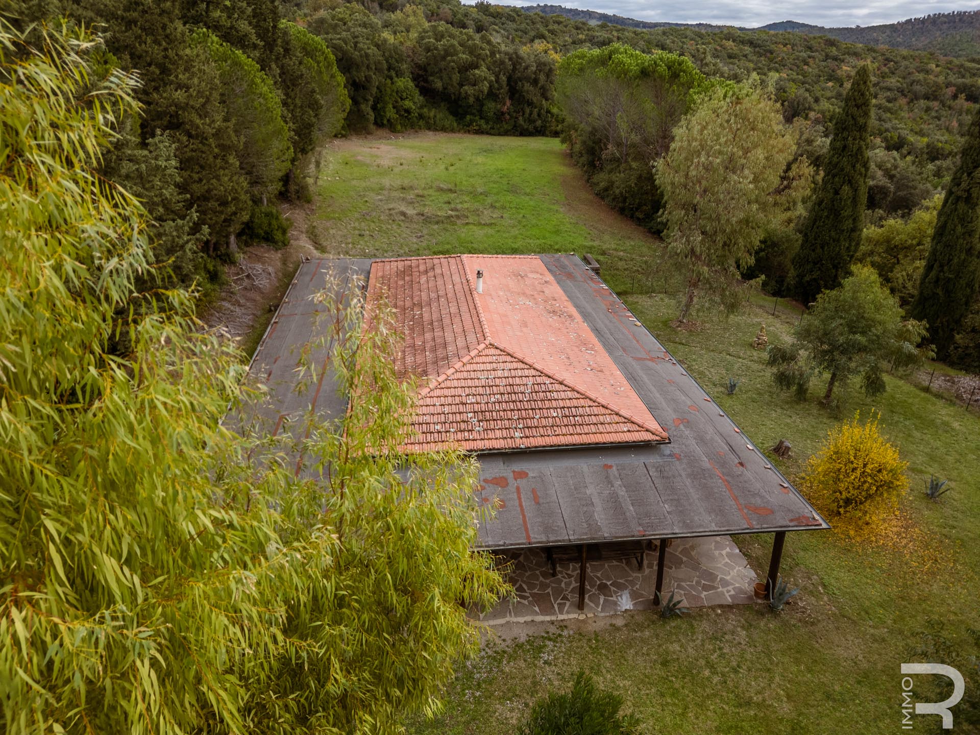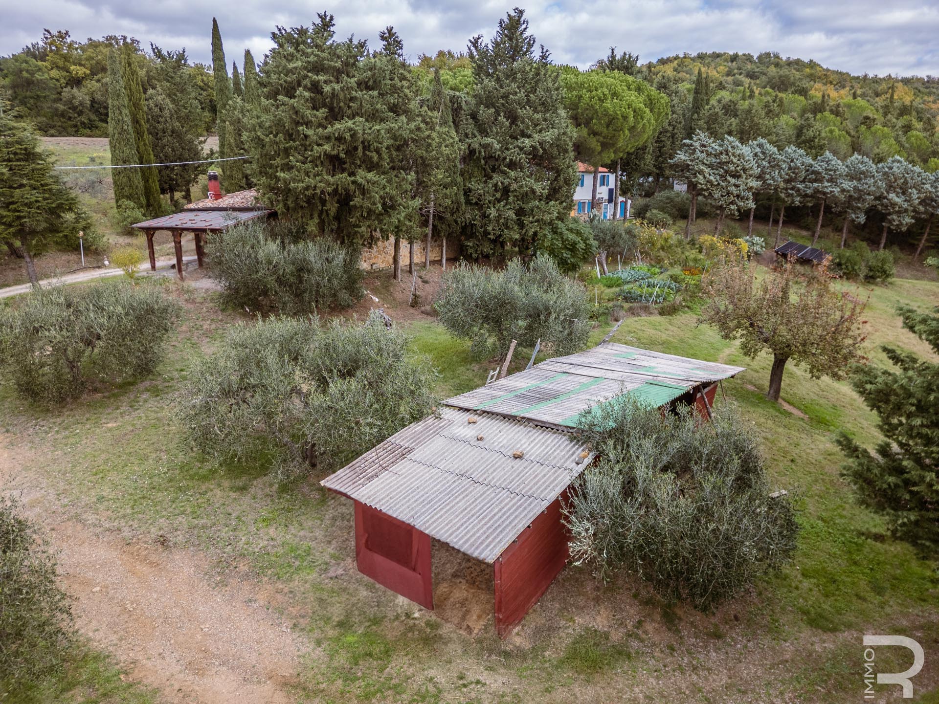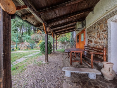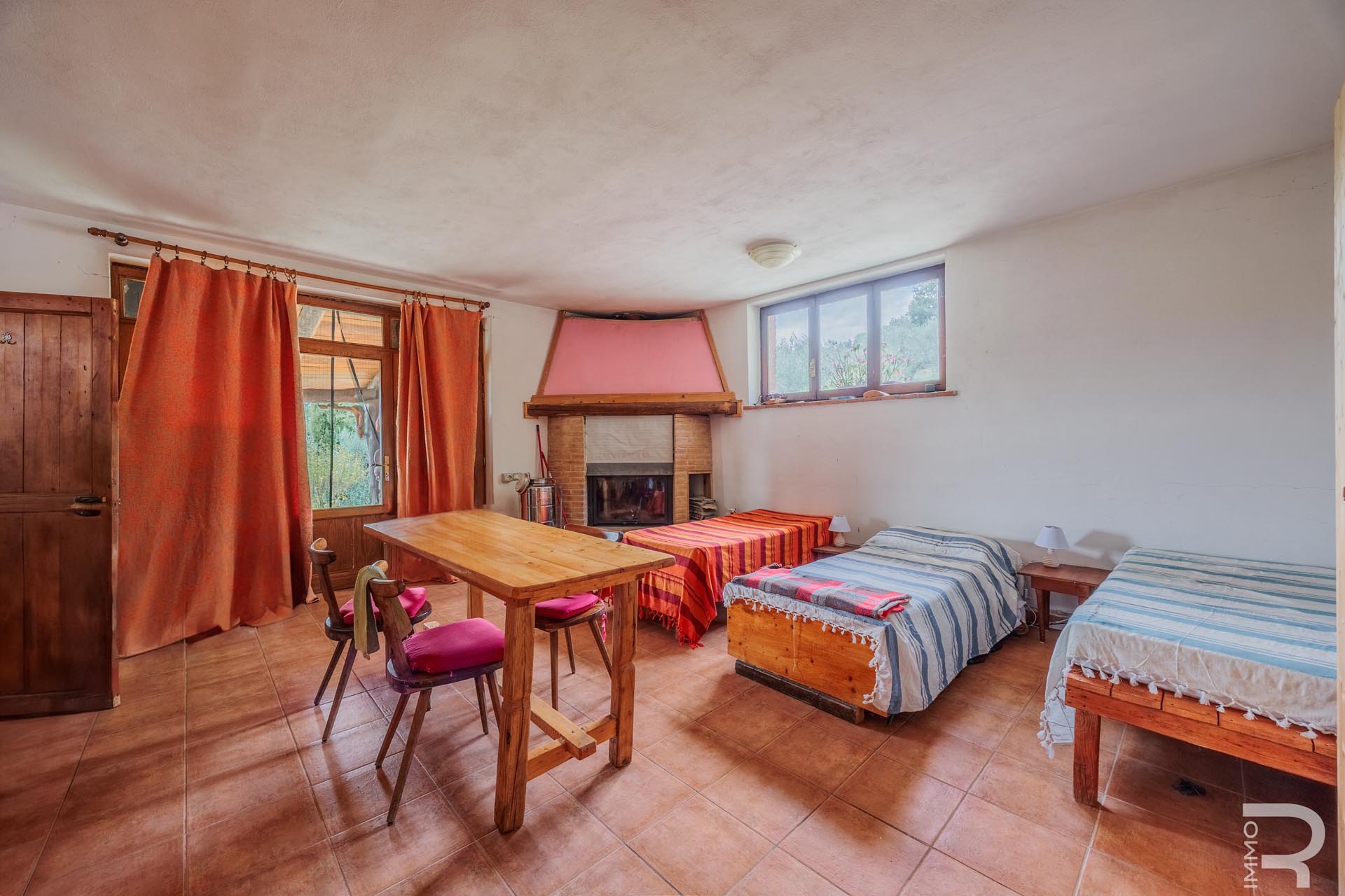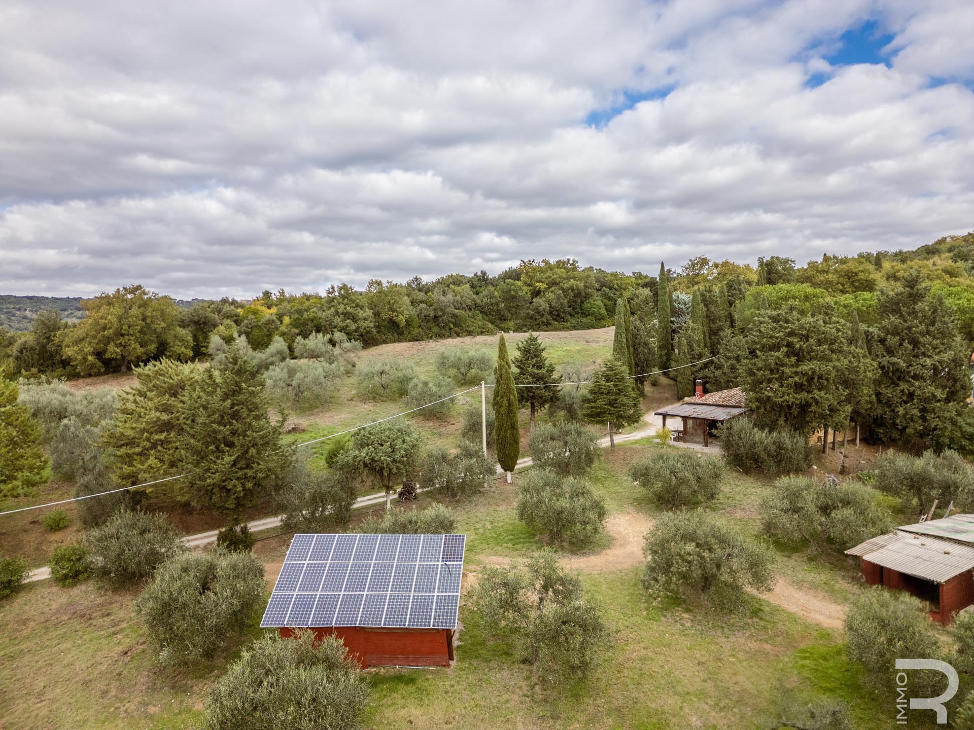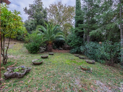 Questa proprietà straordinariamente bella unisce in modo impressionante natura, tranquillità e molteplici possibilità di utilizzo. Su un terreno di 17 ettari, di cui 13 ettari di bosco e 4 ettari di uliveto produttivo, si trovano in totale quattro edifici che insieme formano un insieme armonioso e aprono numerose prospettive private o commerciali.