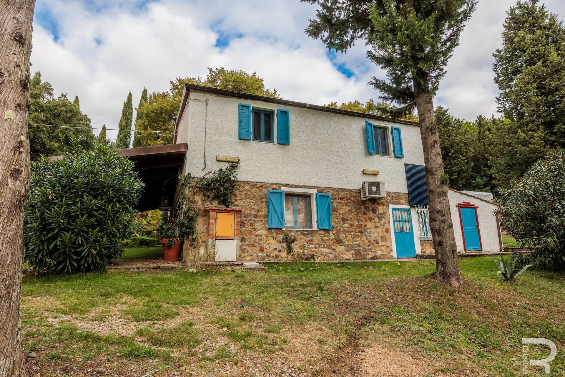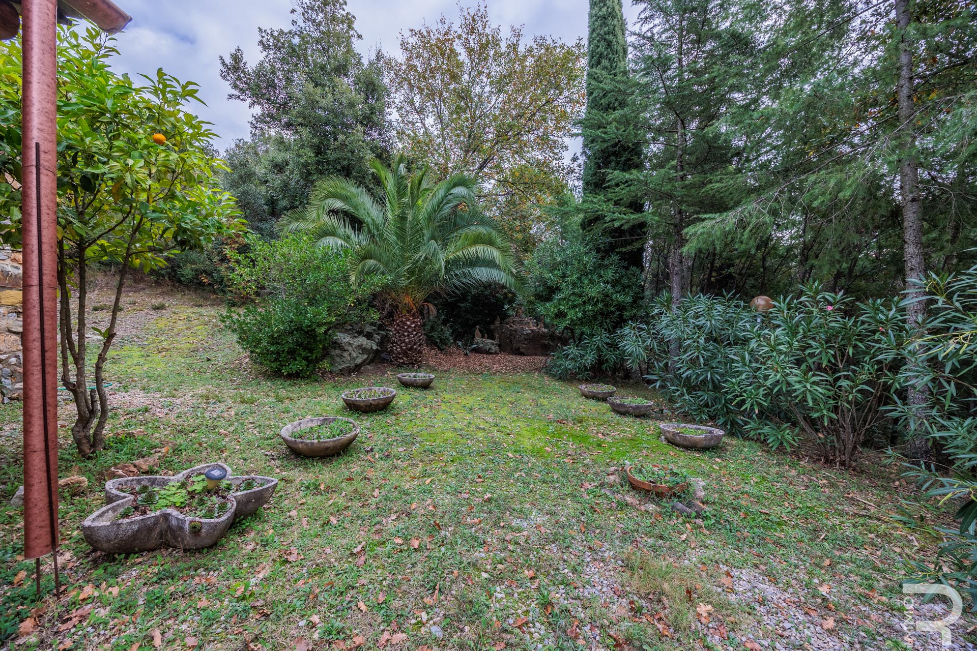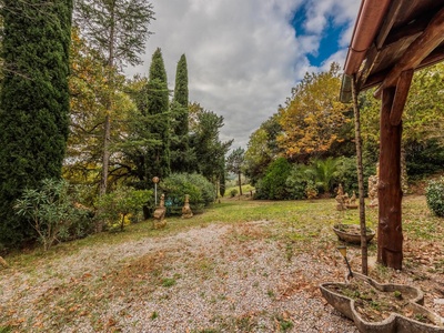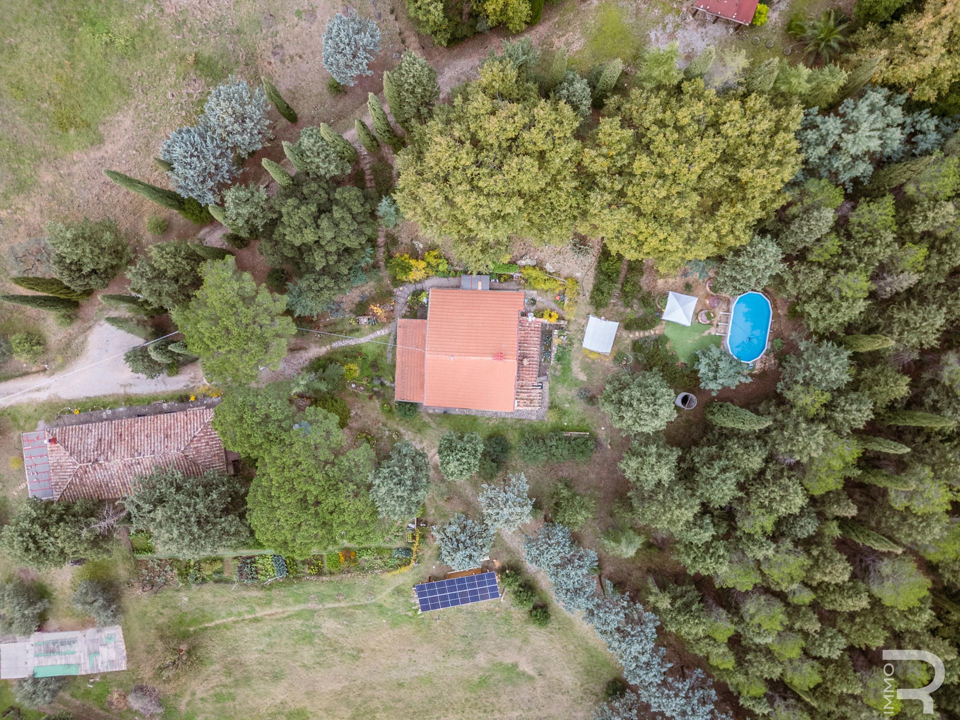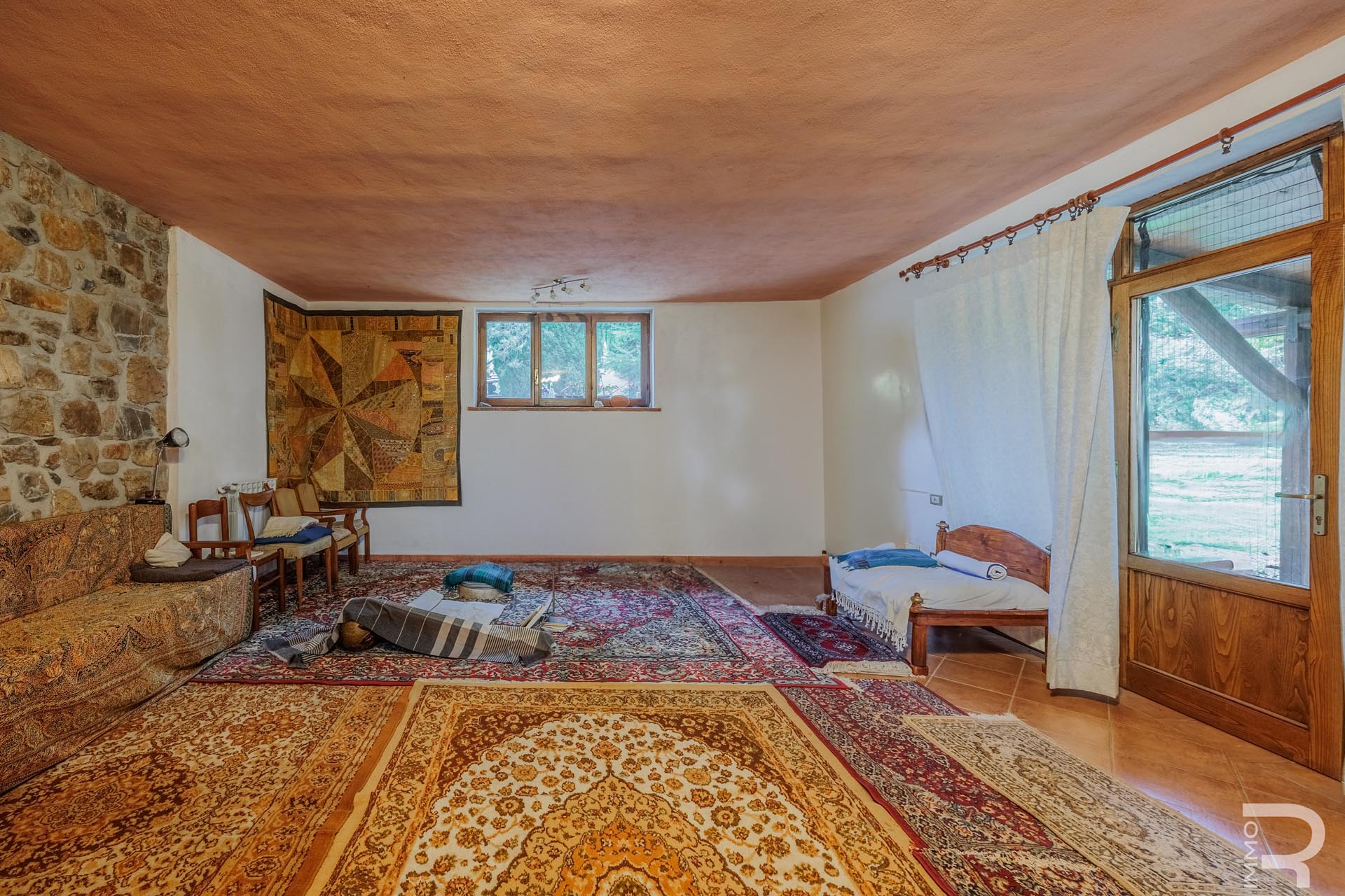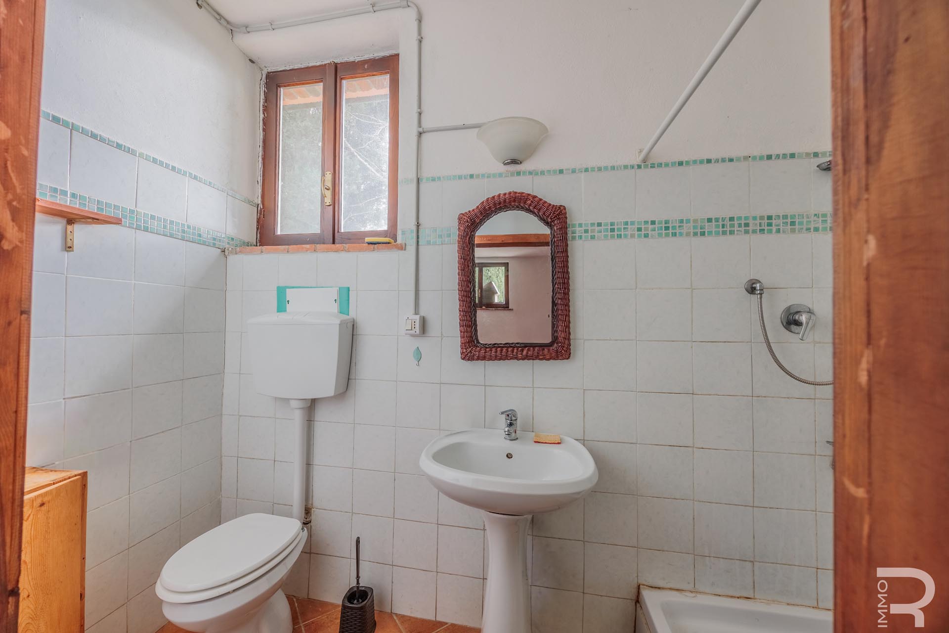 Questa proprietà straordinariamente bella unisce in modo impressionante natura, tranquillità e molteplici possibilità di utilizzo. Su un terreno di 17 ettari, di cui 13 ettari di bosco e 4 ettari di uliveto produttivo, si trovano in totale quattro edifici che insieme formano un insieme armonioso e aprono numerose prospettive private o commerciali.