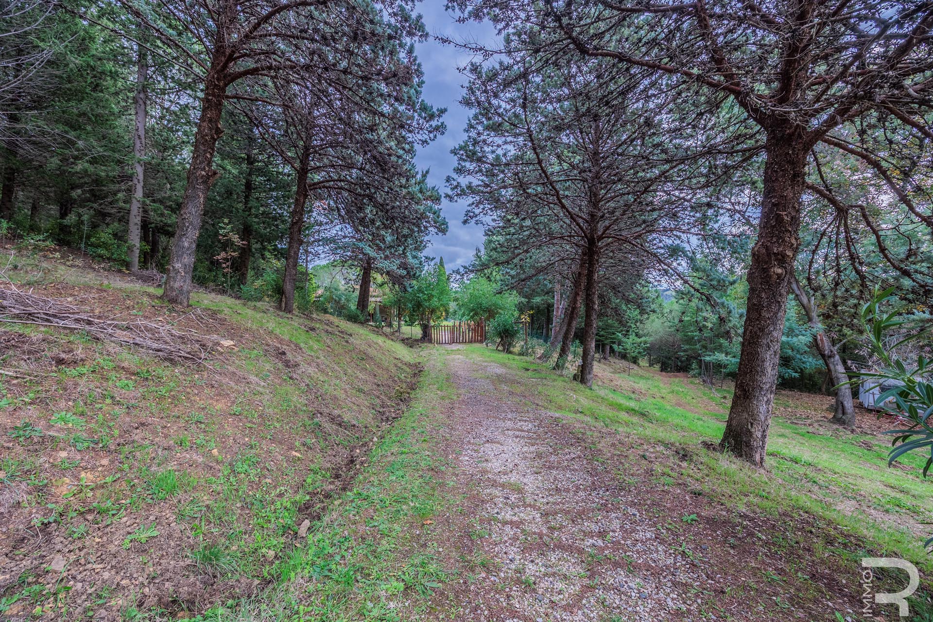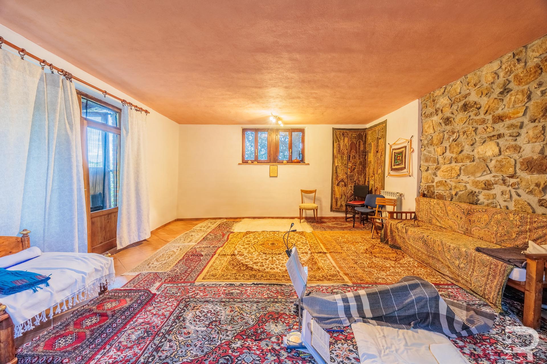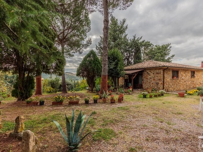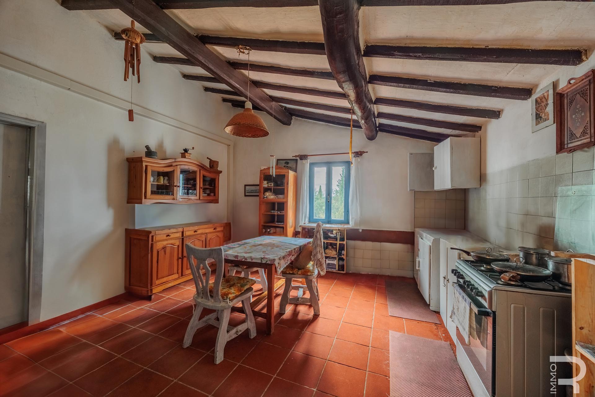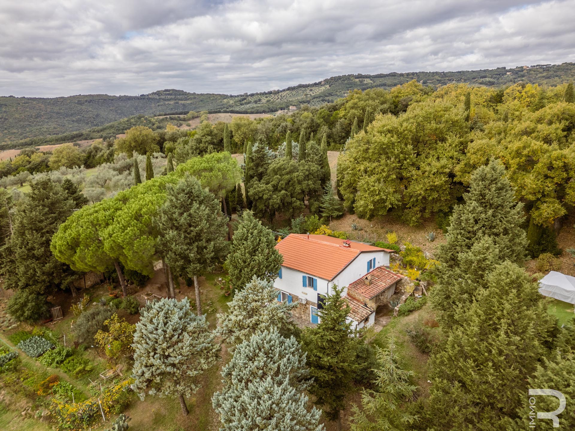 Questa proprietà straordinariamente bella unisce in modo impressionante natura, tranquillità e molteplici possibilità di utilizzo. Su un terreno di 17 ettari, di cui 13 ettari di bosco e 4 ettari di uliveto produttivo, si trovano in totale quattro edifici che insieme formano un insieme armonioso e aprono numerose prospettive private o commerciali.