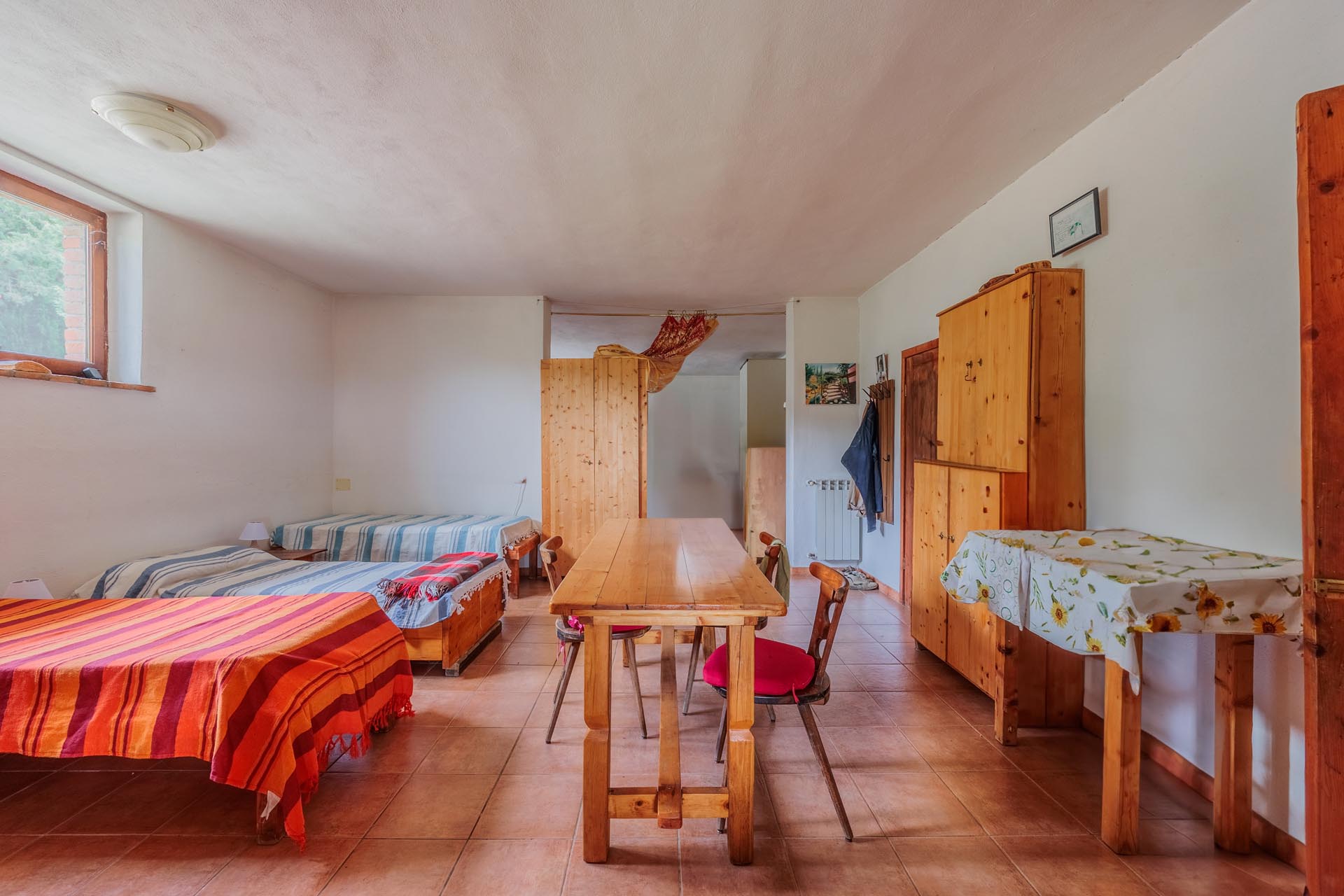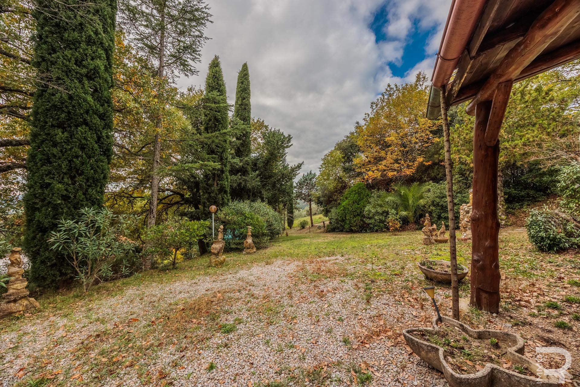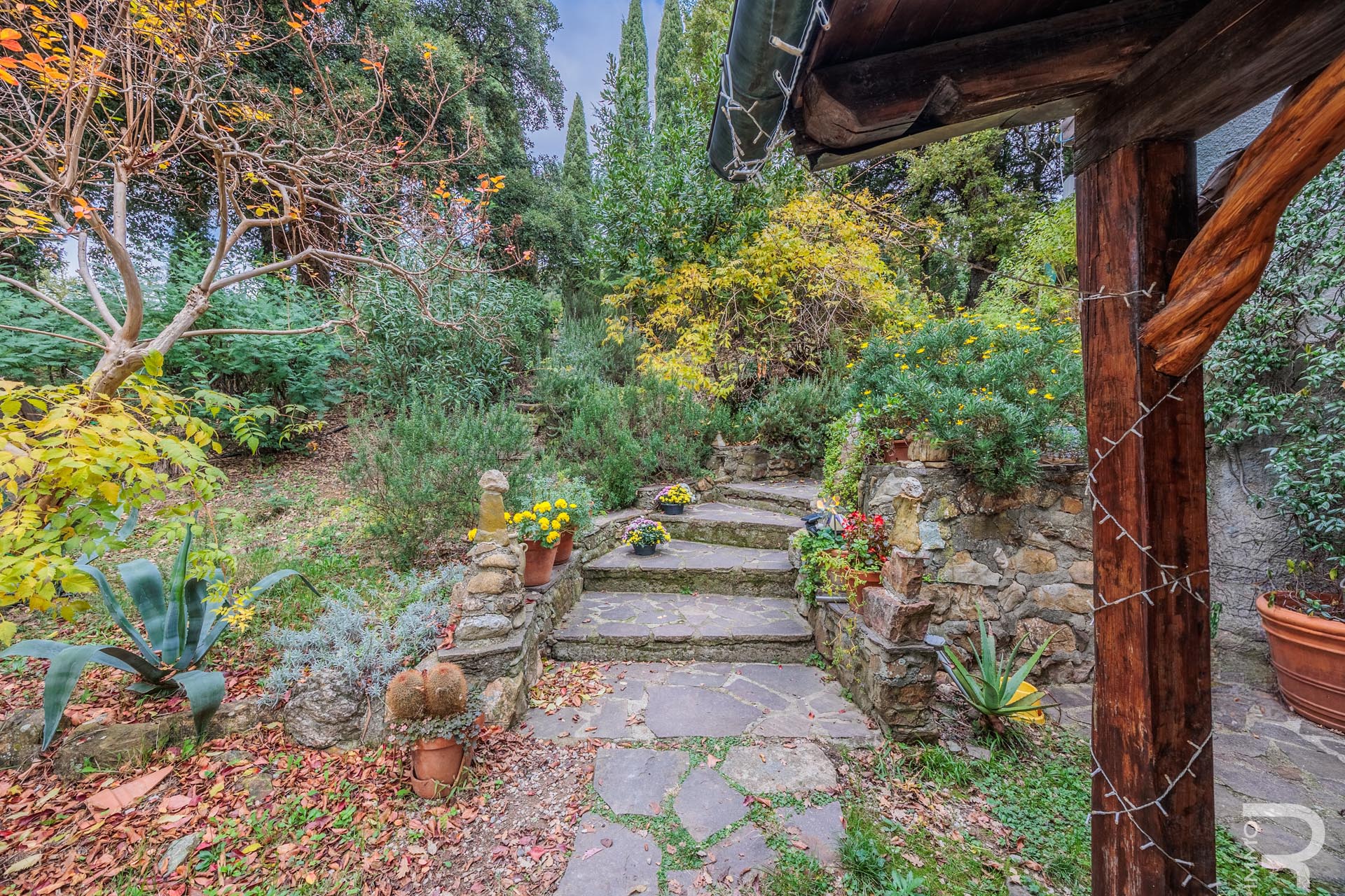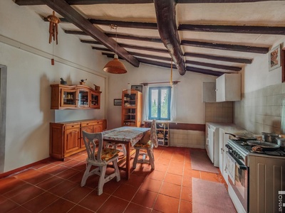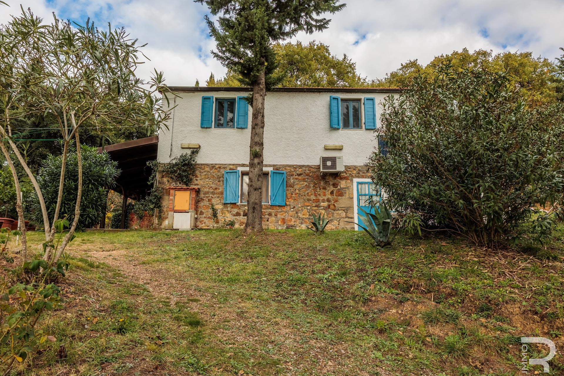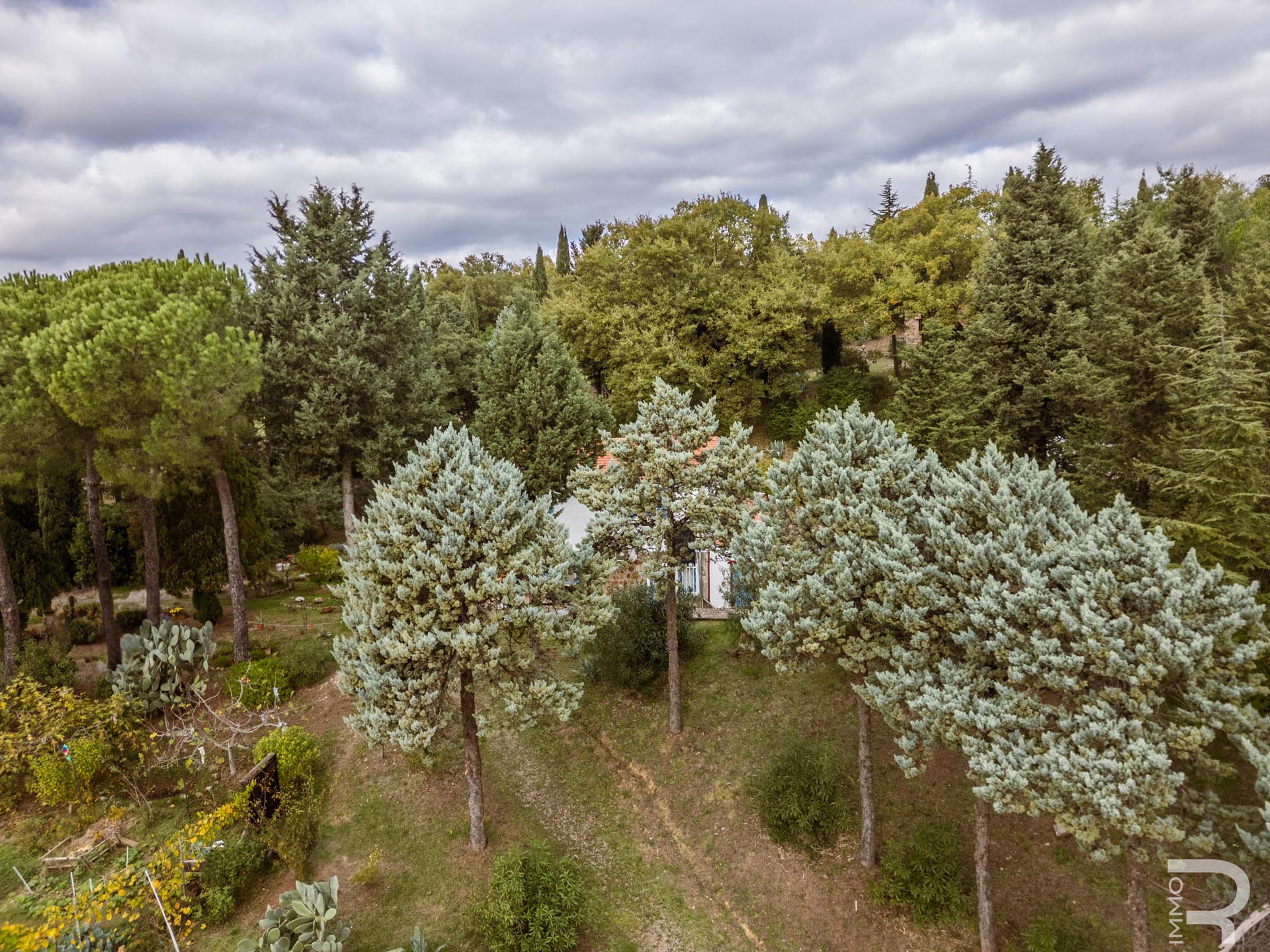 Questa proprietà straordinariamente bella unisce in modo impressionante natura, tranquillità e molteplici possibilità di utilizzo. Su un terreno di 17 ettari, di cui 13 ettari di bosco e 4 ettari di uliveto produttivo, si trovano in totale quattro edifici che insieme formano un insieme armonioso e aprono numerose prospettive private o commerciali.